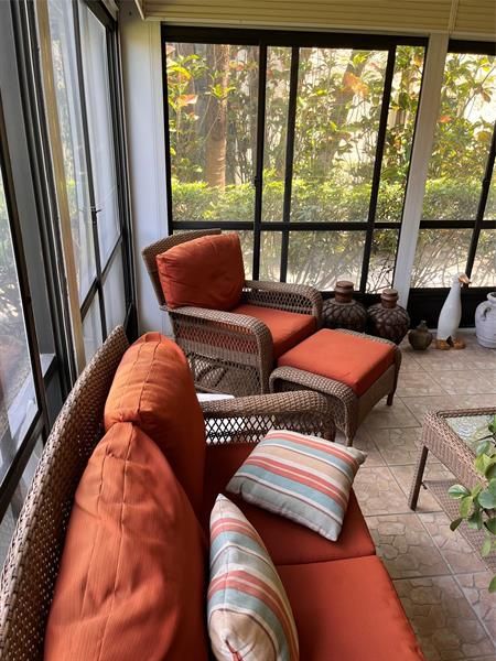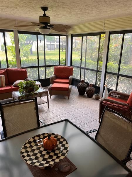 First floor, corner unit with a Florida Room you will not forget. It’s spacious, peaceful, and perfect for year-round use with lots of light. It opens right up to a lush green space and connects to the kitchen, living room, and primary suite. The kitchen’s been updated with custom cabinets and granite counters., When it’s time to entertain, the greatroom’s got you covered with space for formal dining. The primary bedroom comes with its own ensuite bath, and the split-bedroom layout means your guests have their own spot near a full bath. Brand-new roof (2025!) HOA covers water, cable, and internet. Plus, you’re stepping into resort-style living with a heated saltwater pool, pickleball, tennis, tons of clubs, and more. Come see it for yourself — you’ll feel right at home.
