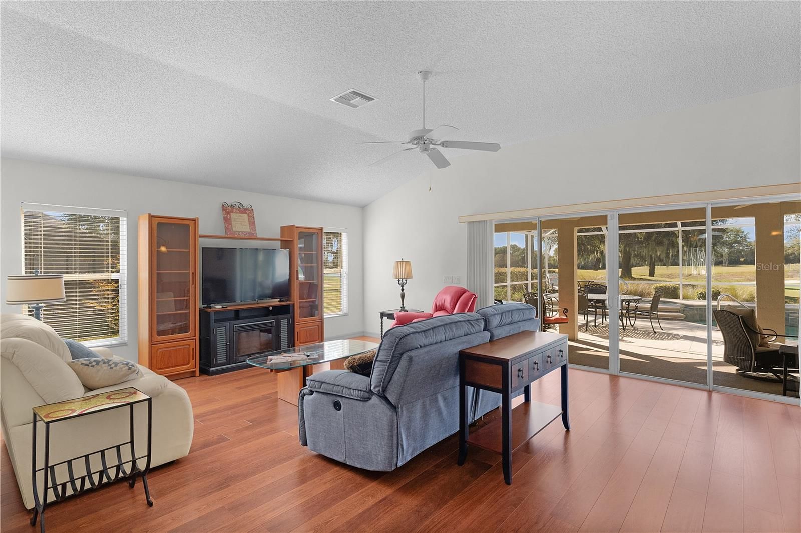 NEW FRESHLY PAINTED INTERIOR 12/2025 ! EXQUISITE GARDENIA MODEL |GOLF FRONT! POOL HOME | GOLF CAR GARAGE! NO BOND! BRAND NEW ROOF ! VILLAGE OF GLENBROOK Experience the pinnacle of luxury living in The Villages with this stunning 3 Bedroom, 2 Bath Gardenia model, gracefully positioned on a quiet cul-de-sac in the coveted Village of Glenbrook. (Third Bedroom Does Not Have A Closet) This exceptional residence offers an unparalleled blend of sophistication, comfort, and resort-style amenities. BRAND NEW ROOF, HVAC 2024, NAT GAS AND COMES FURNISHED! From the moment you arrive, the home’s golf front setting and spectacular panoramic views set the tone for an extraordinary lifestyle. The interior showcases refined upgrades including granite countertops, elegant tile and laminate flooring, and an open, light-filled layout perfect for entertaining. Located on The No 7 Hole of The Foxrun Championship Golf Course. The owner’s suite provides a serene retreat and a luxurious en-suite bath designed for relaxation. Two additional guest rooms ensure comfort and privacy for family and friends. Step outside to your private oasis — a sparkling swimming pool with screened lanai, enhanced by a fully equipped summer kitchen and ample space for lounging, dining, and entertaining under the Florida sun. Whether enjoying a quiet evening or hosting guests, this outdoor sanctuary captures the essence of upscale living. Additional highlights include: Golf Car Garage for added convenience and it fits two golf carts ! Cul-de-sac privacy with mature landscaping. RECENT UPGRADES: NEW ROOF JULY 2025, HVAC 2024, Nat Gas Stove 2023, Fridge 2022, Dishwasher 2025, Disposal 2025, Garage Dr. Opener 2024, New Shower Heads 2025, Garage Floor and Pool Deck Repainted 2023 Prime location close to Glenview Championship Golf, recreation, dining, and shopping. This is not just a home — it is a statement of lifestyle, offering the perfect balance of elegance, comfort, and leisure in one of the most desirable villages in The Villages. The Village of GLENBROOK offers Multiple Golf Courses as part of the Glenview Country Club and Championship Golf Course. Direct access to The Savannah Recreation Center and Pool. Also Dining and Music at the Glenview Country Club, The Saddlebrook Recreation Center and Softball Fields, Hawks Bay and Saddlebrook Executive Golf Courses and nearby medical services at The VA Hospital, easy connection to Buena Vista Boulevard, leading to Southern Trace Shopping Center and numerous restaurants, banks and other amenities. You’ll also enjoy being just a short golf cart ride to Spanish Springs Town Square only about 15 minutes away. This home offers not only a prime location but also a host of updates and lifestyle conveniences that make it truly special and the BOND IS PAID! Please enjoy the Virtual Tour and Pictures and call to schedule your own Private Showing.