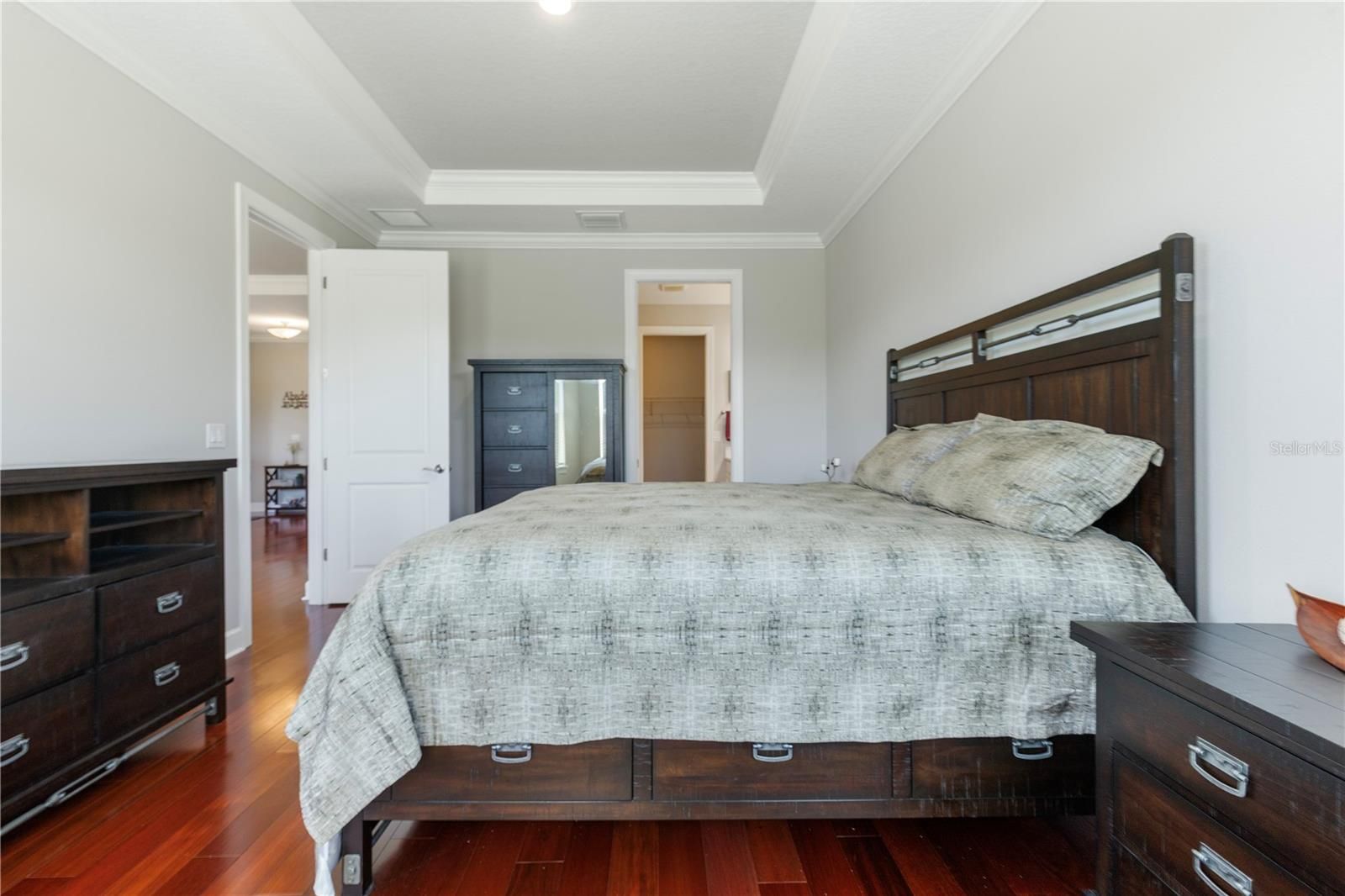 - Ceiling Fan(s), Crown Molding, Kitchen/Family Room Combo, Open Floorplan, Tray Ceiling(s)