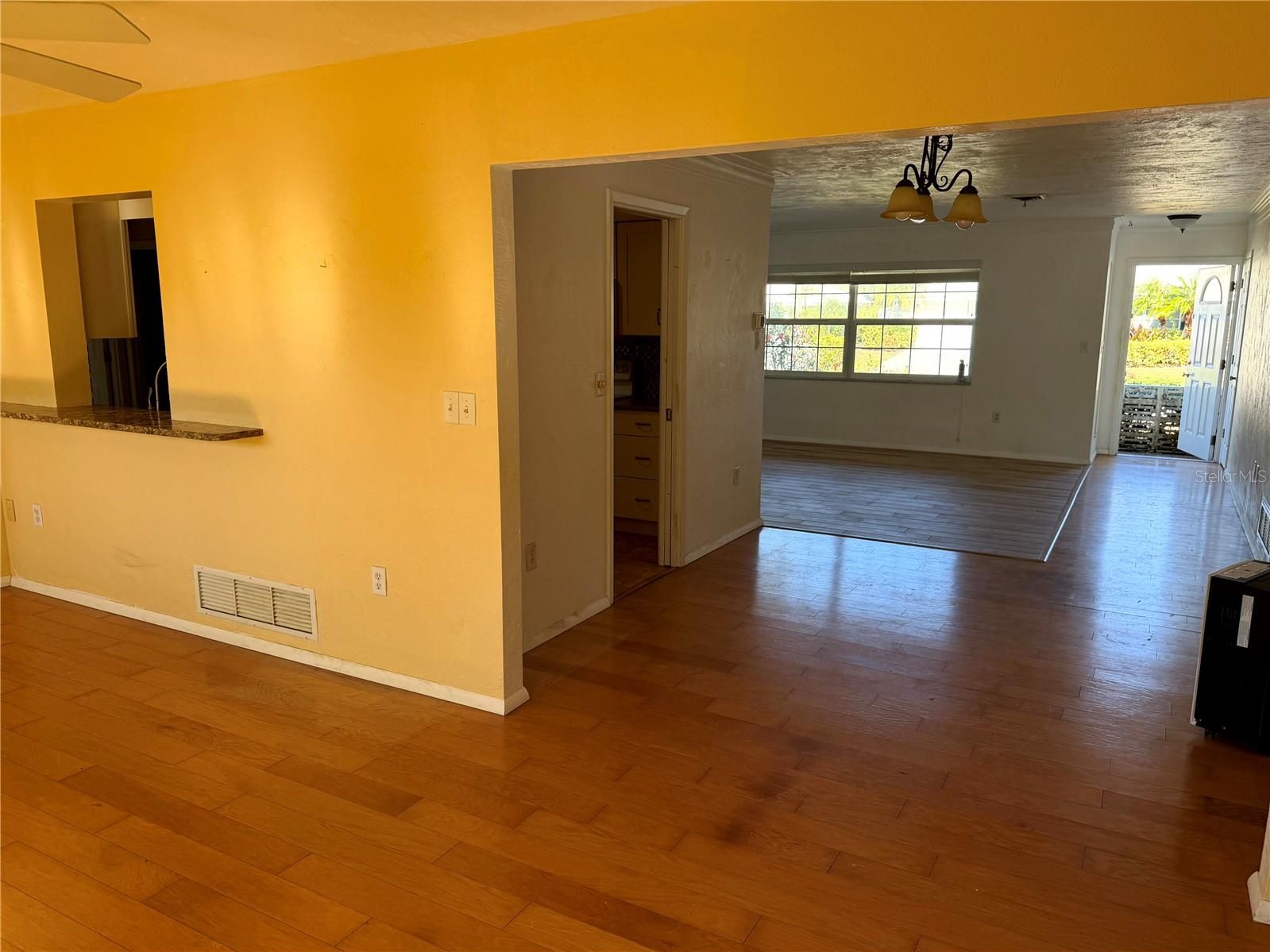 - Ceiling Fan(s), L-Shaped Dining Room, Living/Dining Room, Main Level Primary, Stone Counters