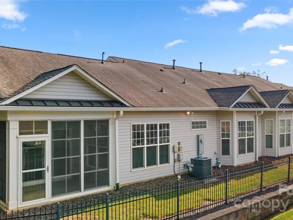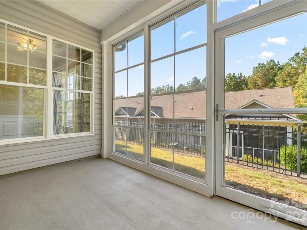 Discover this inviting end unit villa featuring an open-concept layout that seamlessly connects the living, dining, and kitchen areas, enhanced by large windows that fill the space with natural light. Superb location steps away from the private gated entrance into the Harris Teeter shopping center & restaurants! The kitchen provides ample counter space for meal prep. Enjoy the peaceful 3-season room, perfect for morning coffee or quiet relaxation. The split-bedroom floor plan offers a primary suite with a spacious walk-in closet and private ensuite bath with a walk-in shower, while the guest bedroom at the front of the home provides a comfortable space for visitors or can easily serve as an office or hobby room. Enjoy tranquil living in this active lifestyle community with resort-style amenities including an 18-hole golf course, indoor and outdoor pools, clubhouse, tennis, pickleball, dog park, social clubs, and more!