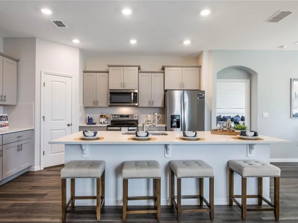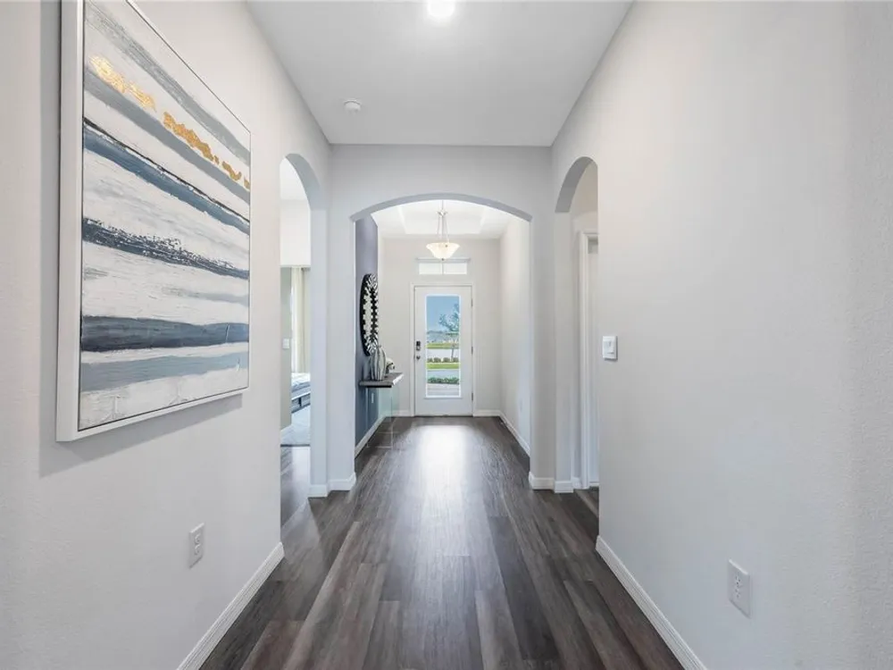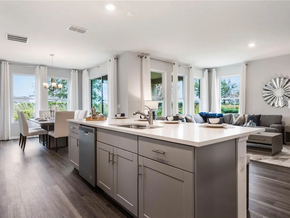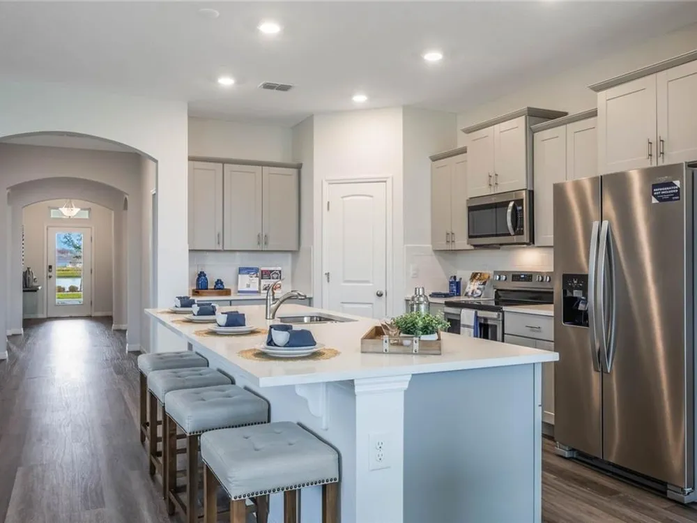 Under Construction. Welcome to the Robinson. As you enter the foyer you are greeted with two guest bedrooms and guest bathroom with double vanity sinks. Bedroom two and an additional full bathroom are located off the entrance of the garage. Farther down the hallway, you are greeted with a linen closet and laundry room with doors for privacy. A spacious family room for relaxation. The well-appointed gourmet kitchen overlooks the living area, dining room, and outdoor lanai. Homeowners will love the quartz countertops, stainless-steel appliances, center island, spacious pantry and crown molding cabinetry. Bedroom one is located off the living space in the back of the home for privacy. The primary bathroom impresses with double bowl vanity, separate shower and tub space and spacious walk-in closet-making it a breeze to get ready for the day. *Photos are of similar model but not that of exact house. Pictures, photographs, colors, features, and sizes are for illustration purposes only and will vary from the homes as built. Home and community information including pricing, included features, terms, availability and amenities are subject to change and prior sale at any time without notice or obligation. Please note that no representations or warranties are made regarding school districts or school assignments; you should conduct your own investigation regarding current and future schools and school boundaries.*