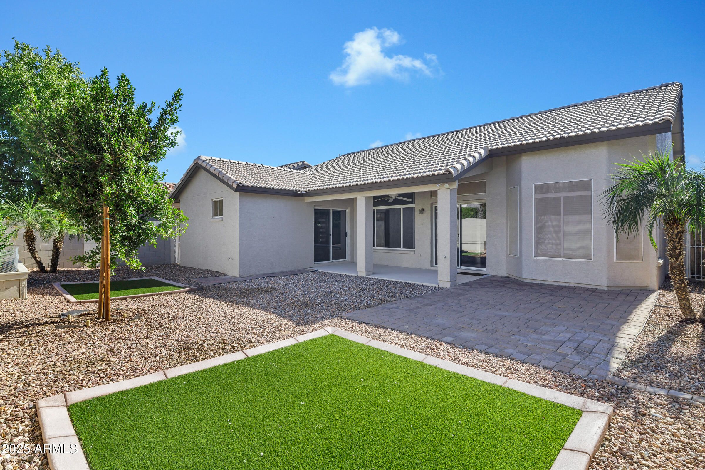 Popular Augusta model with 2 master suites. Located in the fabulous 55+ community of PebbleCreek, this beautifully updated home is ready for you to move right in and start enjoying the good life! Featuring new interior and exterior paint, newer carpet, and updated light fixtures, every detail has been thoughtfully refreshed. The kitchen shines with its beautiful deep green cabinets, adding a touch of personality and charm. Enjoy spacious living areas filled with natural light, perfect for relaxing or entertaining friends. Turf in rear yard. All within a vibrant, resort-style community offering golf, pools, fitness, restaurants, and endless social activities. Come see why PebbleCreek is one of Goodyear's most desirable places to call home!