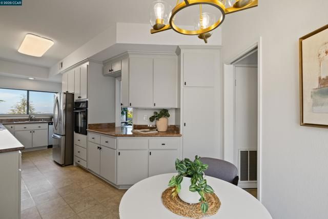 Rare Opportunity to own this beautifully remodeled Villa Robles with panoramic views of Mount Diablo, the valley and golf course - views appreciated from the kitchen, dining room, living room, primary bedroom, and large balcony. Don’t miss this rare chance to own one of Rossmoor’s most beautiful homes expertly transformed with new carpet, paint, fixtures, and cabinet faces. This stunning 2-bedroom, 2-bath blends timeless elegance with modern sophistication and abundant natural light. This home includes a rare, attached garage and large storage loft with a pull-down ladder. The serene primary suite boasts a private patio, perfect for morning coffee. Additional highlights includes dedicated laundry with washer/dryer, and the homes location which is in a pastoral setting, adjacent to oak studded hills at the top of Ptarmigan Drive, on a cul-de-sac.