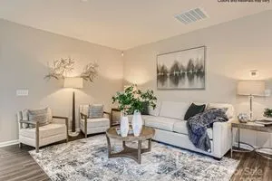 The Chiffon is a new single-story home that delivers comfort and convenience. Immediately upon entry is a large Great Room ideal for modern entertainment and living, followed by an intimate breakfast nook and a well-equipped kitchen. A third bedroom and rear covered patio offer additional shared space. To provide restful retreats, there is a tranquil owner’s suite with an attached full-sized bathroom and a secondary bedroom. Completing the home is a two-car garage. Plus, our signature Everything's Included program means you will get a gourmet kitchen with double ovens and cooktop, quartz or granite kitchen countertops, subway tile backsplash, ceramic tile, luxury vinyl plank flooring throughout the home, and a gas fireplace (per plan). Roselyn is a master-planned community offering exclusive ranch homes designed for active adults.