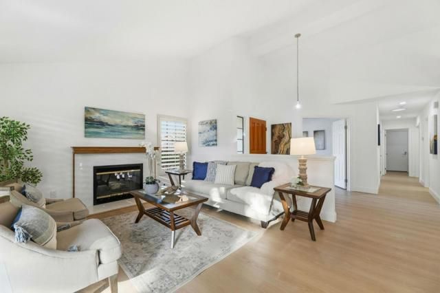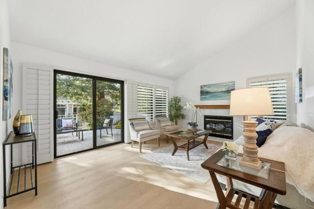 Recently remodeled single level end unit in an active senior community. One person must be 55+. Step through the front door to this open, spacious floorplan with high ceilings and impressive formal dining room with a custom lighted china cabinet and suntunnels for natural light. The cozy living room features a fireplace and a sliding door to the large rear patio for outdoor entertaining. The updated kitchen is just off the living room and dining room and features quartz counters, custom painted cabinets with pull out shelves, newer stainless steel appliances, and recessed lighting. New vinyl plank flooring and fresh paint throughout. The primary suite features a huge bedroom with sliding doors out to a private patio, walk-in closet, dual sinks, linen closet and vanity area, and stall shower with a new shower door. The den can easily be converted to a 3rd bedroom just by adding closet doors in front of the niche. The second bedroom is light and bright and features wall to wall closets with mirrored closet doors. Inside laundry and attached 2 car garage provide added convenience. This property is move-in ready. Must see!