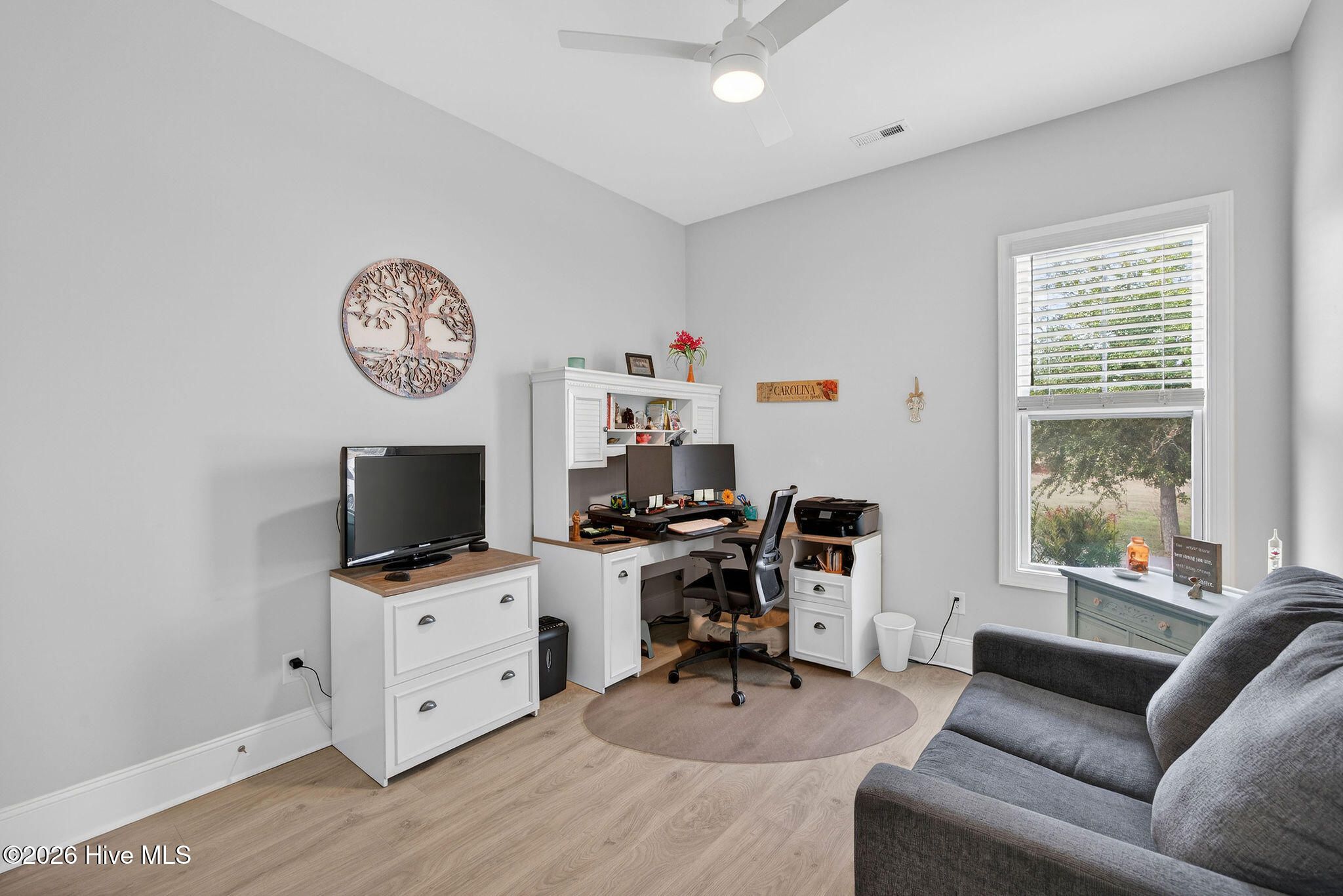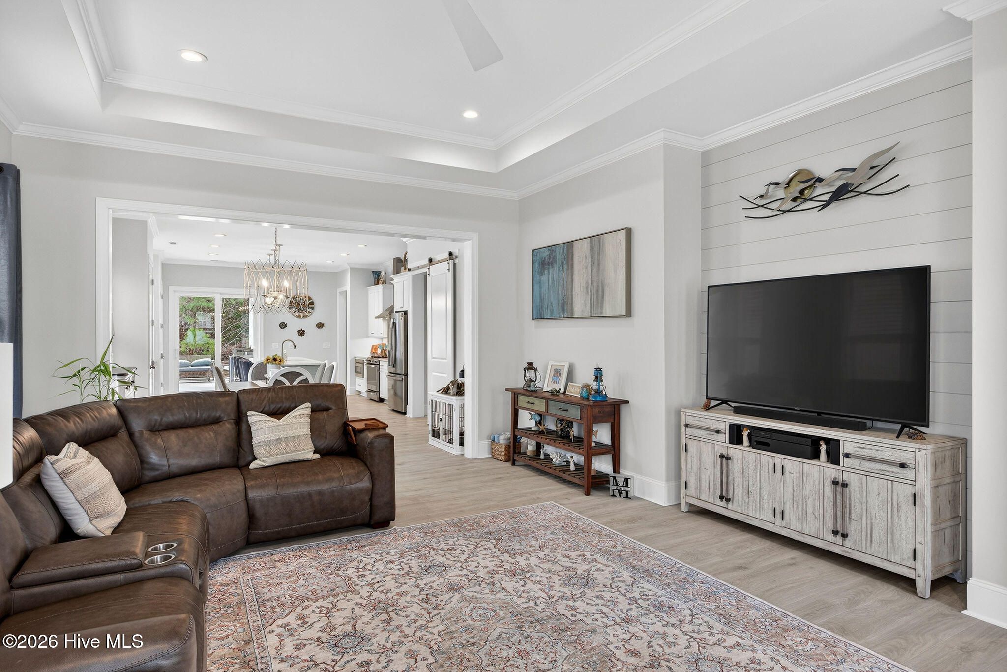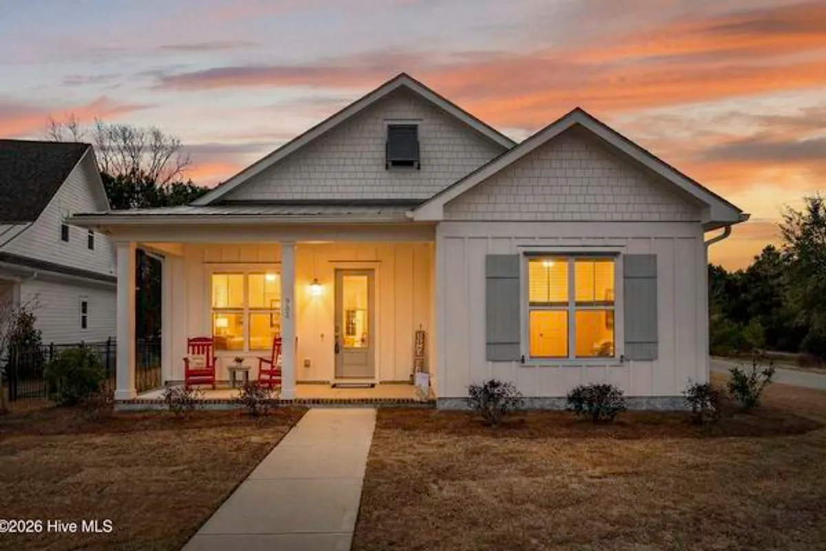 Welcome to River Bluffs, an amenity-rich, gated community sitting high above the banks of the Cape Fear River. Developers have utilized a grand plan to preserve natural habitat, leaving open park spaces, walking trails and mature trees. River Bluffs offers two community pools, fitness rooms, tennis, pickleball, basketball, marina, riverwalk, boat launch, dog park, even a community farm! River Bluffs Marina currently offers slips for rent or purchase. Community storage is also available for all of your big boy toys. Constructed in 2023 by Richard Wallace Builders, one of the area's preeminent home builders, featuring 1873sf spread across a single story, this home will suit buyers of any age. Coastal craftsman stylings include mixture of shake and board & batten siding as well as a garage arbor. Covered front and rear porches feature salt rock treatment on floors and create inviting outdoor space for gathering. Upgraded, wide plank LVP flooring runs throughout main living space and bedrooms. Bathrooms feature beautiful mosaic tile. The chef's kitchen features GE Profile appliances, soft-close cabinets, undermount lighting, and extended center island. The beverage bar features floating shelves, a wine cooler, and is flanked by dual pantries. Thoughtful consideration was given to fixture choices. Abundant windows and a solar tube in primary bathroom allow for natural light throughout. Home features 10' ceilings and 8' solid-core doors, tankless water heater, fenced yard, and Trane HVAC system. Side-facing garage is located on rear of home, has epoxied floor, storage closet, and ceiling mounted storage system. This coastal cottage is truly turnkey and offers an opportunity to live in one of the area's most revered communities. HOA dues include concierge trash and recycling service, as well as full yard maintenance.