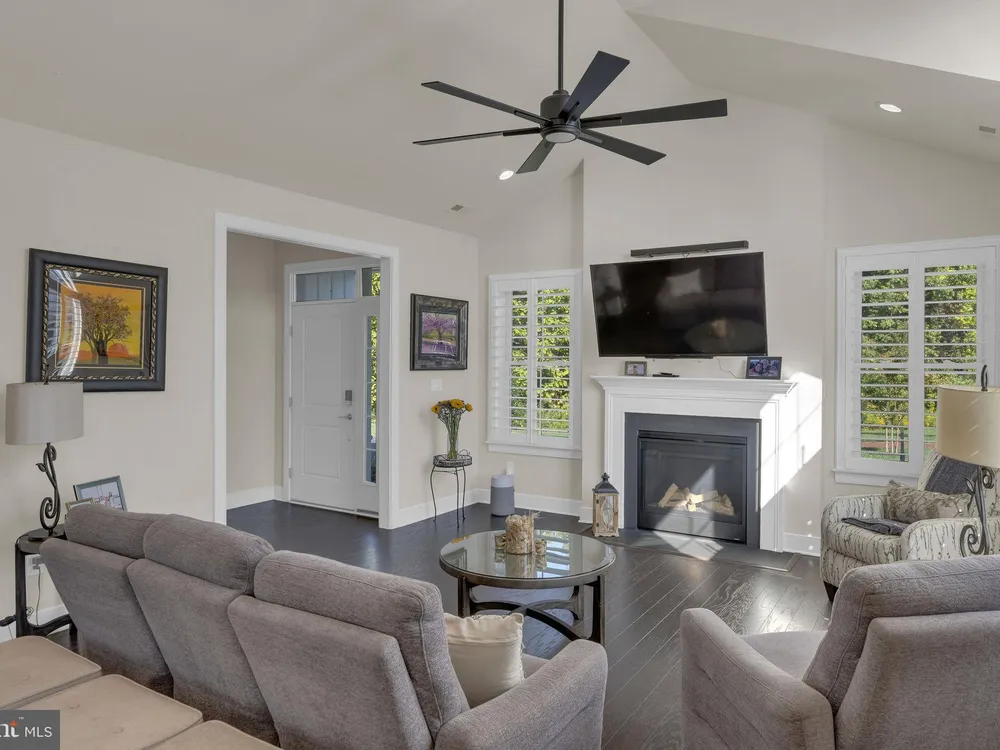 Welcome to 332 Dunhill Way, where thoughtful design, upgrades and enhancements create a home that is as comfortable as it is beautiful. From the moment you enter, wide plank plantation shutters set the tone—crafted with dual-control panels. Natural light pours into every room, complementing the 5-inch plank hardwood flooring that unifies the entire home, creating warmth and flow from room to room. At the heart of the main level is the great room with soaring vaulted ceilings, a cozy fireplace, and open sightlines to the outdoor tree line and community gazebo. The chef’s kitchen is a true showpiece, featuring 48-inch cabinetry to the ceiling, a custom tile backsplash, stainless steel appliances, and a functional island designed for gathering. The main-level primary suite offers ease and elegance, complete with spa-like finishes, separated vanities, and two generous walk-in closets. Upstairs, a versatile loft serves as a media room, office, or fitness area. Additional bedrooms and baths provide comfort and flexibility for family or guests. A custom mudroom and laundry area with built-in cabinetry and sliding barn doors adds organization and charm, while ceiling fans throughout enhance year-round comfort. The garage is finished with a durable coated floor, combining polish with practicality. Step outside to your private patio oasis, complete with professional landscaping and a Weber Genesis II natural gas grill connected directly to the home’s line. The community’s gazebo, manicured walking paths, and tree-lined surroundings extend your living space into the outdoors. Less than three years old, yet better than new, this home blends modern convenience, inspired design, and more than $100,000 in thoughtful investments—ready to welcome its next chapter.