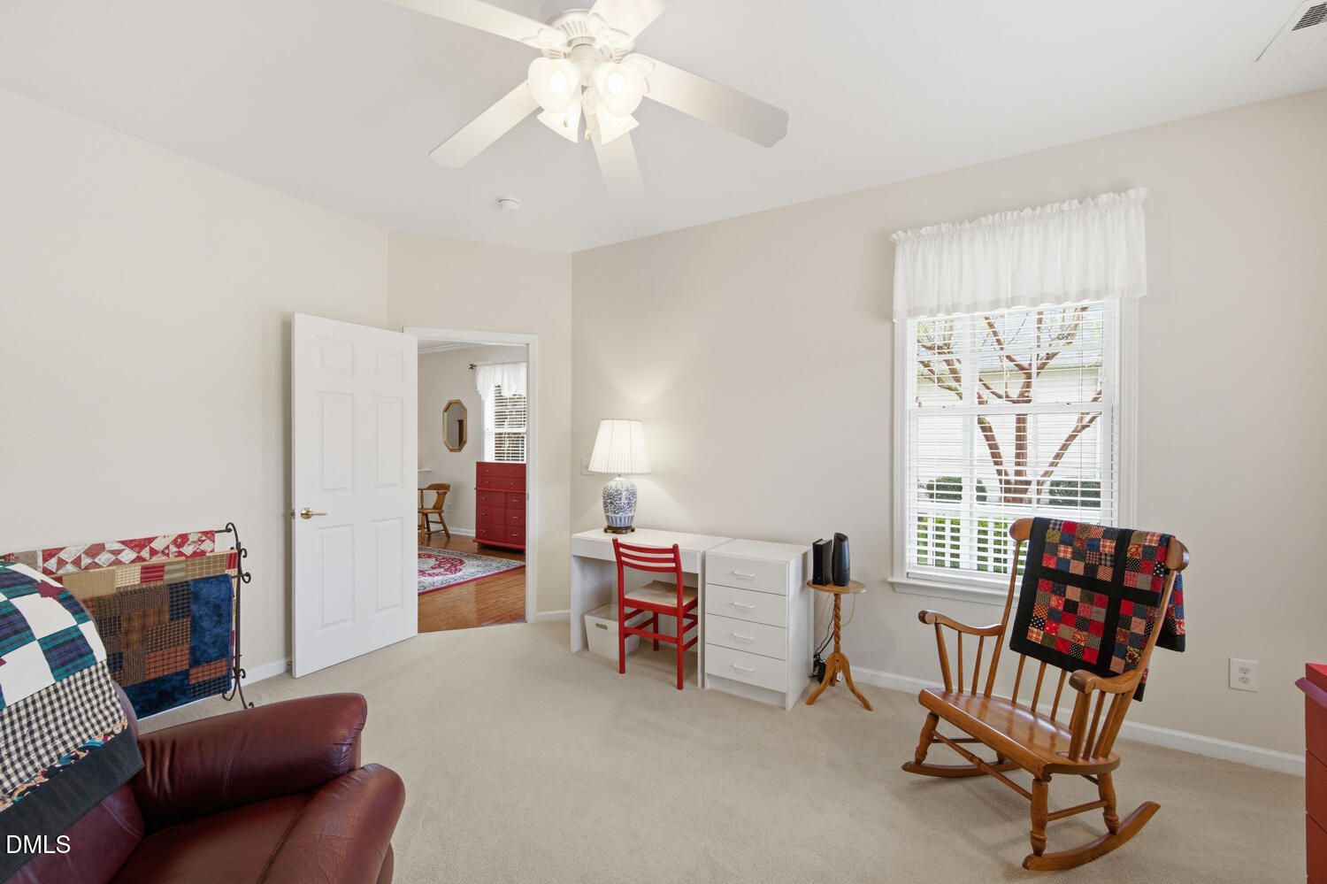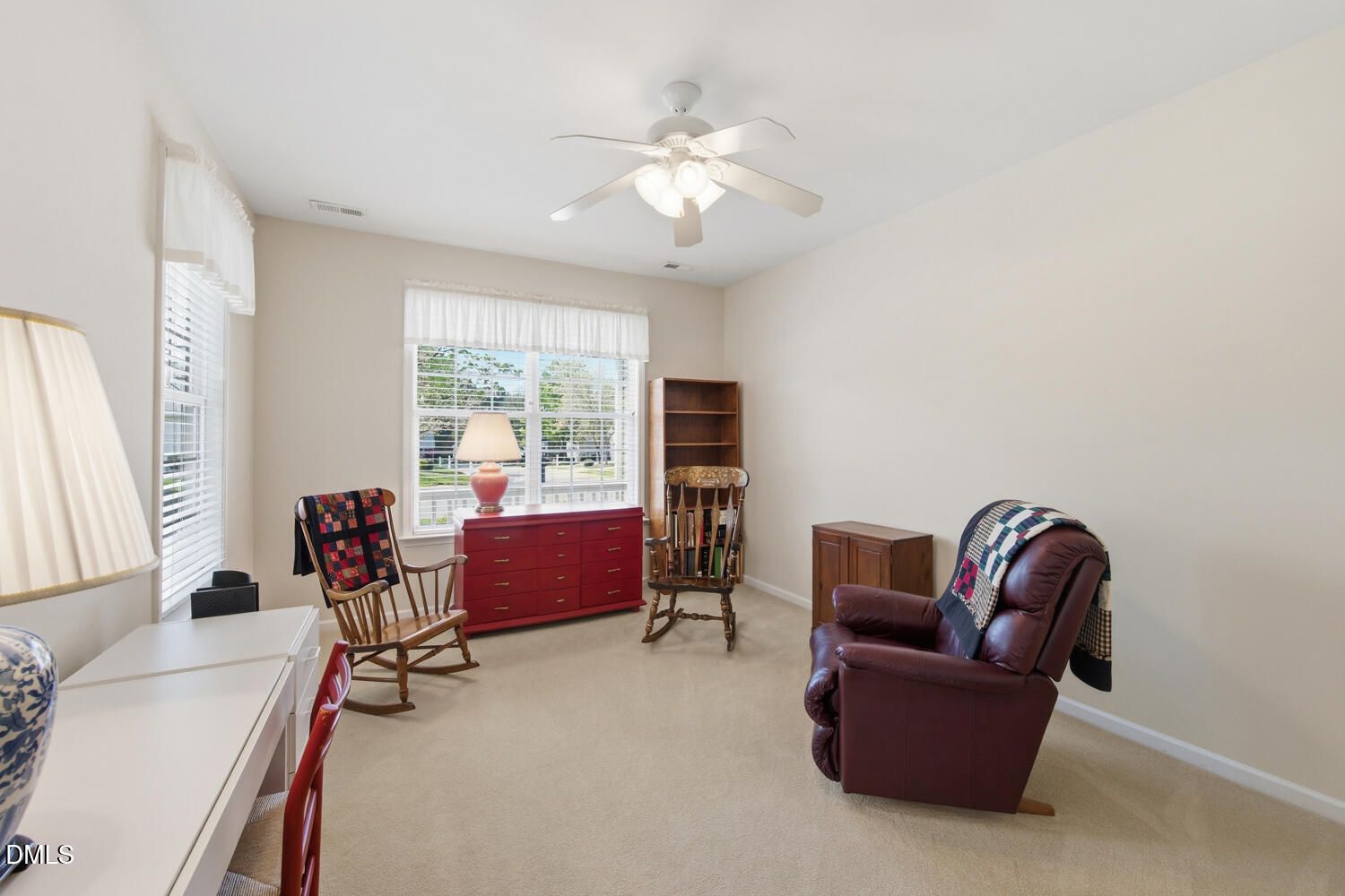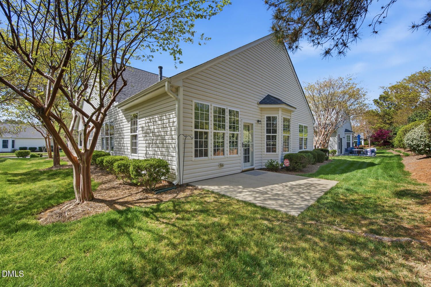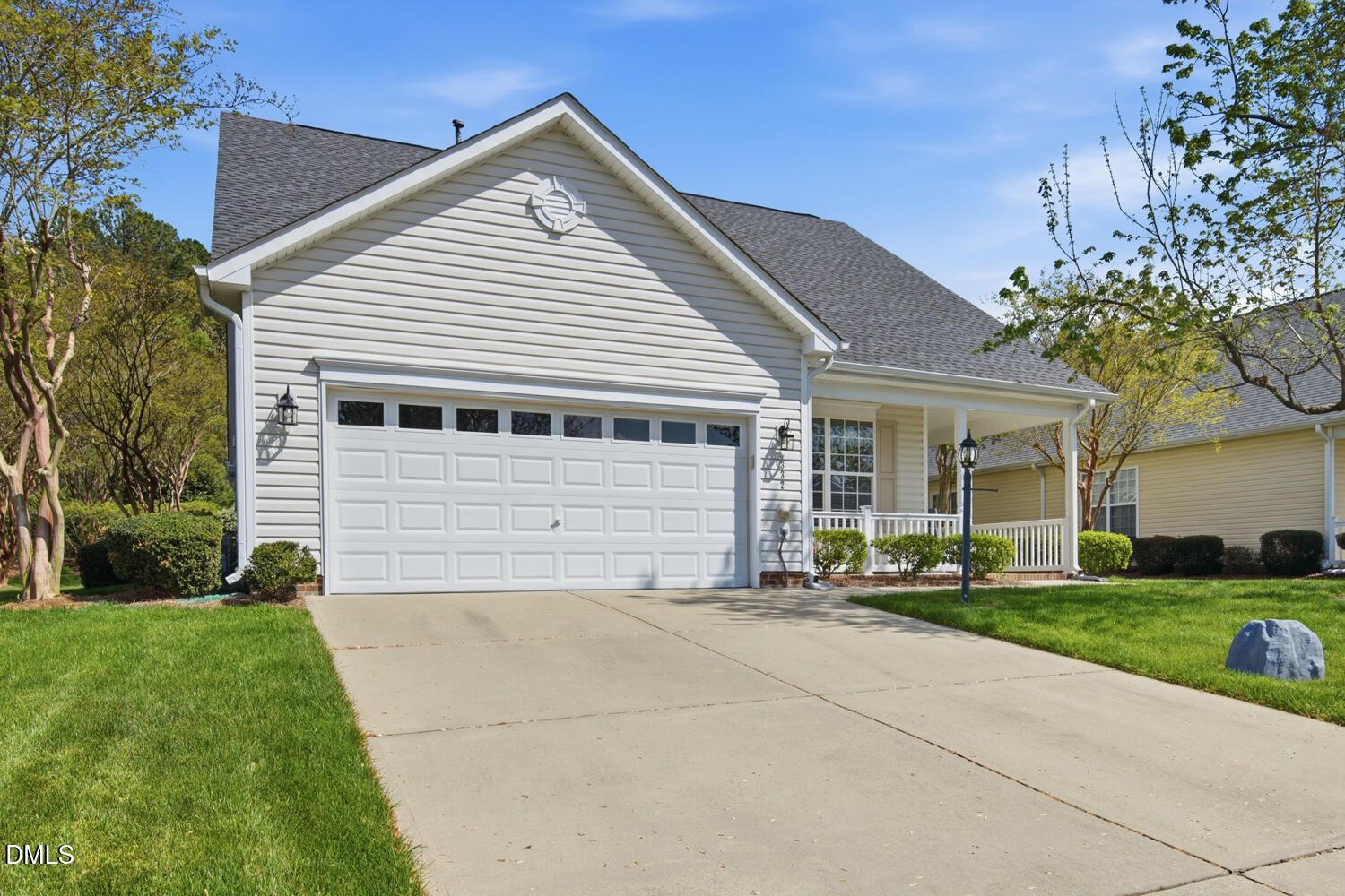 Enjoy active adult living in an ideal Cary location in Heritage Pines. This charming, like-new transitional ranch offers a bright, open, and versatile design with thoughtful details throughout. The spacious kitchen features granite countertops, 42'' maple cabinets, a serving bar, and a sunny bay window in the breakfast area, all flowing seamlessly into the family room - perfect for everyday living and entertaining. A striking double-sided fireplace connects the family room and formal living room, creating warmth and ambiance across both spaces. The home also includes a formal dining room, 2 bedrooms plus a study, and a comfortable, functional layout. Step outside to relax on the inviting wrap-around porch or enjoy the rear patio - ideal for outdoor dining or quiet mornings. Additional features include a 2-car garage, security system, and 4-zone irrigation system. Refrigerator, washer, and dryer convey. Located in a sidewalk- and trail-lined community near the Cary Greenway, RTP, RDU, shopping, dining, and major roadways, this home includes access to Heritage Pines' exceptional amenities: clubhouse with library, game room, arts and crafts room, and catering kitchen; fitness center and large gathering space; monthly resident art displays; outdoor pool and hot tub; and tennis, pickleball, bocce ball, and shuffleboard courts. A perfect blend of comfort, convenience, and vibrant community living.