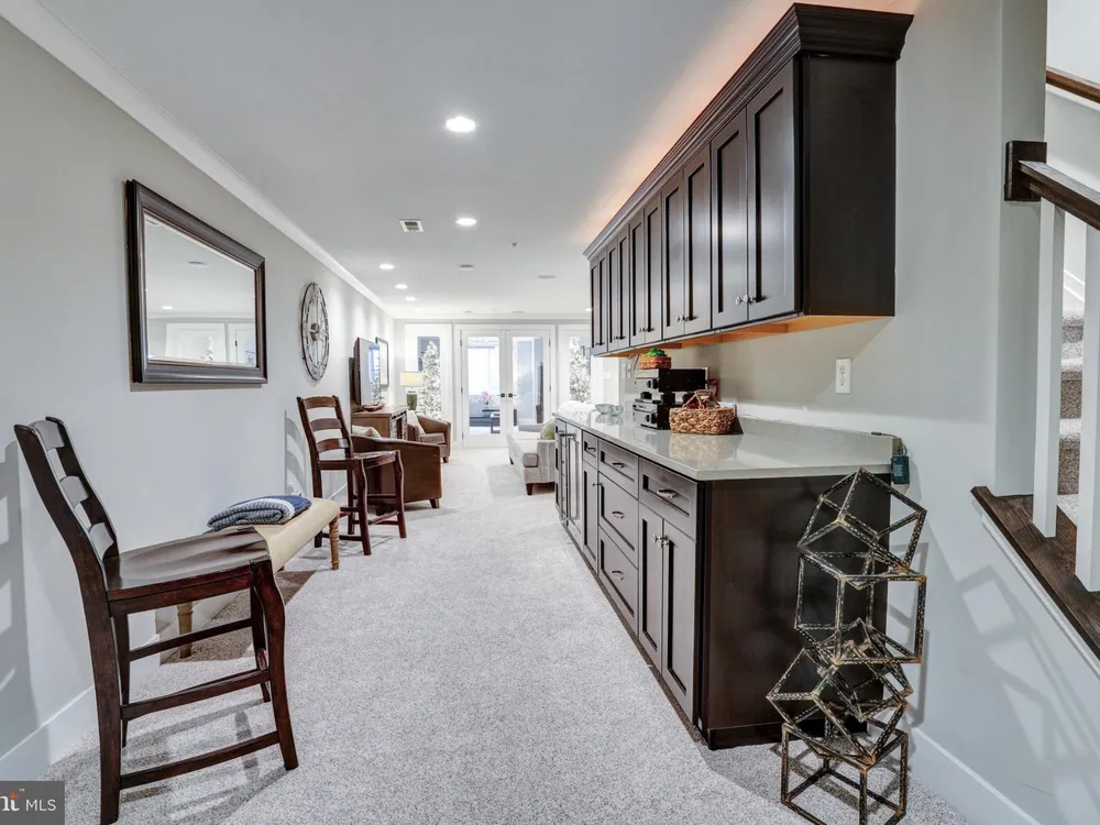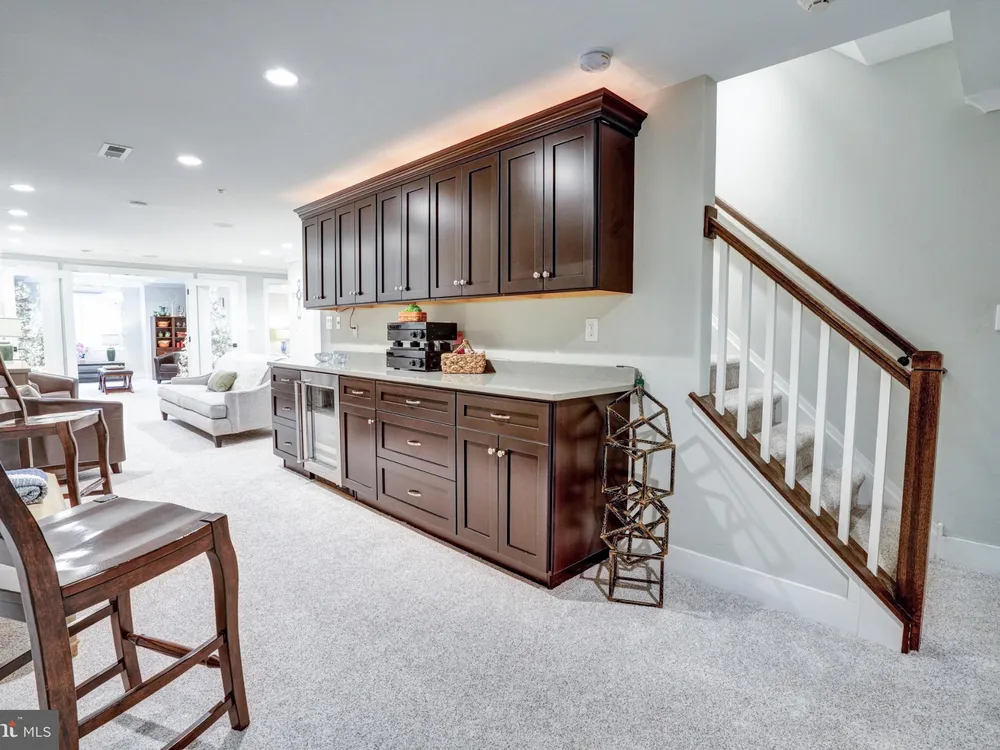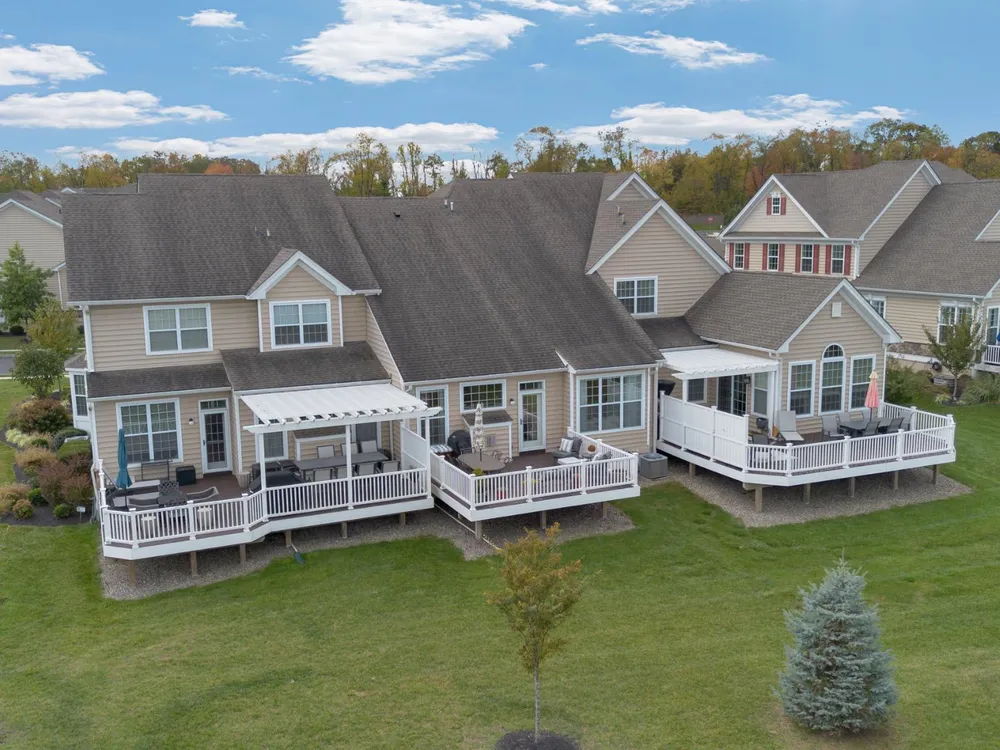 Immaculate Former Model Home in sought after White Springs 55+ Community – Packed with Upgrades and Premium Features and perfectly positioned on a premium lot backing to open space. This exquisite 3-bedroom, 2 full and 2 half-bath carriage home is loaded with dozens of designer upgrades and smart home features — offering approximately 3,400 sq. ft. of finished luxury living across three levels. Step into a stunning entrance foyer and immediately notice the elegant finishes — from the custom wainscoting in the formal Dining Room to the rich hardwood floors throughout the main level. The heart of the home is the gourmet Kitchen, complete with quartz countertops, extended cabinetry, stainless steel appliances, tile backsplash, and a large island perfect for entertaining. The Kitchen opens to a breathtaking A-frame Great Room, featuring a cathedral ceiling with exposed beams, a gas fireplace, and a wall of windows that fill the space with natural light. Step outside to your oversized, maintenance-free composite Deck and enjoy serene views of the open space — perfect for morning coffee or evening gatherings. The expanded main-floor Primary Suite is a true retreat, with tray ceiling, custom millwork, and a walk-in closet that conveniently connects to the Laundry Room with 42” cabinets. The luxurious en-suite Bath offers a frameless glass shower with bench, soaking tub, and double vanity — all designed for comfort and ease. Upstairs, a spacious Loft/Office area with built-in cabinetry and recessed lighting is ideal for work or relaxation. You'll also find two generously sized Bedrooms — each with walk-in closets and detailed finishes like crown molding and upgraded carpet — plus a well-appointed Hall Bath with a double vanity. But the real surprise awaits below: a fully finished Basement that adds incredible versatility. Enjoy an entertainment area with built-in cabinetry, quartz countertops, and a wine refrigerator, additional 2 possible Bedrooms and Office space, a Powder Room, plus an unfinished area with a workbench and ample storage. Additional Highlights: Expanded Primary Bedroom and Great Room, Custom interior millwork throughout, 3-zone Nest-controlled HVAC, Smart home technology: Nest doorbell & driveway camera, MyQ garage system, Hampton Bay WiFi-controlled lighting & irrigation, 4-zone ceiling stereo system (Great Room, Primary Bedroom, Loft, Basement), Epoxy-finished garage floor, sump pump with battery backup, New dishwasher and refrigerator, Gas dryer, 9’ ceilings, extensive recessed lighting. Enjoy a short stroll to the community clubhouse, where you can take advantage of the fitness center, pool, game room, and tennis courts. All of this, just minutes from Providence Town Center shopping, fine dining, and major roadways. This home isn’t just move-in ready — it’s lifestyle ready. Experience one of the most beautifully designed homes in White Springs!