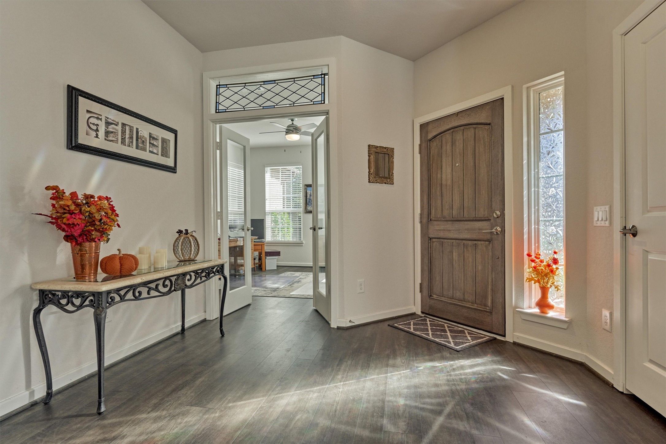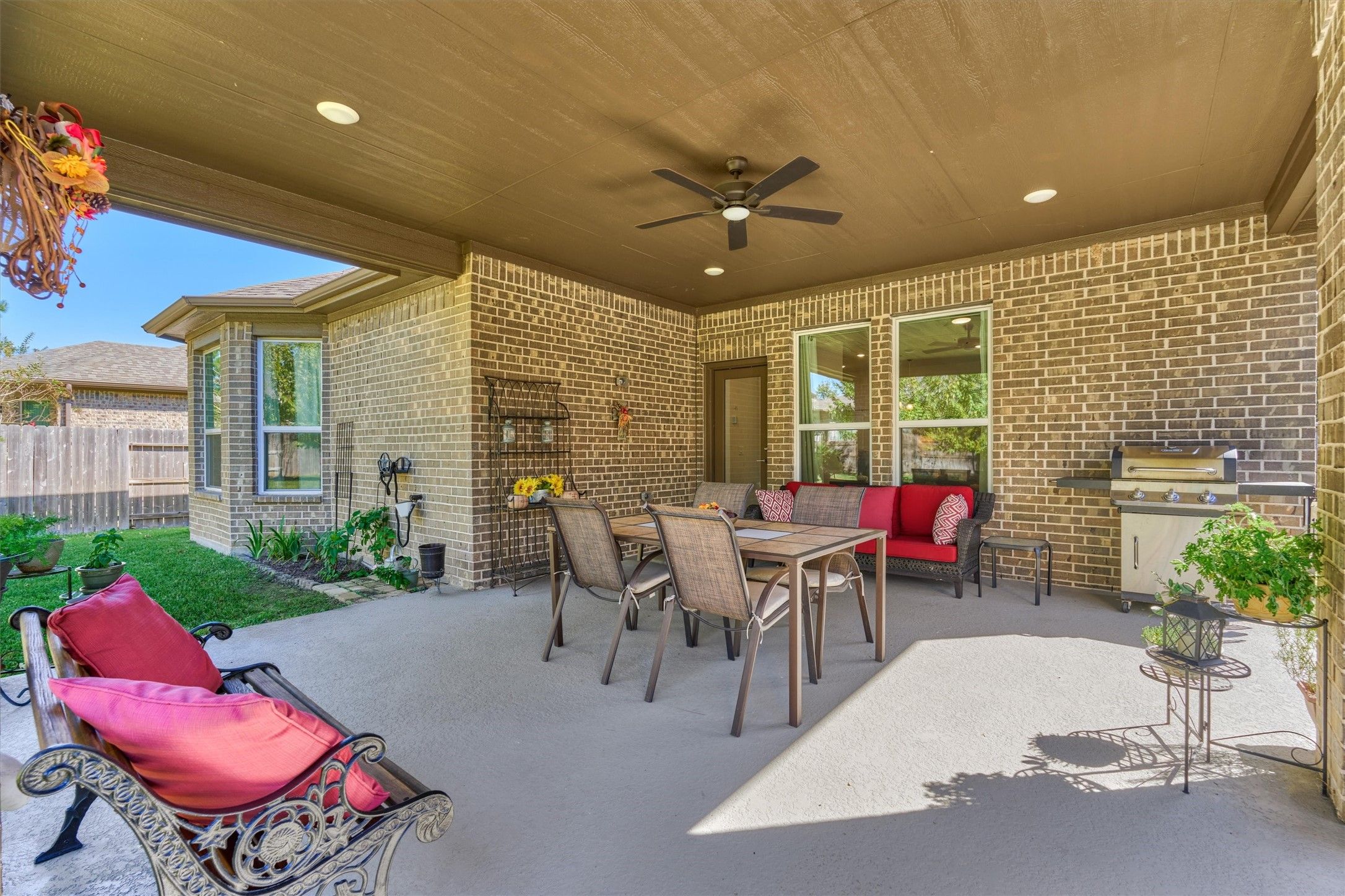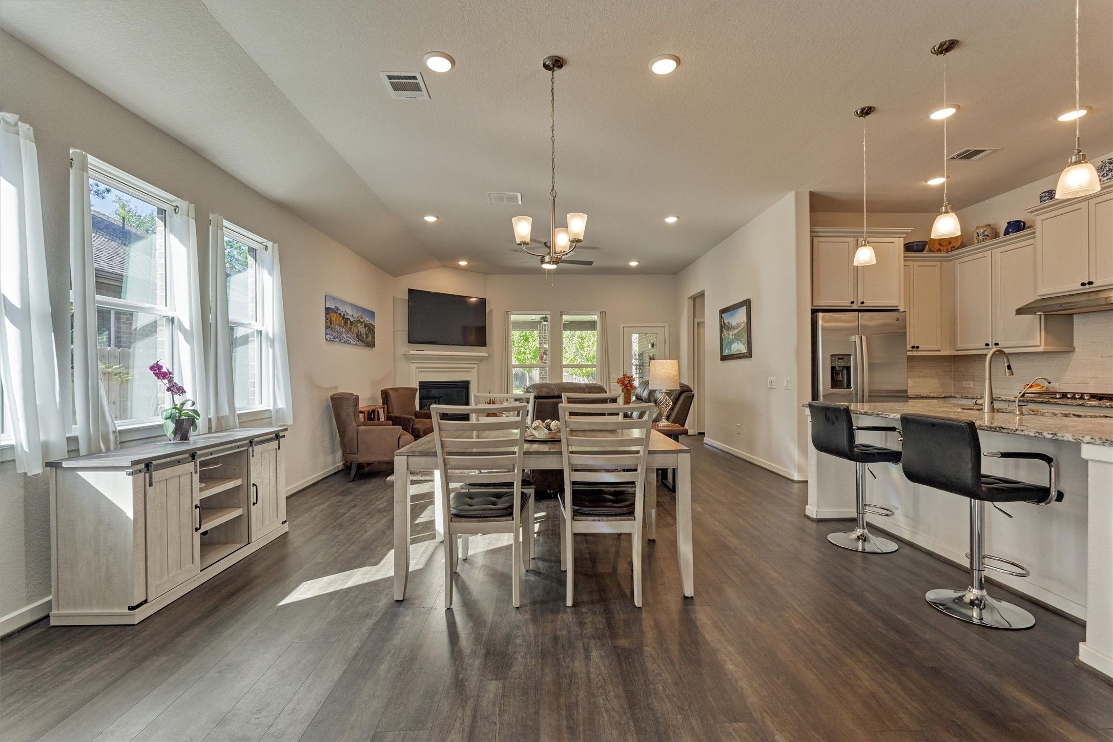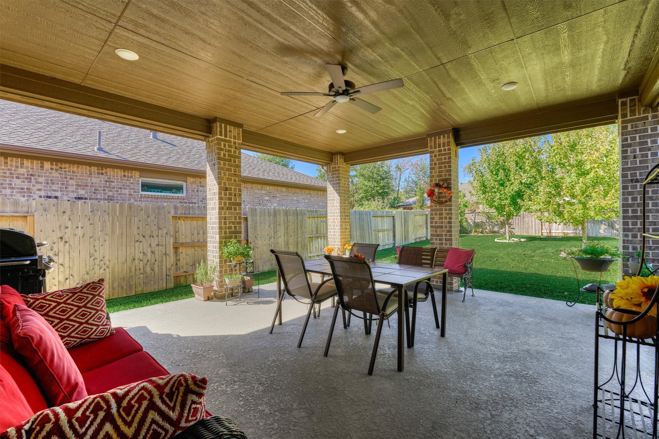 Enjoy easy, low-maintenance living in this beautifully designed one-story home located in the sought-after 55+ community of Bonterra at Woodforest. Designed for comfort and style, this home features a beautifully appointed kitchen with stainless steel appliances, granite countertops, gas cooktop, soft-close drawers, and ample cabinet space. The single-story plan offers an open layout with high ceilings. A dedicated study with French doors offers the perfect space for a home office, hobby room, or quiet retreat. The living area provides great natural light, a cozy gas fireplace, and a warm, inviting atmosphere. The spacious primary suite includes a bay window, dual sinks, and an oversized walk-in shower. Enjoy a covered front porch and large covered back patio—plus a full sprinkler system for easy maintenance. Bonterra offers resort-style amenities including a clubhouse, fitness center, pool, pickleball, trails, and a vibrant social calendar making it easy to stay active and connected.