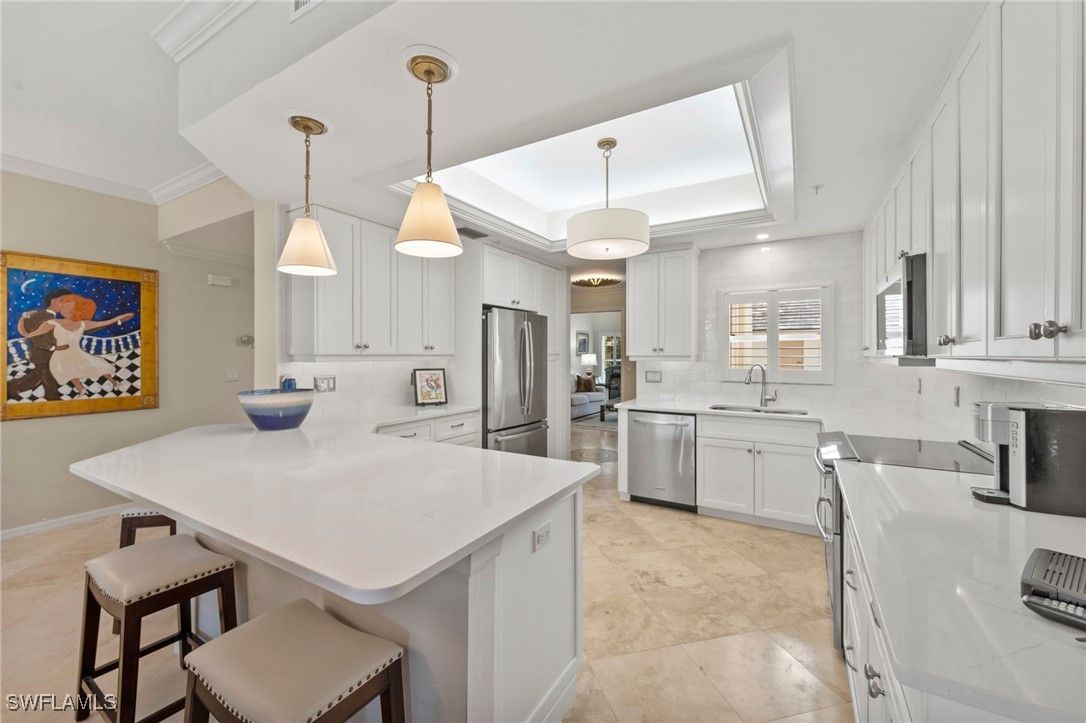 Experience refined living in Bonita Bay with this beautifully updated first-floor, 3-bedroom, 2-bath condo offering nearly 1,978 square feet of elegant space. From the expansive screened lanai, enjoy serene lake and golf course views framed by northwest exposure, filling the home with natural light and evening sunsets. The open floor plan seamlessly connects the living, dining, and kitchen areas, while the primary suite serves as a private retreat with a spa-like bath and generous closet space. A large guest suite and versatile third bedroom/media room provide comfort and flexibility for family or guests. Updated kitchen, flooring and baths make this residence move-in ready with timeless finishes, and the two-car garage offers ample storage. Nestled within the prestigious Bonita Bay community, residents enjoy private beach access on the Gulf of Mexico, optional golf and tennis memberships, a lifestyle fitness center and spa, miles of walking and biking trails, and a full-service marina with island-style dining. This condo truly shows like a model, blending sophistication, comfort, and the coveted Bonita Bay. This is loving the lifestyle.