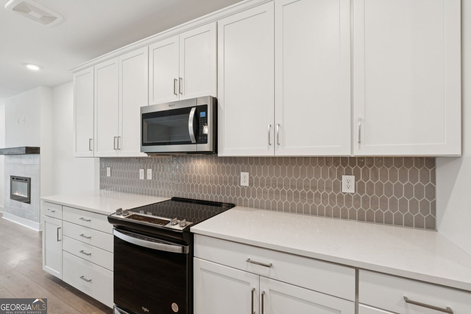 - Dishwasher, Disposal, Dryer, Electric Water Heater, Microwave, Refrigerator, Washer, Range, Stainless Steel Appliance(s)