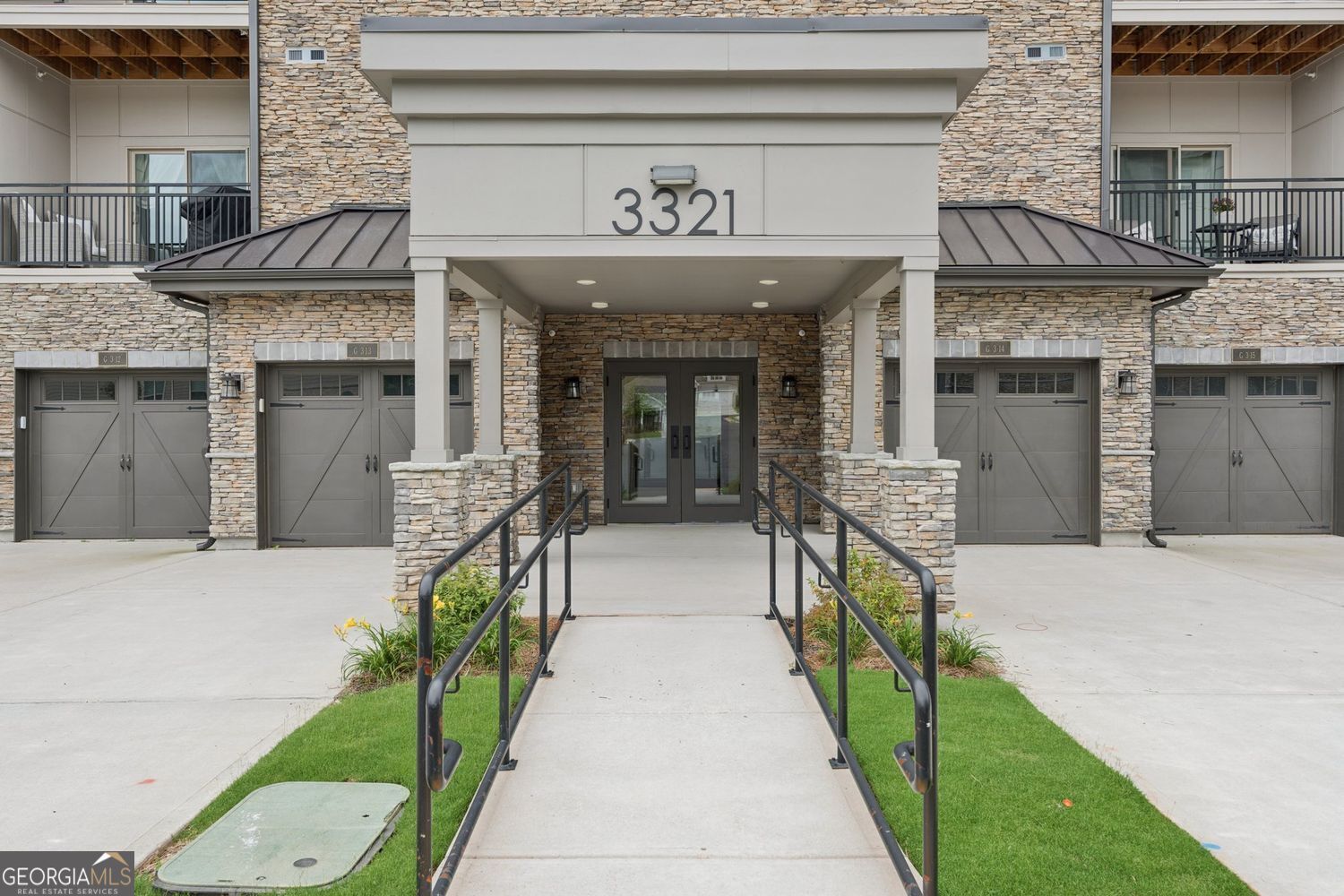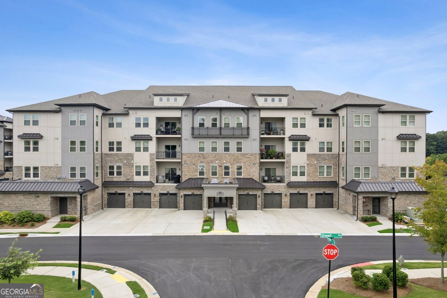 BEST VALUE IN THE COMMUNITY! This beautiful CORNER UNIT in the luxurious 55+ Gatherings at Herrington condo community offers extra windows to keep it light, bright and airy. The popular SHERWOOD floor plan features 2 Beds / 2 Baths (+ dedicated office) and an open concept design with a split bedroom layout to ensure privacy. The spacious master suite offers room for a cozy sitting area and ample space for oversized furnishings. Completing the owner's suite, you'll find a well-appointed en-suite bath with separate shower & soaking tub and a well-sized walk-in closet. The chef-ready kitchen features 42" cabinets, gleaming QUARTZ countertops (including a large center island w/ breakfast bar seating), and a stainless-steel appliance package. And don't miss the HUGE walk-in pantry that is straight out of an HGTV dream home magazine! The open concept great room is perfect for entertaining or cuddling in front of the fireplace on cool, autumn evenings. Just outside the great room, you'll find your covered patio. Just outside the great room, you'll find your covered patio. The Gatherings at Herrington - one of Forsyth County's most sought-after 55+ communities - offers a beautifully designed clubhouse perfect for get-togethers and parties, a fitness center, outdoor covered veranda w/ kitchen/grilling area and an outdoor fireplace overlooking a lovely pool area. Looking to meet new people? Join in on the community activities! Pet owners who want to take Scruffy for a leisurely walk may enjoy wandering over to the community dog park for an impromptu play date. Be sure to check out your oversized, detached 1-CAR GARAGE. Situated in a secure, gated community close to shopping, restaurants & top medical facilities - with easy access to GA-400, this is the perfect place to call home! FREEDOM - Enjoy the LOCK-and-LEAVE LIFESTYLE. Don't miss the opportunity to make this beautiful, bright CORNER UNIT your next home! ***COA fee covers maintenance of common areas and buildings, landscaping and "valet trash service" which picks up at the door 5 days per week. *Some photos are staged to show potential furniture layout options.