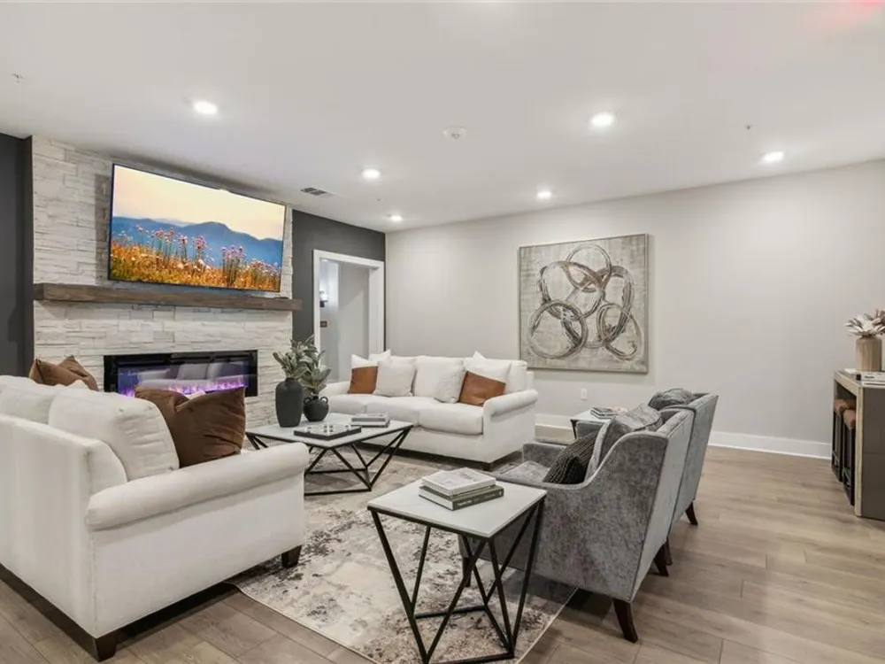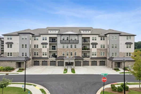 This beautiful CORNER UNIT in the luxurious 55+ Gatherings at Herrington condo community offers extra windows to keep it light, bright and airy. The popular SHERWOOD floor plan features 2 Beds / 2 Baths (+ dedicated office) and an open concept design with a split bedroom layout to ensure privacy. The spacious master suite offers room for a cozy sitting area and ample space for oversized furnishings. Completing the owner's suite, you'll find a well-appointed en-suite bath with separate shower & soaking tub and a well-sized walk-in closet. The chef-ready kitchen features 42" cabinets, gleaming QUARTZ countertops (including a large center island w/ breakfast bar seating), and a stainless-steel appliance package. And don’t miss the HUGE walk-in pantry that is straight out of an HGTV dream home magazine! The open concept great room is perfect for entertaining or cuddling in front of the fireplace on cool, autumn evenings. Just outside the great room, you’ll find your covered patio. Just outside the great room, you’ll find your covered patio. The Gatherings at Herrington - one of Forsyth County’s most sought-after 55+ communities - offers a beautifully designed clubhouse perfect for get-togethers and parties, a fitness center, outdoor covered veranda w/ kitchen/grilling area and an outdoor fireplace overlooking a lovely pool area. Looking to meet new people? Join in on the community activities! Pet owners who want to take Scruffy for a leisurely walk may enjoy wandering over to the community dog park for an impromptu play date. Be sure to check out your oversized, detached 1-CAR GARAGE. Situated in a secure, gated community close to shopping, restaurants & top medical facilities - with easy access to GA-400, this is the perfect place to call home! FREEDOM - Enjoy the LOCK-and-LEAVE LIFESTYLE. Don't miss the opportunity to make this beautiful, bright CORNER UNIT your next home! ***COA fee covers maintenance of common areas and buildings, landscaping and “valet trash service” which picks up at the door 5 days per week. *Some photos are staged to show potential furniture layout options.