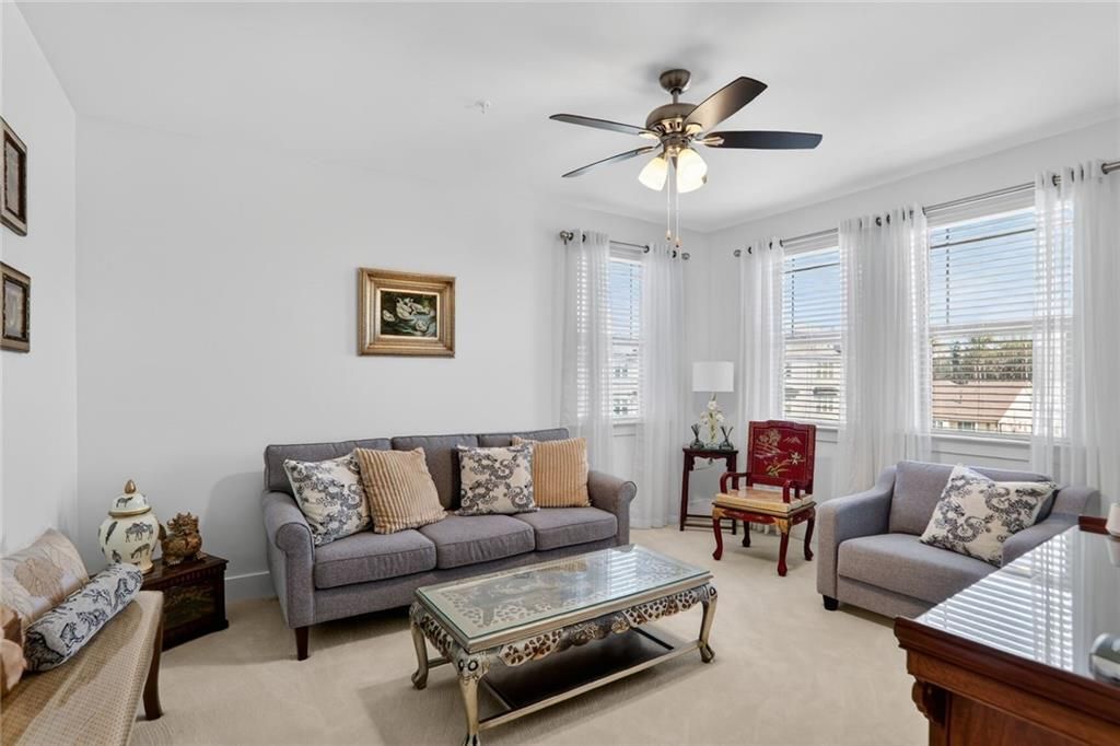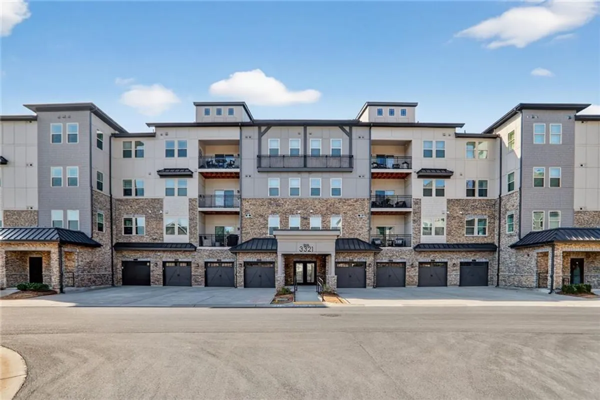 Welcome to Gatherings at Herrington, a gated 55+ Community located in Forsyth County. This RARE and PRISTINE 3 Bedroom, 2 Bath condo home is perfect for your low maintenance, secure, lock-and-leave lifestyle. Located on the 4th floor, this corner Penthouse unit is the largest in the community. Ride the elevator to your IMMACULATE home with a Gourmet Kitchen, Dining Room with doors (could be an Office), spacious Living Room with Balcony overlooking the community, oversized Primary Bedroom, Primary Bath with Full Shower with built-in bench, Two additional Bedrooms with abundant storage and Guest/Hallway full Bathroom. This unit comes with the Largest attached Garage, deeded with the property. The Garage has a new Epoxy Floor and has been fully re-painted. Numerous upgrades by the Sellers includes custom Closet systems, upgraded Plush Carpet and pad, re-painted throughout, and so much more! This Gated Community has state-of-the-art facilities including Clubhouse, Fitness Room, Outdoor Lanai with Grilling Area, Lap Pool, and Dog Park. The COA includes Common Areas, Buildings, Landscaping, and Valet Trash Service. Enjoy social activities, living close to The Collection, the new Whole Foods, Halcyon, close proximity to Northside Forsyth Hospital, Emory Johns Creek, and so much more. This Wilshire Floor Plan is move-in Ready! WELCOME HOME!