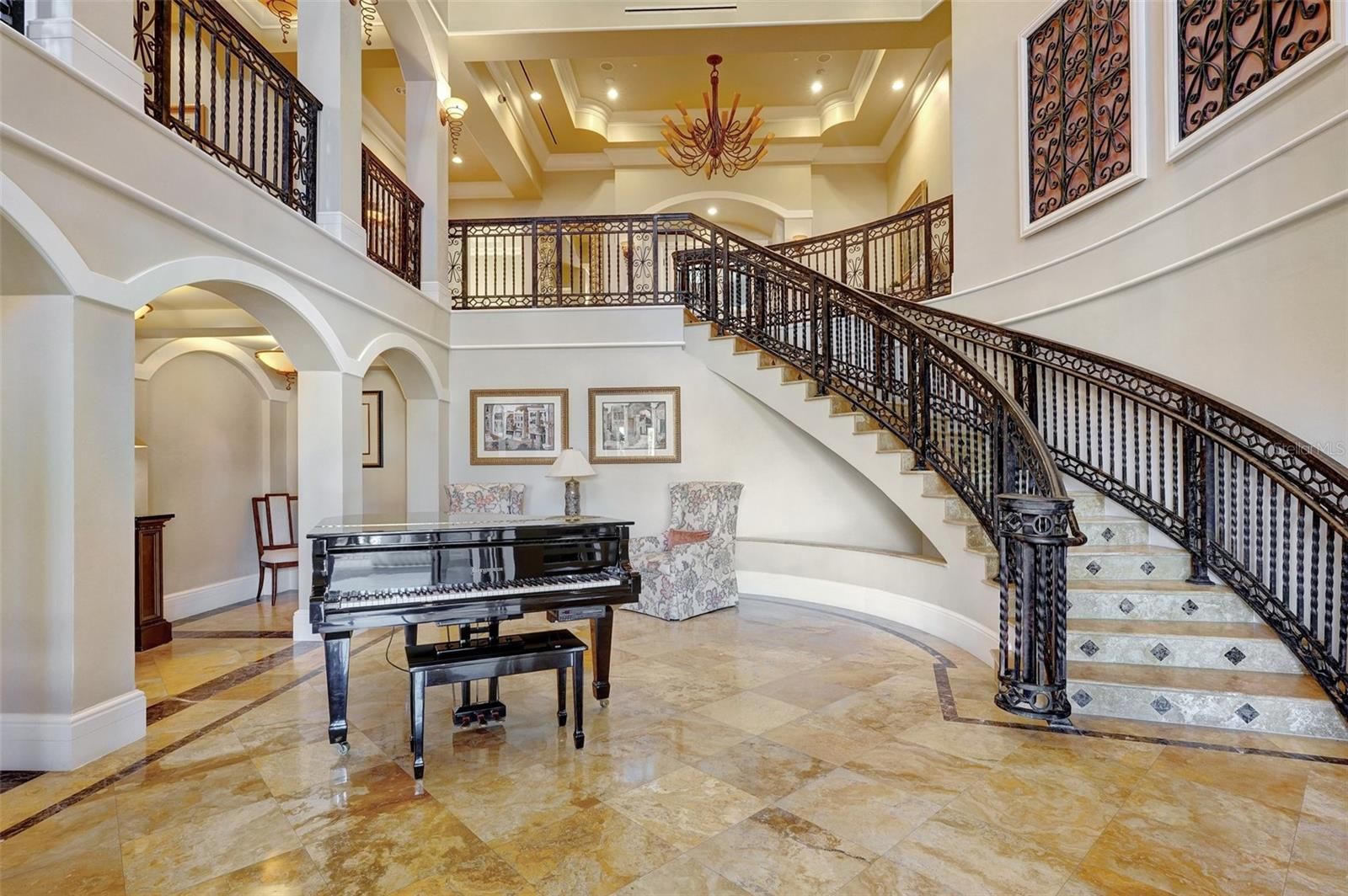 - Built-in Features, Ceiling Fan(s), High Ceilings, Open Floorplan, Main Level Primary, Split Bedrooms, Thermostat, Walk-In Closet(s), Wet Bar, Window Treatments