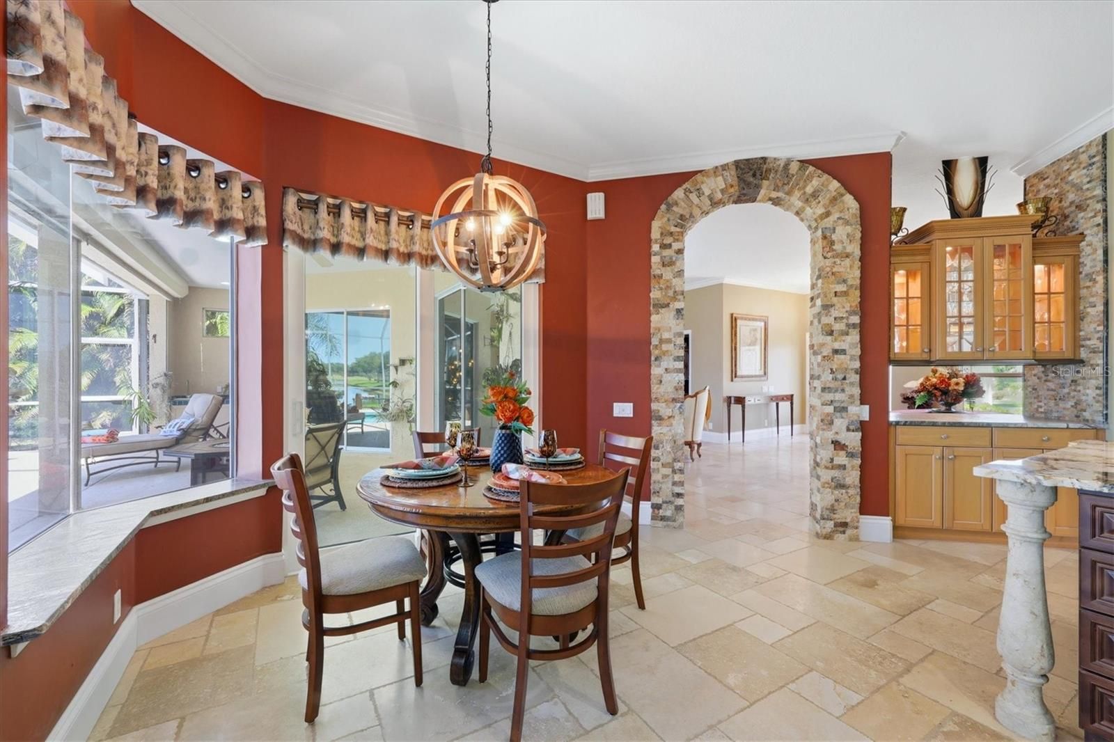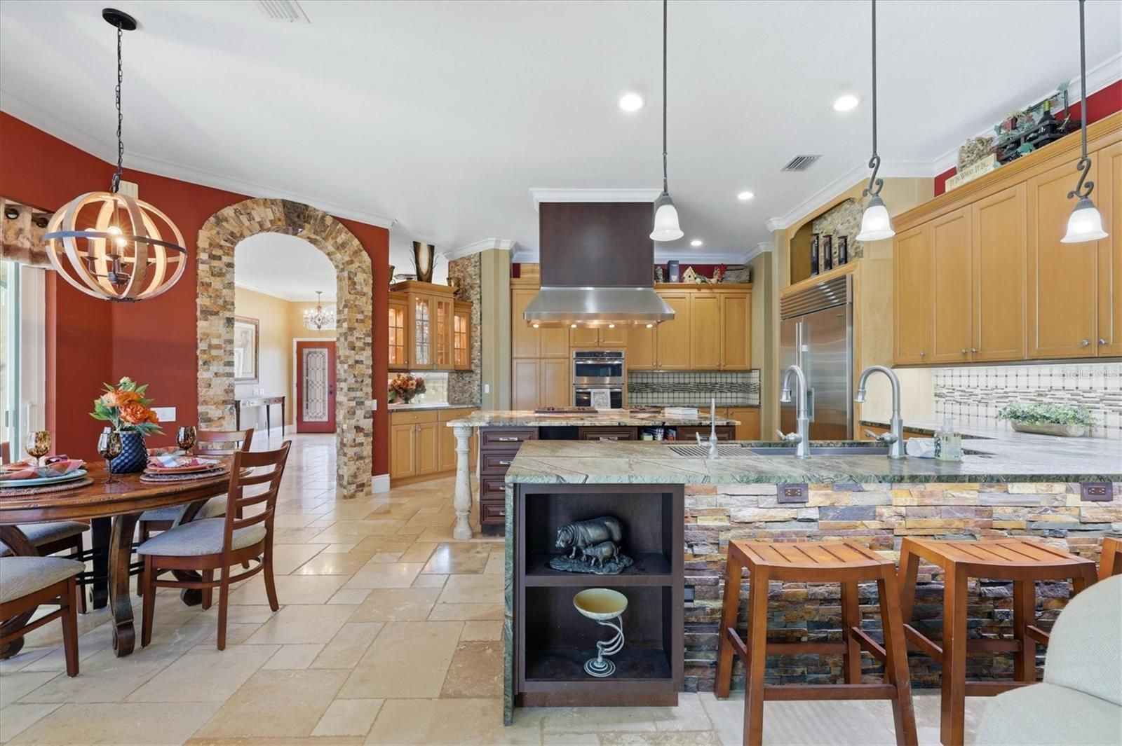 Heron Creek Golf & CC 4BED /3.5 bath /Office/ Bonus room/ 3 Car Gar set on a premier, coveted Lakeview Lane homesite. This exceptional executive residence captures sweeping water & fairway views of the 9th hole of the Marsh Course —a setting that is nothing short of spectacular—and is ideally located just moments from the clubhouse & community amenities. Spanning 3,523 sq ft under air, this one-of-a-kind home blends timeless architecture with globally inspired design, creating a residence rich in character & artistry. From the moment you enter, the eye is drawn through the home to the breathtaking view, framed by expansive windows and a seamless, airy flow from room to room. The main level hosts all bedrooms including a luxurious primary suite, while the upper level offers the perfect media room or private escape with 1/2 bath and stunning golf vistas! The home showcases travertine flooring throughout the main living areas, curated stonework, and bespoke finishes inspired by the sellers’ worldly travels. The kitchen is a true showpiece featuring a timeless SUB-ZERO refrigerator BOSCH dishwasher, GE wall oven & microwave, and a commercial 6-burner natural gas range w/ double ovens and professional vent hood, all complemented by exotic granite surfaces including a dramatic waterfall edge and a handcrafted wood island designed for gathering & entertaining. A whimsical hidden walk-in pantry tucked beneath the staircase adds both charm & function. The primary suite is a true retreat, anchored by a spa-inspired bath with a freestanding soaking tub, intricate mosaic tile, & custom stonework that create a richly layered, artful environment, while the hand-etched glass shower enclosure—featuring frolicking aquatic life —serves as a striking focal point. The well-designed split plan includes 2 guest bedrooms and shared full bath, while a third bedroom is adjacent to a full bath that offers exterior access to the pool & lanai. A sunlit solarium-style flex room overlooks the pool and captures the tranquil SUNSET VIEWS over the lake and fairway, offering the perfect space for a studio, or creative retreat. The family room boasts a striking double-sided fireplace with artistic accents, adding warmth and architectural presence. Step outside to an expansive lanai framed by a lush tropical palm buffer where gentle breezes create a soothing, natural soundtrack enhancing the serene outdoor setting where "Nixie" the mermaid stands watch. Revision of the Roman style pool and spa pool design was next up on the owner's wish list but now —the space offers a rare opportunity for the next owner to reimagine and create their own resort-style oasis. Additional highlights inc: engineered hardwood flooring in the bedrooms, a dedicated home office, X-tra deep 3-car garage, & hurricane shutters ++! This is more than a home—it is a statement property, offering a rare blend of location, scale, and soulful design unlike anything else in Heron Creek. Residents of Heron Creek enjoy 27 holes of championship golf designed by Arthur Hills, a world-class golf learning & practice facility, an active social calendar, resort-style pool, Har-Tru tennis courts, and a stunning 21,000 sq ft clubhouse—where nothing compares. Located just minutes to the new $507M Sarasota Memorial Hospital North Port Campus (under construction), Wellen Park, the Braves stadium, Costco, with easy access to major airports, this location offers the perfect blend of luxury, lifestyle, and convenience.