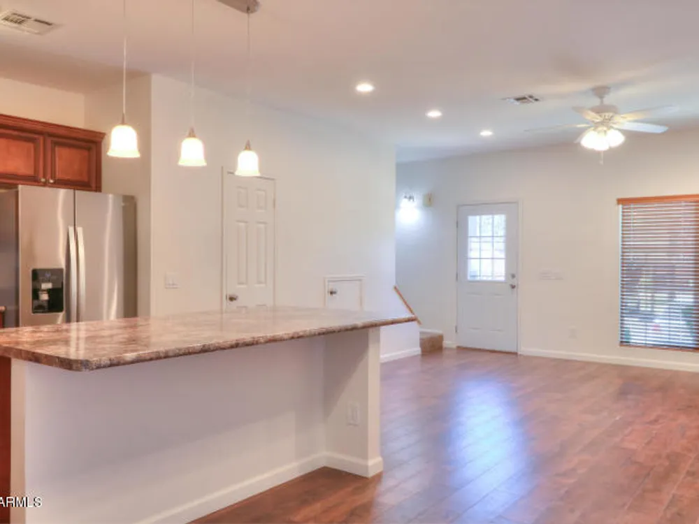 Absolutely gorgeous 2bed / 2.5 bath Granville townhouse. This is an end corner unit and is move in ready! Step in to all new floors, new open kitchen, complete with stainless steel appliances and updated cabinets, fixtures and oversized kitchen island. Recently replaced carpet on stairs and in both bedrooms and both are split, upstairs and feature vaulted ceilings. Upstairs laundry with washer dryer included. Fantastic location within the community is steps from community pool. And prime North Phoenix location has super easy access to 101 & 17. This home is a great find!