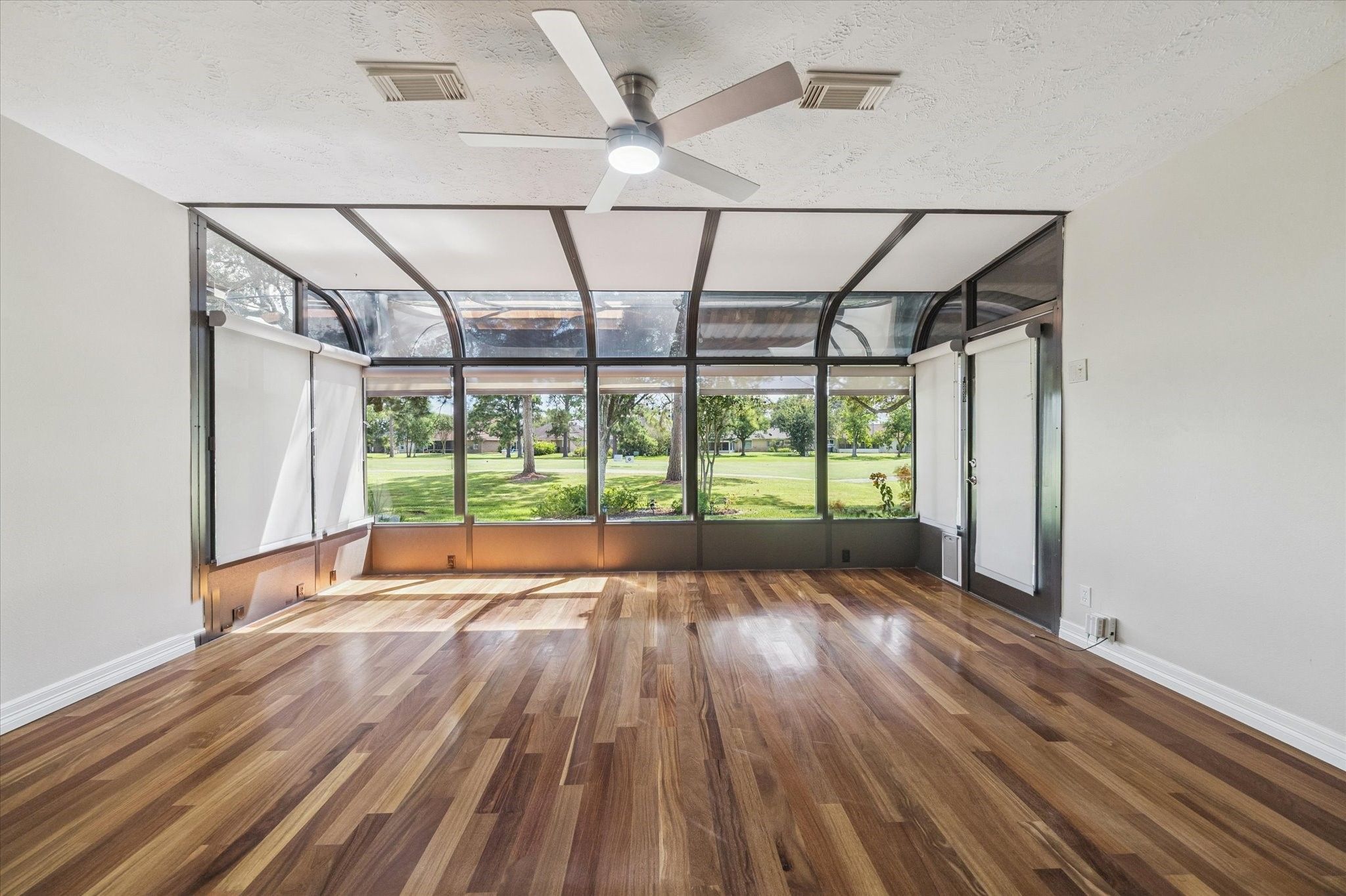 EXQUISITE UPDATED TOWNHOME ON THE GOLF COURSE OFFERS ELEGANCE AND A PRIME LOCATION. All this in an over 55 Community with 24 hour manned security. STEP into an exciting entranceway that immediately presents stunning views of the golf course. LARGE windows frame the landscape creating a seamless connection between the indoors and the scenic outdoors. RICH high-quality Brazillian wood floors throughout, Fabulous kitchen features an abundance of gorgeous cabinetry, state of the art stainless steel appliances, granite countertops, Romantic primary bedrooms boasts views of the golf course creating a private retreat, CHECK OUT the gorgeous totally updated primary bathroom, AC/heat 18 seer high efficiency replaced 1 month ago, Recently replaced Anderson Windows, You will fall in love!ALL THIS PLUS CLUBHOUSE, OYMPIC POOL, EXERCISE STUDIO WOW!!!