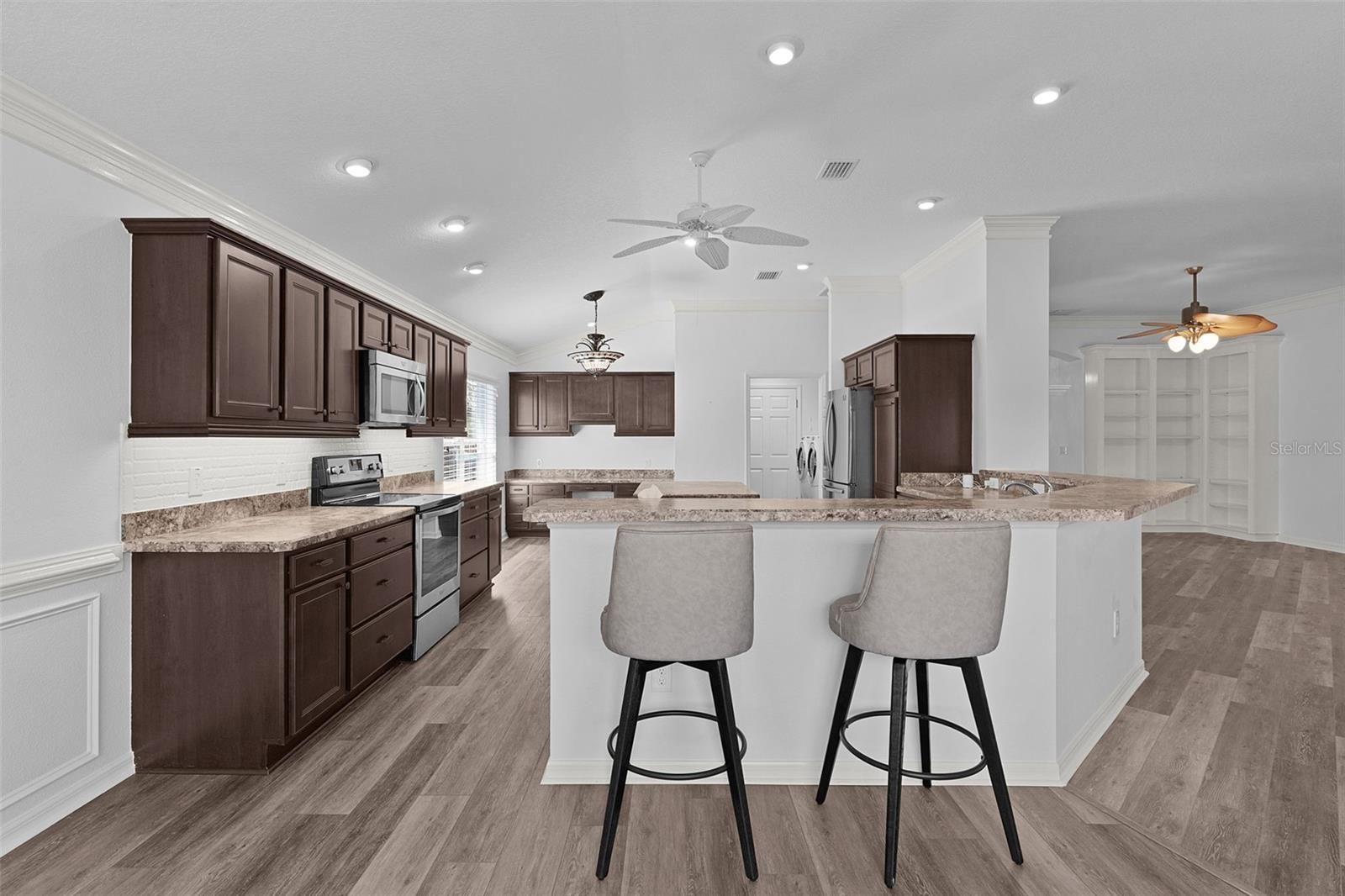 - Ceiling Fan(s), Crown Molding, High Ceilings, Vaulted Ceiling(s)
