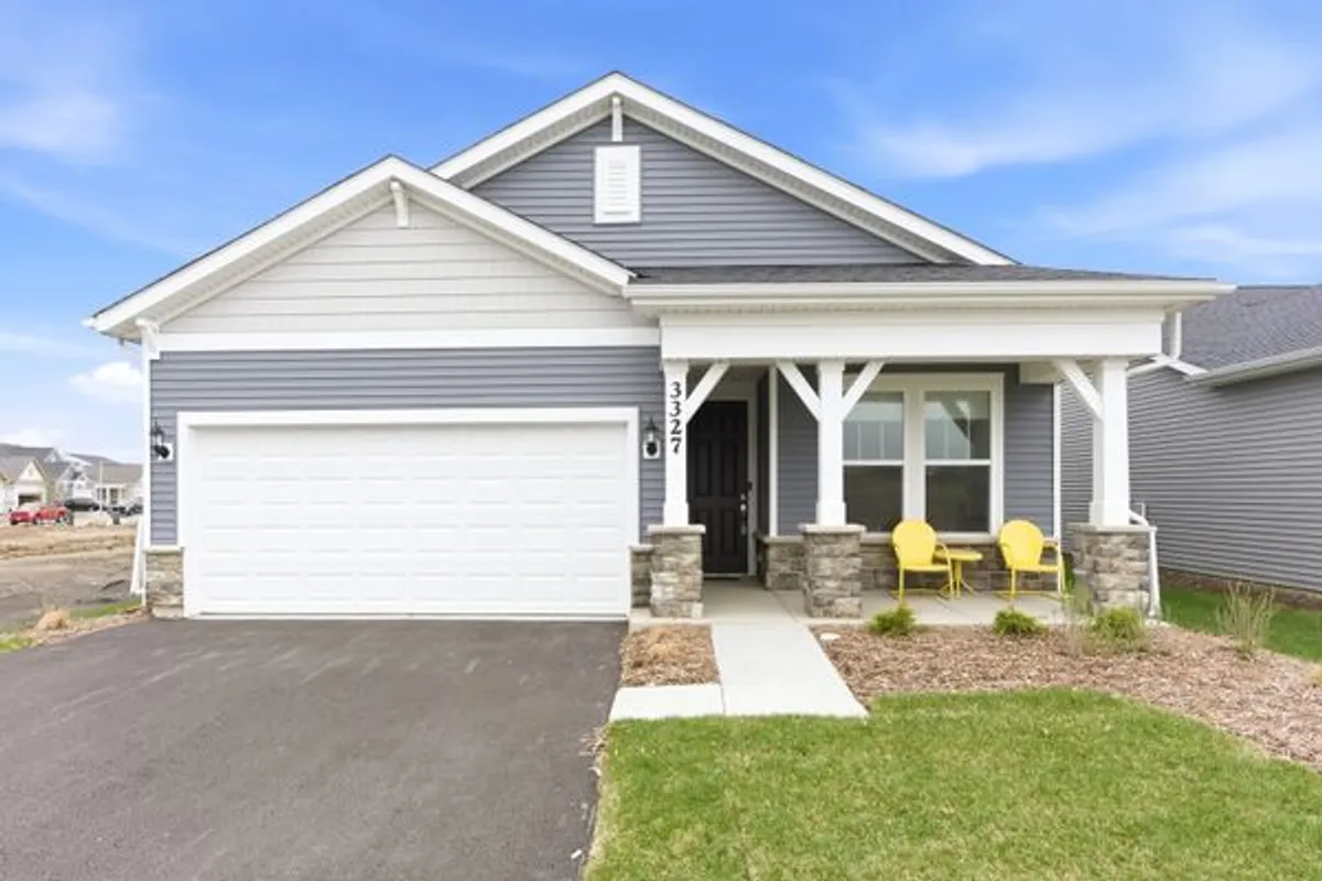 This NEW RESALE Vista floor plan is your opportunity home! Why wait to build and close late in the year, when you can close now on this fantastic home with a charming full front porch? One of the most popular designs in the neighborhood, and numerous upgrades make this the one to own. Western exposure across the backyard, plus premium lot located on the greenbelt and path, with no neighbor directly behind. Upgraded elevation; extensive luxury vinyl plank flooring throughout; upgraded owners' suite bath with tiled shower surround. Whole house humidifier. Upgraded cabinets in a soft gray stain in kitchen, and pecan finish in bathrooms. Upgraded Whirlpool kitchen appliances with LG refrigerator. Upgraded quartz countertops in both bathrooms and kitchen. Pendant lighting over huge breakfast bar island. Door hardware and light fixture upgrade, too. Builder installed passive radon mitigation system. Quiet low traffic street, and location close to ponds, paths, clubhouse, pickleball and tennis courts, bocce ball, pools and clubhouse patios. Very active HOA with numerous clubs and interest groups and endless social events for living your best life! Builder's one year warranty to October. (Note that although this home is within school district boundaries, it is exempt from the district, and no occupants are eligible for school district services. Most furniture available for purchase at additional cost.)