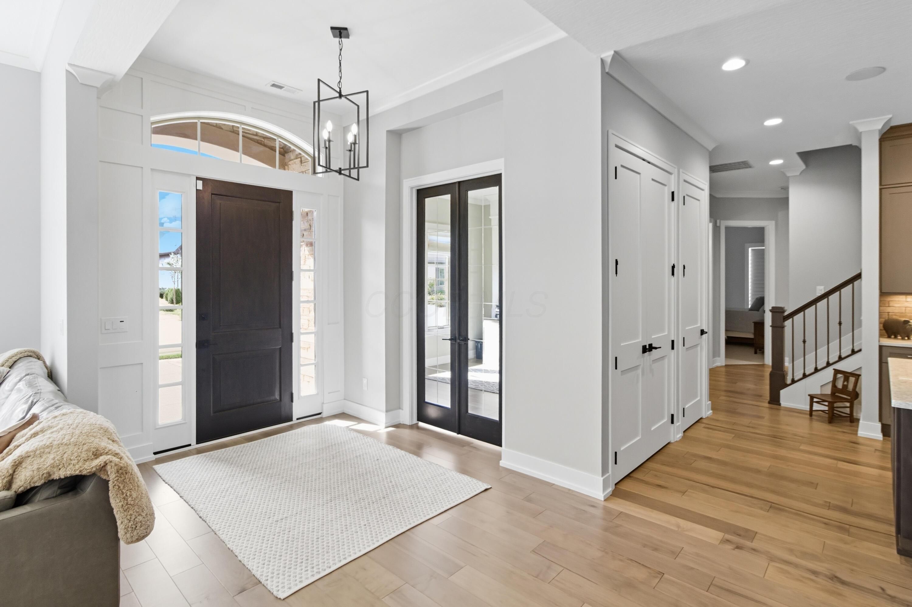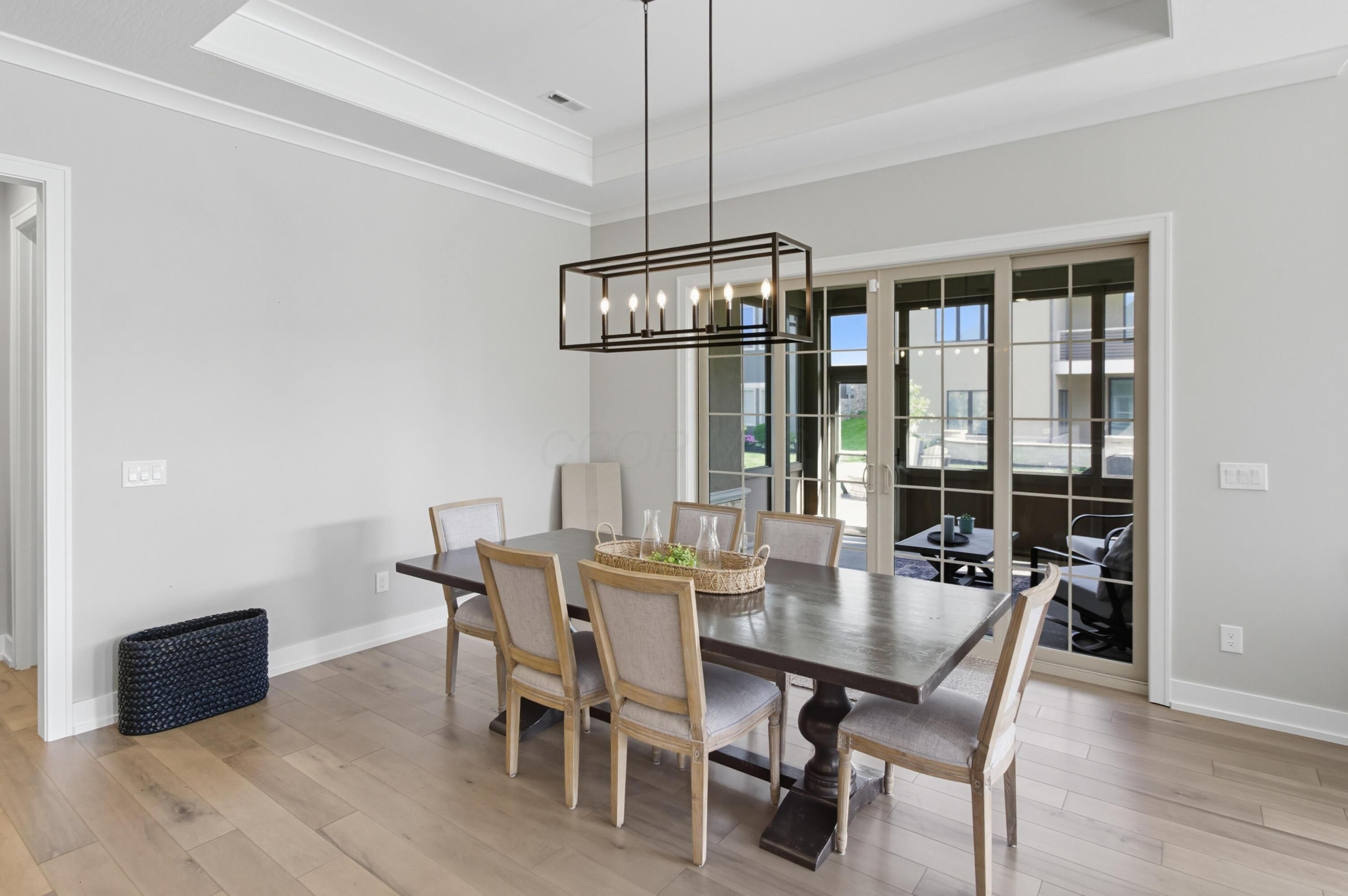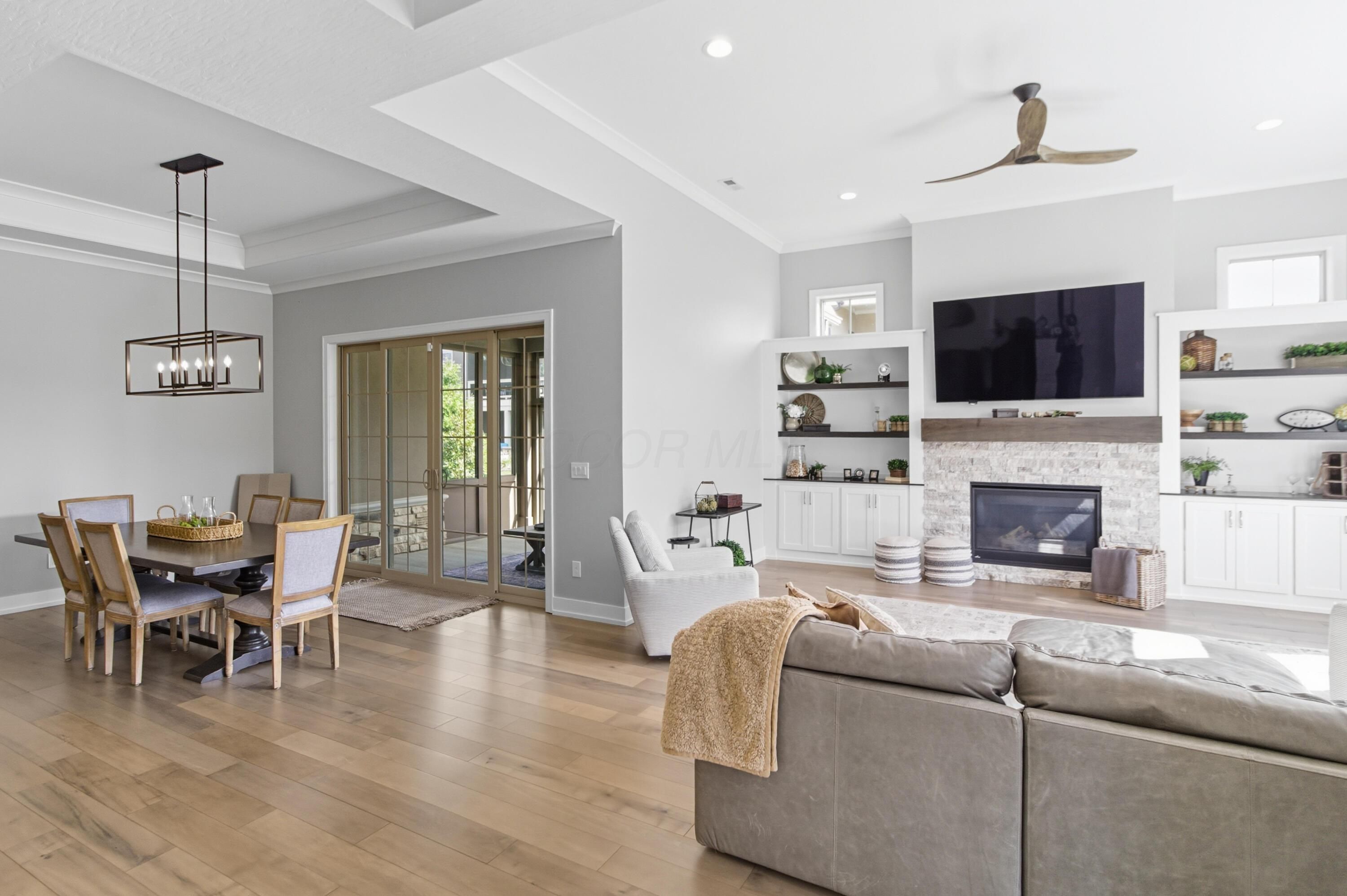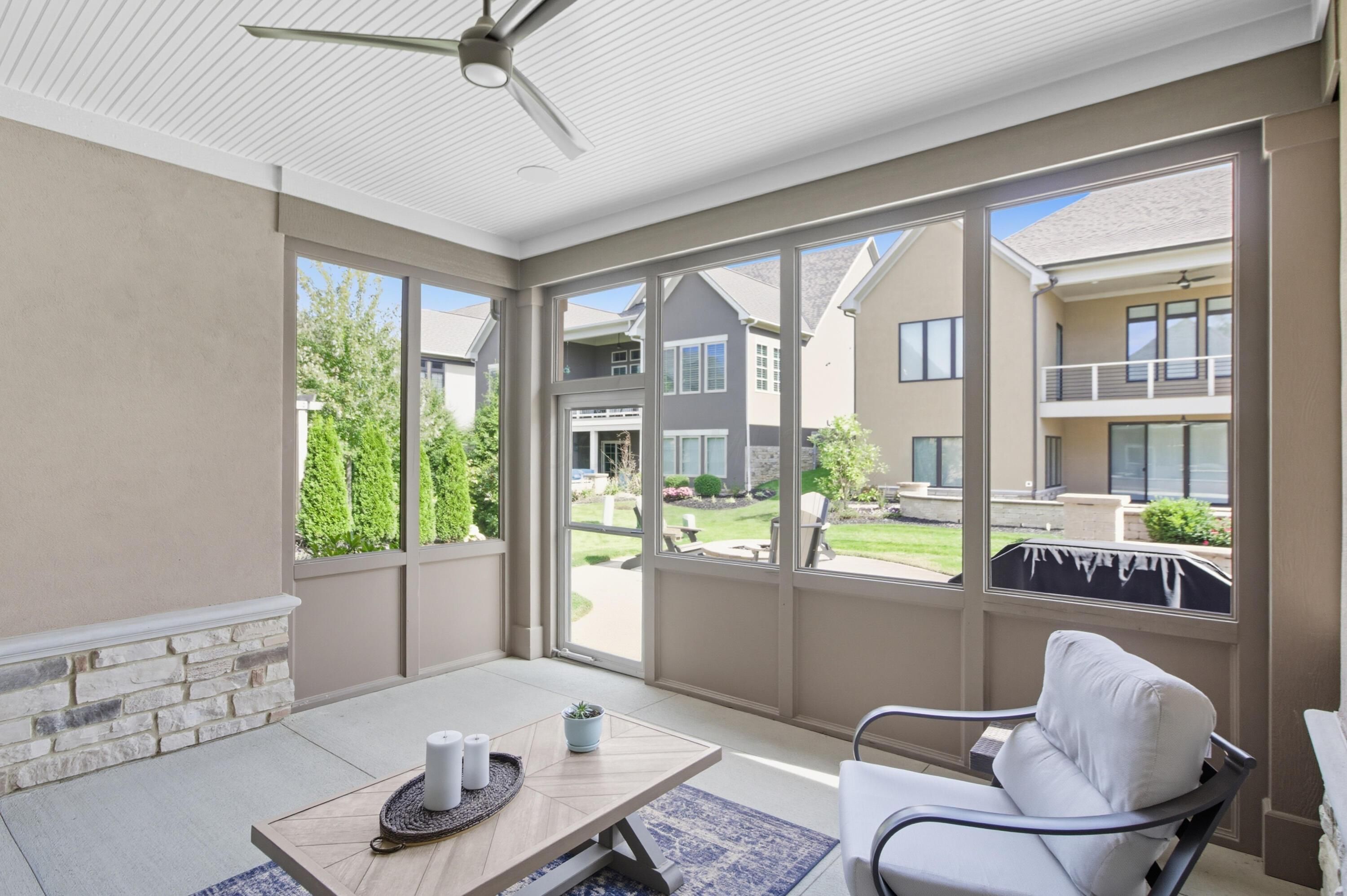 Custom Built Romanelli and Hughes Ravello Patio Home Near Bridge Park With Bright Open Living. Here is a luxury patio home near Bridge Park with low maintenance living and modern style? This Romanelli and Hughes Ravello home offers bright open spaces, tall ceilings, and high quality finishes in a prime Dublin location. The main level has 10 foot ceilings, hardwood floors, and a great room with a 12 foot coffered ceiling, custom built ins, and a gas fireplace. The kitchen features quartz counters, a large island, gas stove, farmhouse sink, and a walk in pantry. A private office and a guest suite with a full bath sit nearby. The owner suite has a tray ceiling, spa style bath, dual sinks, an oversized shower, and a huge walk in closet. Step outside to a screened in 3 season room and professionally designed paver patio complete with fire pit surrounded by beautiful landscaping and an irrigation system to keep everything looking green all summer long. This highly desired patio home delivers custom quality, style, and convenience without the wait to call your agent to come take a look today!