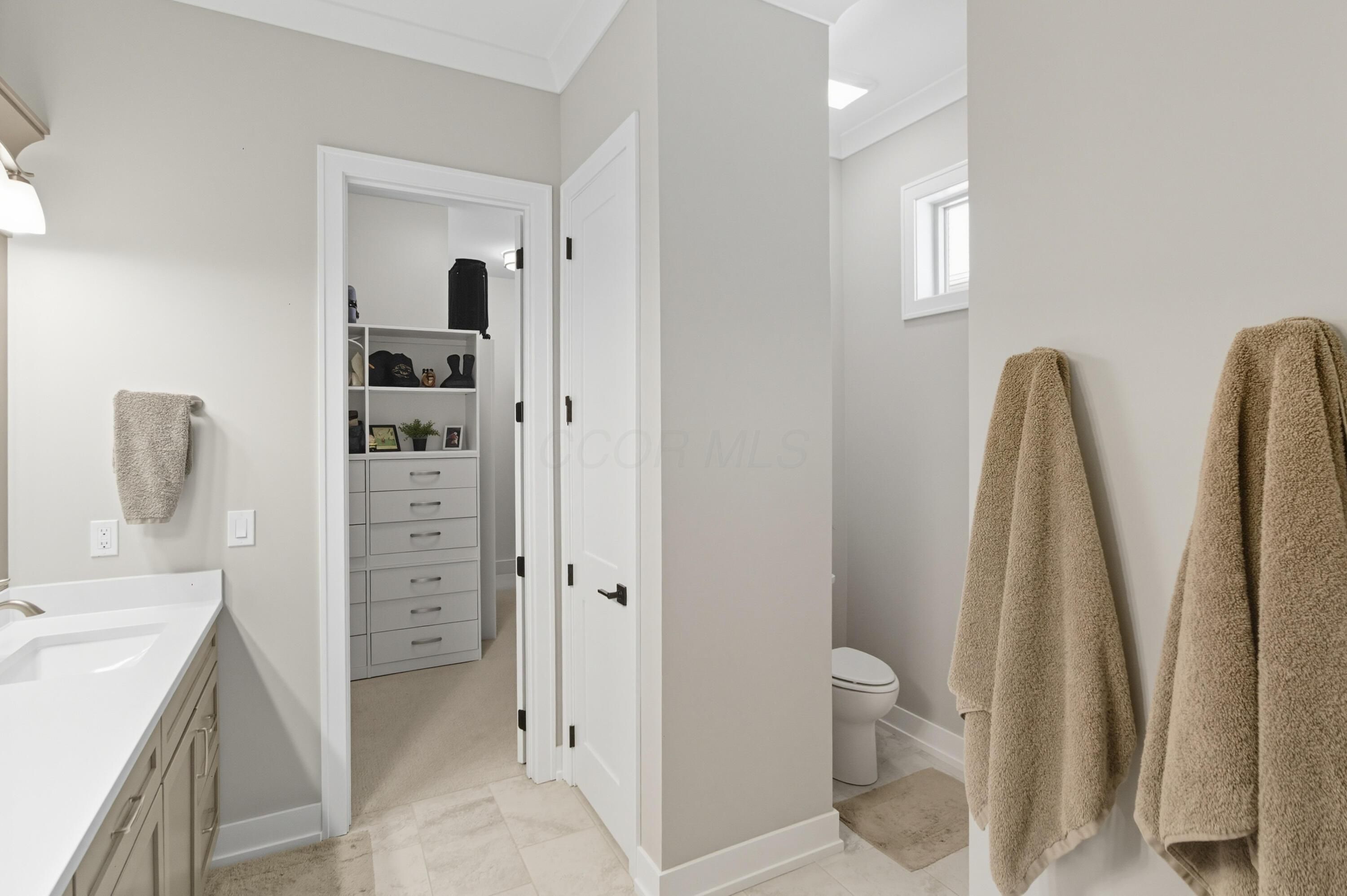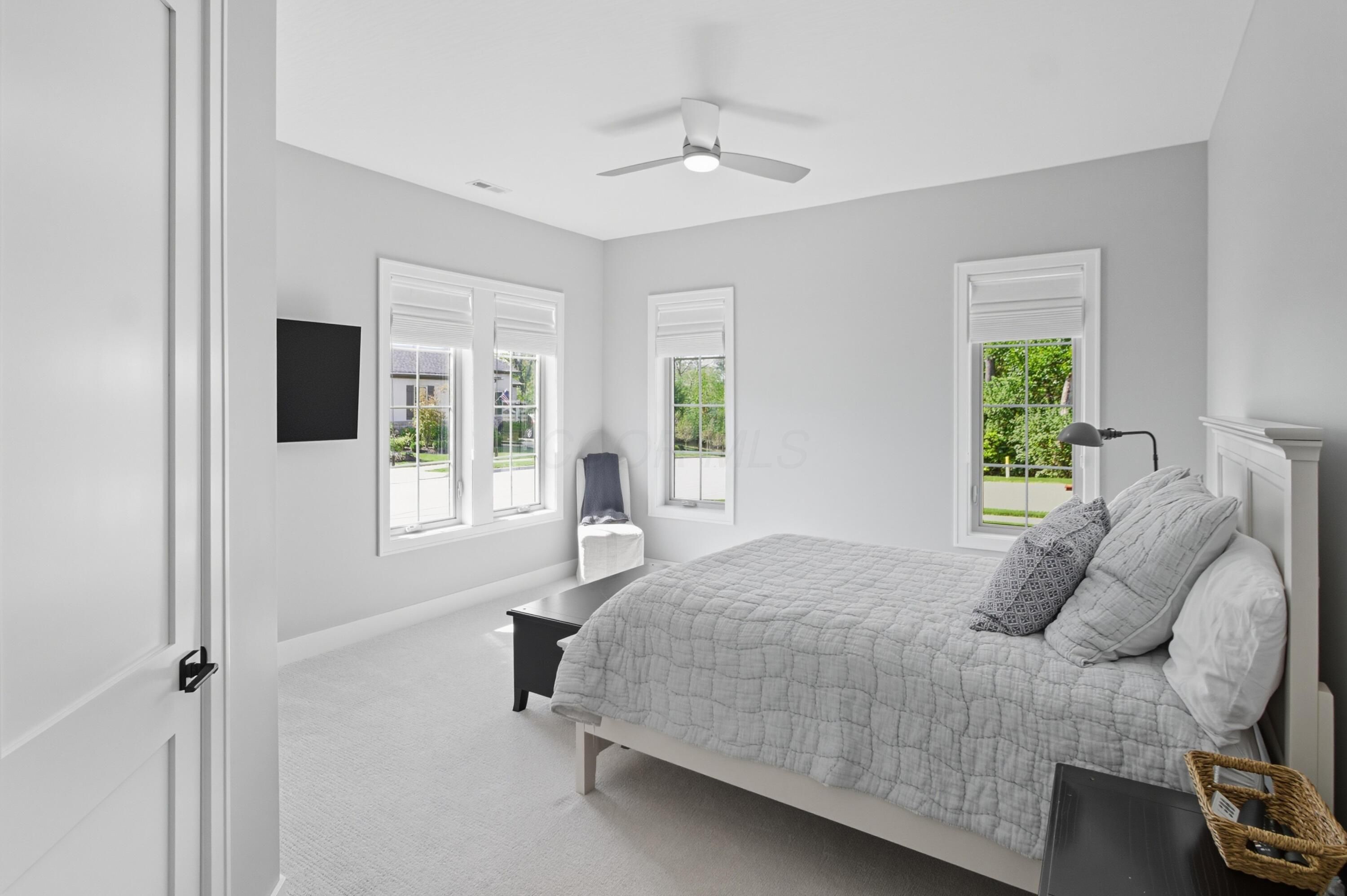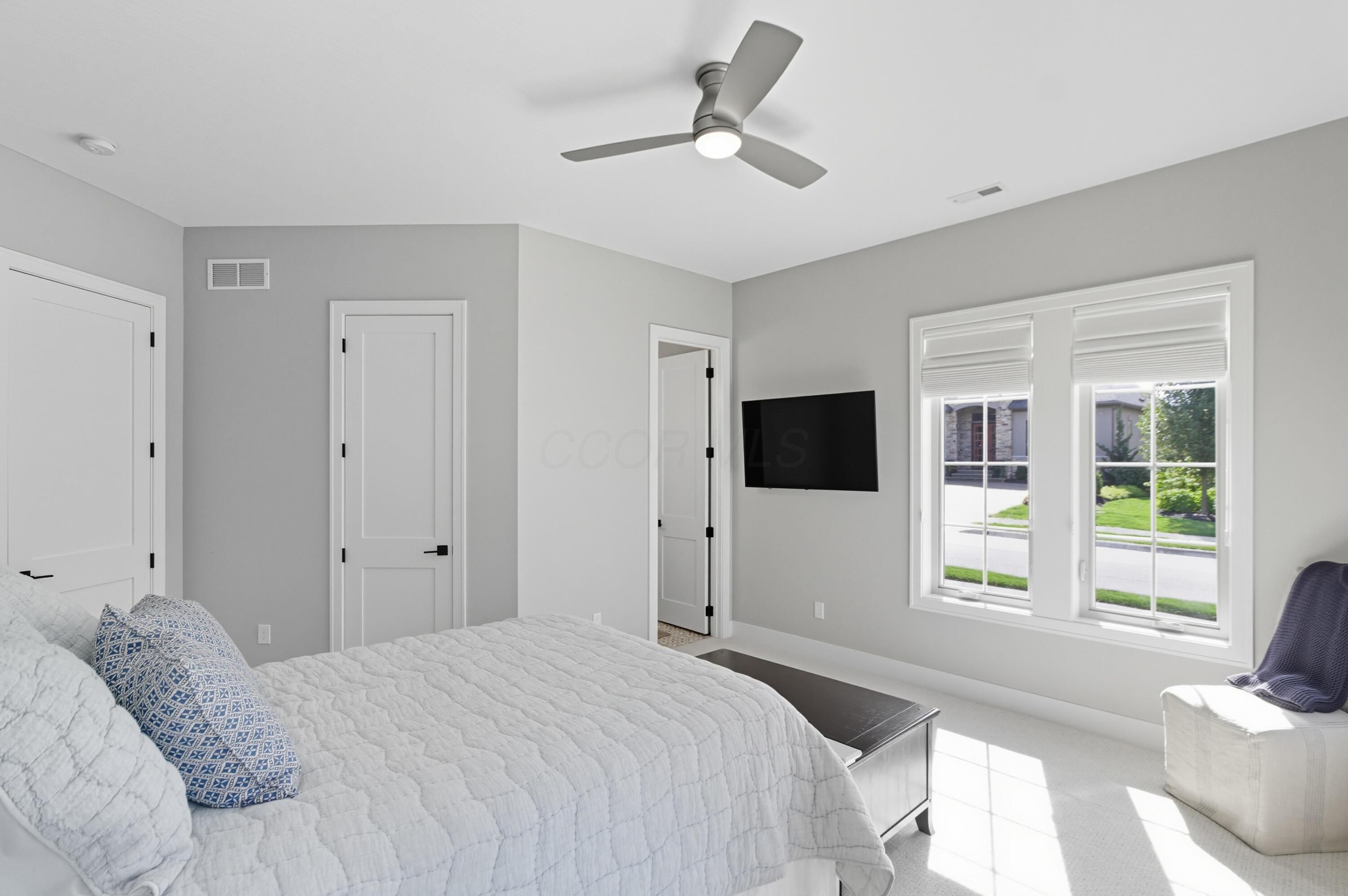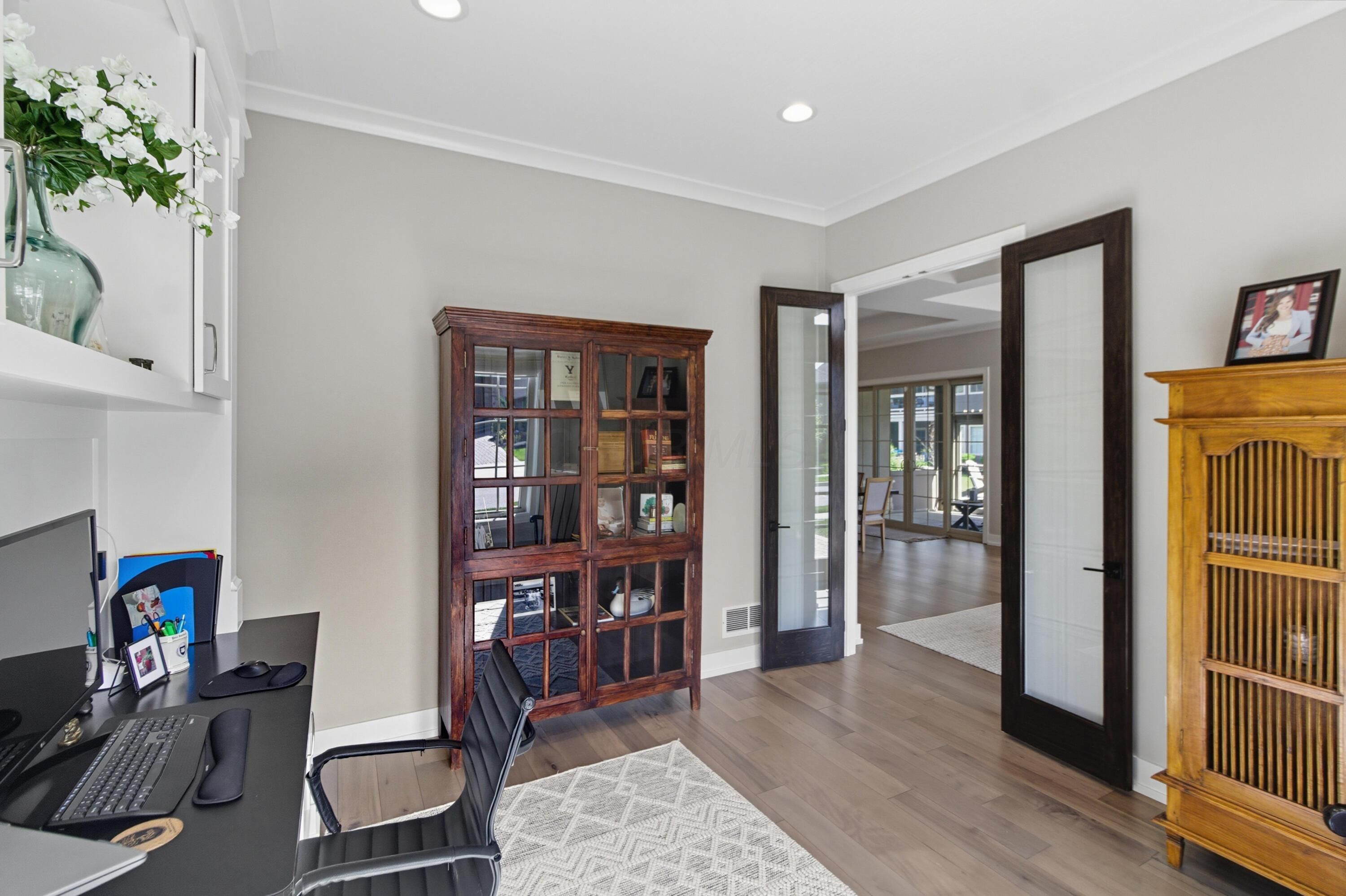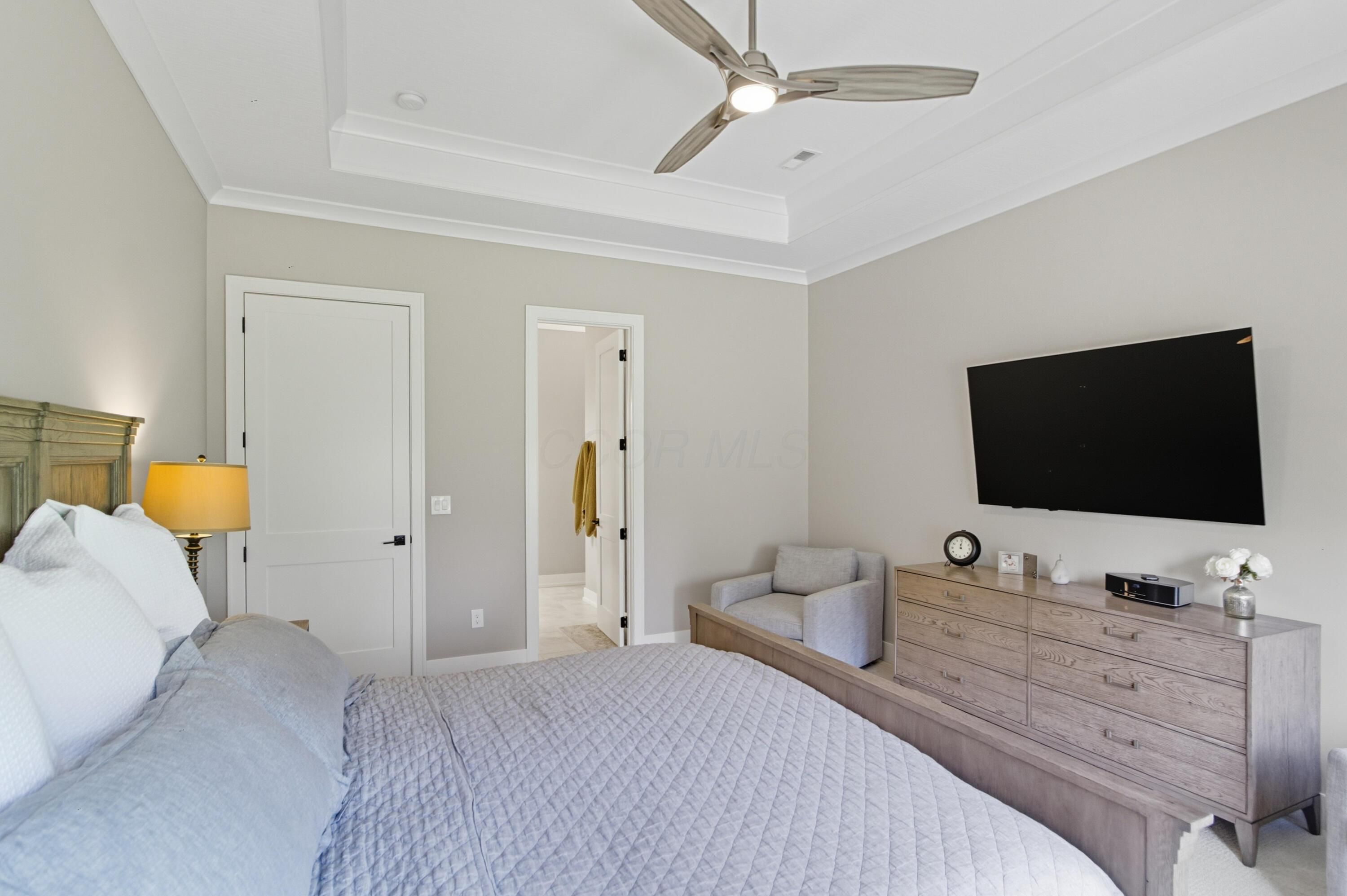 Custom Built Romanelli and Hughes Ravello Patio Home Near Bridge Park With Bright Open Living. Here is a luxury patio home near Bridge Park with low maintenance living and modern style? This Romanelli and Hughes Ravello home offers bright open spaces, tall ceilings, and high quality finishes in a prime Dublin location. The main level has 10 foot ceilings, hardwood floors, and a great room with a 12 foot coffered ceiling, custom built ins, and a gas fireplace. The kitchen features quartz counters, a large island, gas stove, farmhouse sink, and a walk in pantry. A private office and a guest suite with a full bath sit nearby. The owner suite has a tray ceiling, spa style bath, dual sinks, an oversized shower, and a huge walk in closet. Step outside to a screened in 3 season room and professionally designed paver patio complete with fire pit surrounded by beautiful landscaping and an irrigation system to keep everything looking green all summer long. This highly desired patio home delivers custom quality, style, and convenience without the wait to call your agent to come take a look today!