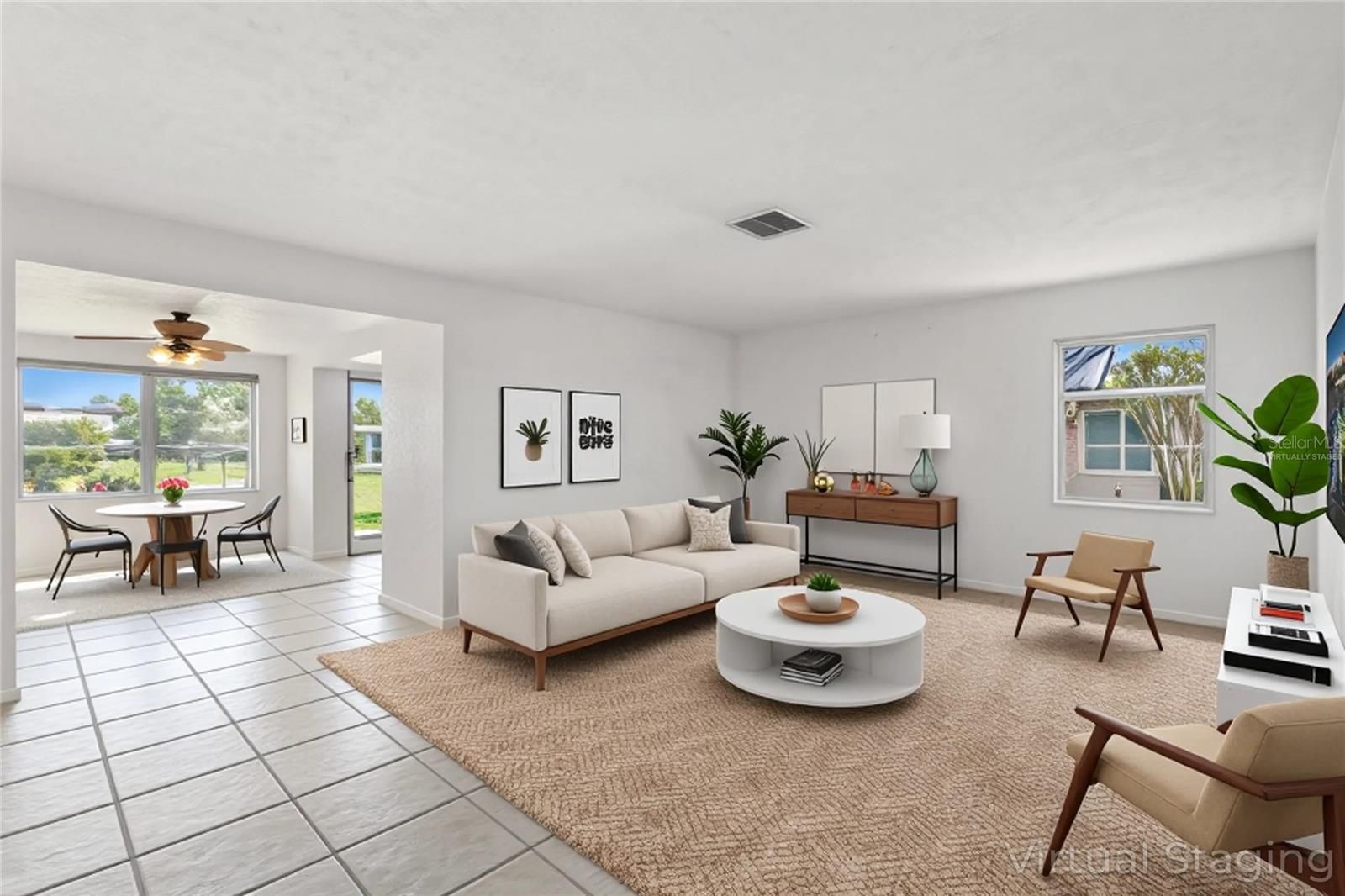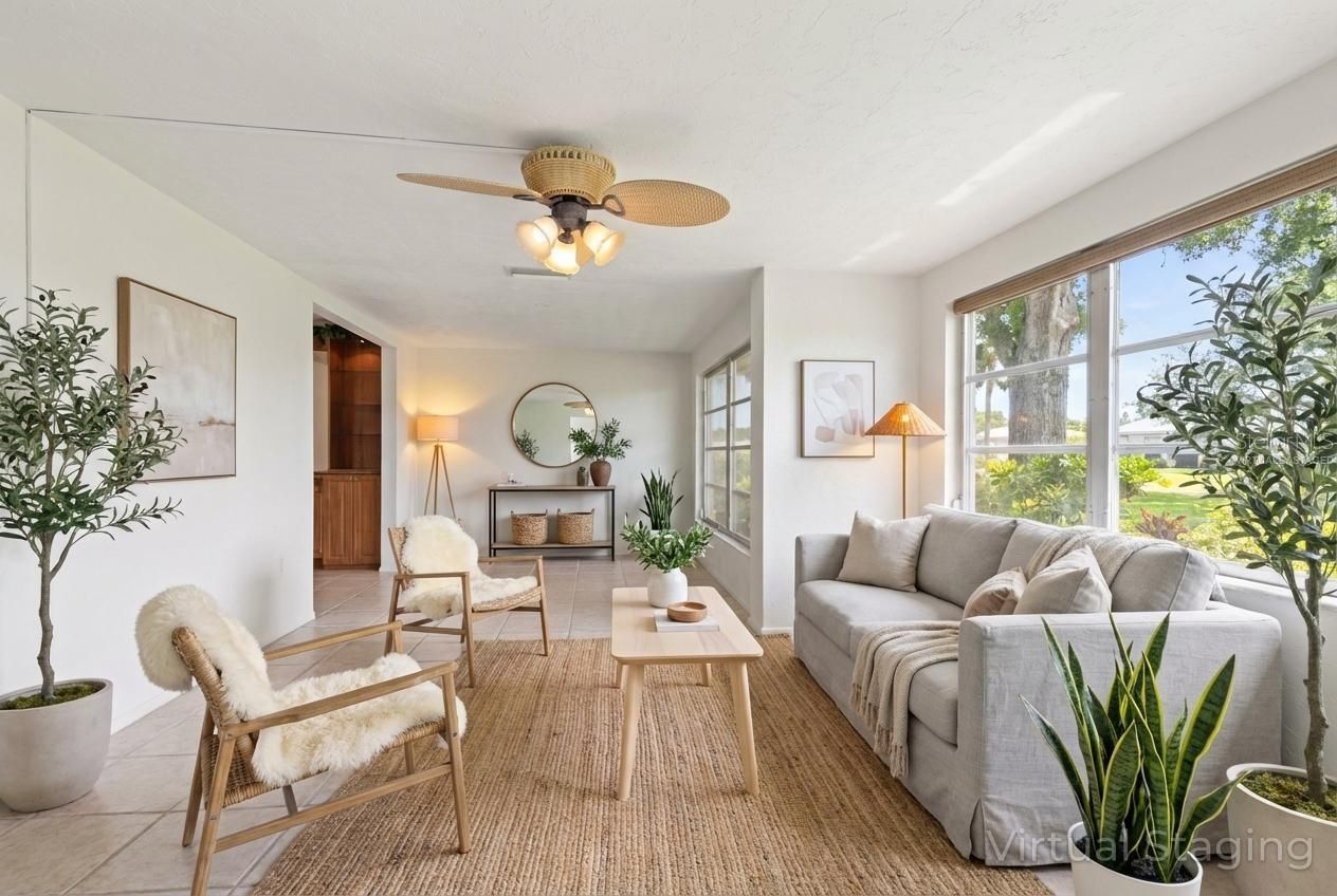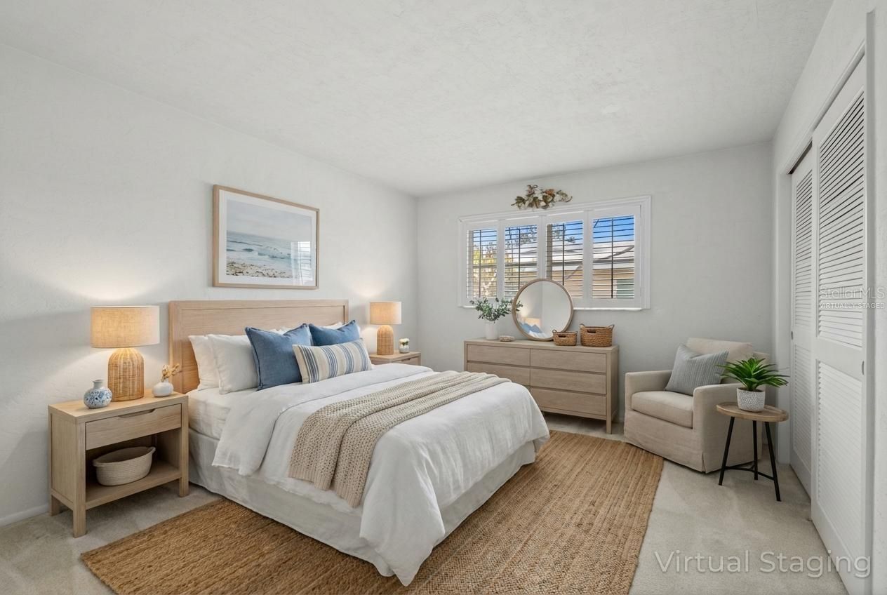 One or more photo(s) has been virtually staged. Discover a meticulously maintained move-in ready 2 bed/2 bath villa in the tranquil 55+ community of Village Green in Sarasota. Tucked away on a private dead-end street, this home provides the comfort and exclusivity of a single-family residence with an expansive layout that includes separate living, dining, and Florida rooms—ideal for both relaxation and entertaining. AC replaced in 2020, new water heater 2025, flat roof over garage replaced Sept. 2025 with transferable warranty and exterior painted Dec. 2025. The well-appointed kitchen is a chef’s delight, featuring generous counter space, abundant cabinetry, deep set pantry, a built-in desk and room for a cozy bistro set. There's also a large indoor utility room complete with a laundry sink and coupled with a walk-in closet outfitted with extensive shelving and additional cabinets, ensuring that every storage need is met. For added convenience, the separate entrance from the garage to the kitchen makes it easy to transfer groceries from the car. Wood plantation shutters adorn the windows in both bedrooms and large windows throughout the home provide plenty of natural light. The screened patio overlooking a lush greenbelt is a perfect haven for your morning coffee or a great spot to unwind at the end of the day to enjoy the warmth of sunset. Maintain an active lifestyle with the quarter-mile loop right outside your back door, designed for getting your steps in along the picturesque Village Green. Just two doors down, the community pool and ramada create a welcoming setting for neighbors to gather and socialize. Experience a maintenance-free Florida lifestyle at an attractive price, with shopping centers, dining, hospitals, and beautiful beaches all within easy reach. Don’t miss your chance to join this vibrant, active community in the heart of Sarasota—schedule your private tour today and experience the charm of Village Green living!