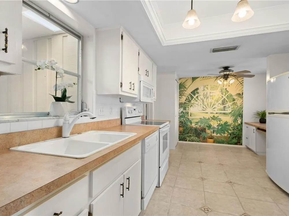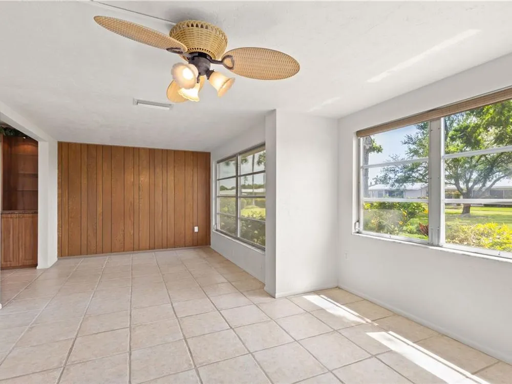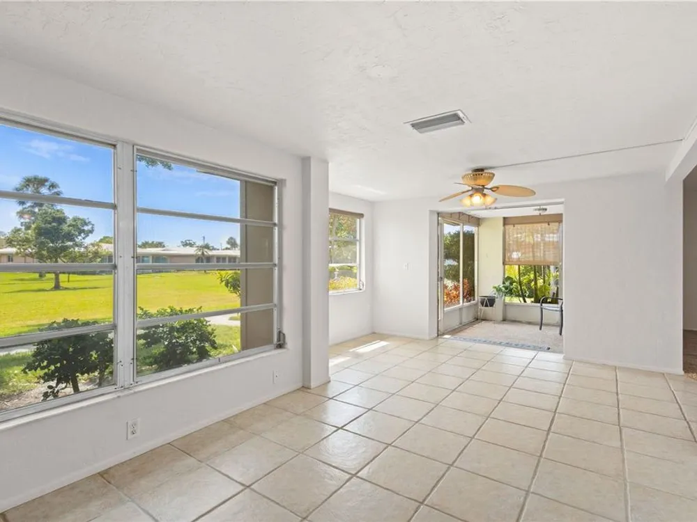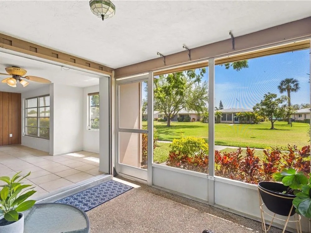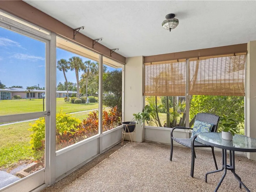PRICED TO SELL! Discover a meticulously maintained move-in ready 2 bed/2 bath villa in the tranquil 55+ community of Village Green in Sarasota. Tucked away on a private dead-end street, this home provides the comfort and exclusivity of a single-family residence with an expansive layout that includes separate living, dining, and Florida rooms—ideal for both relaxation and entertaining. The well-appointed kitchen is a chef’s delight, featuring generous counter space, abundant cabinetry, deep set pantry, a built-in desk and room for a cozy bistro set. There's also a large indoor utility room complete with a laundry sink and coupled with a walk-in closet outfitted with extensive shelving and additional cabinets, ensuring that every storage need is met. For added convenience, the separate entrance from the garage to the kitchen makes it easy to transfer groceries from the car. Wood plantation shutters adorn the windows in both bedrooms and large windows throughout the home provide plenty of natural light. The screened patio overlooking a lush greenbelt is a perfect haven for your morning coffee or a great spot to unwind at the end of the day to enjoy the warmth of sunset. AC replaced in 2020, new water heater 2025, flat roof over garage being replaced in Sept. 2025 with transferable warranty. Maintain an active lifestyle with the quarter-mile loop right outside your back door, designed for getting your steps in along the picturesque Village Green. Just two doors down, the community pool and ramada create a welcoming setting for neighbors to gather and socialize. Exterior painting of all Section 10 units to begin in October. Experience a maintenance-free Florida lifestyle at an attractive price, with shopping centers, dining, hospitals, and beautiful beaches all within easy reach. Don’t miss your chance to join this vibrant, active community in the heart of Sarasota—schedule your private tour today and experience the charm of Village Green living!