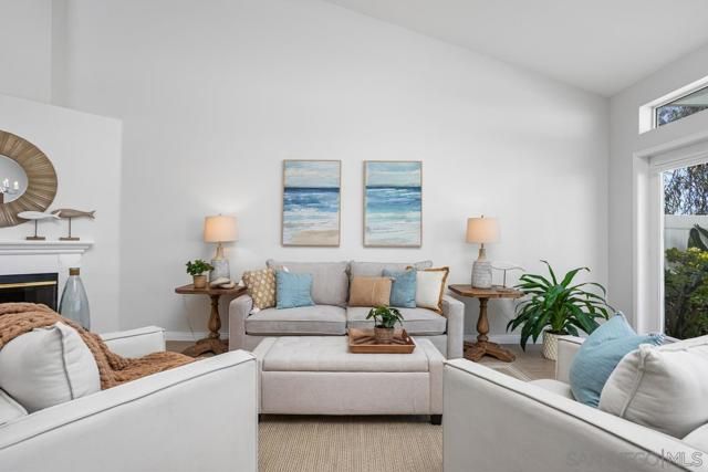 Enjoy relaxed indoor–outdoor living in this light-filled home, where a covered pergola patio, open living spaces, and a thoughtfully designed layout come together for comfortable, easy everyday living. Located in Villa Trieste, a desirable gated 55+ community in Oceanside, this 1,860 sqft single-story townhouse with a versatile loft (optional third bedroom) offers 2 bedrooms, 2 bathrooms, and a bright, open floor plan designed for both comfort and flexibility. Natural light fills the home through soaring ceilings and three sets of French doors—two opening from the family and dining areas and another from the kitchen—creating a seamless connection between indoor and outdoor spaces and inviting in gentle coastal breezes. The kitchen blends function and charm with granite countertops, stainless steel appliances, and a cheerful breakfast nook framed by windows. The spacious primary suite features vaulted ceilings, dual sinks, a large walk-in closet, and a beautifully tiled shower. A comfortable guest bedroom and full bathroom complete the main level, while the loft provides flexible space ideal for a home office, hobby room, or visiting family. Step outside to your private backyard retreat with a pergola-covered patio, lush landscaping, and distant ocean views peeking over the rooftops—an inviting setting for quiet mornings or relaxed gatherings with friends. Additional highlights include central A/C, indoor laundry, and an attached two-car garage. Villa Trieste offers resort-style amenities including a clubhouse, pool, and spa, all just minutes from shopping and dining.