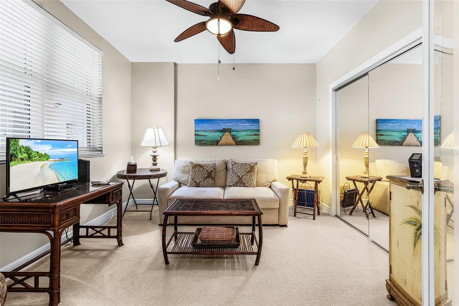 - Ceiling Fan(s), Elevator, High Ceilings, Living/Dining Room, Open Floorplan, Solid Surface Counters, Solid-Wood Cabinets, Split Bedrooms, Walk-In Closet(s), Window Treatments