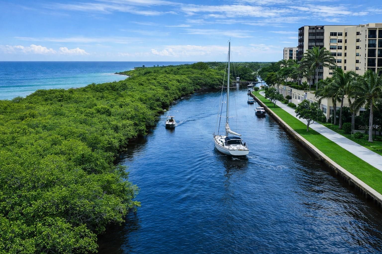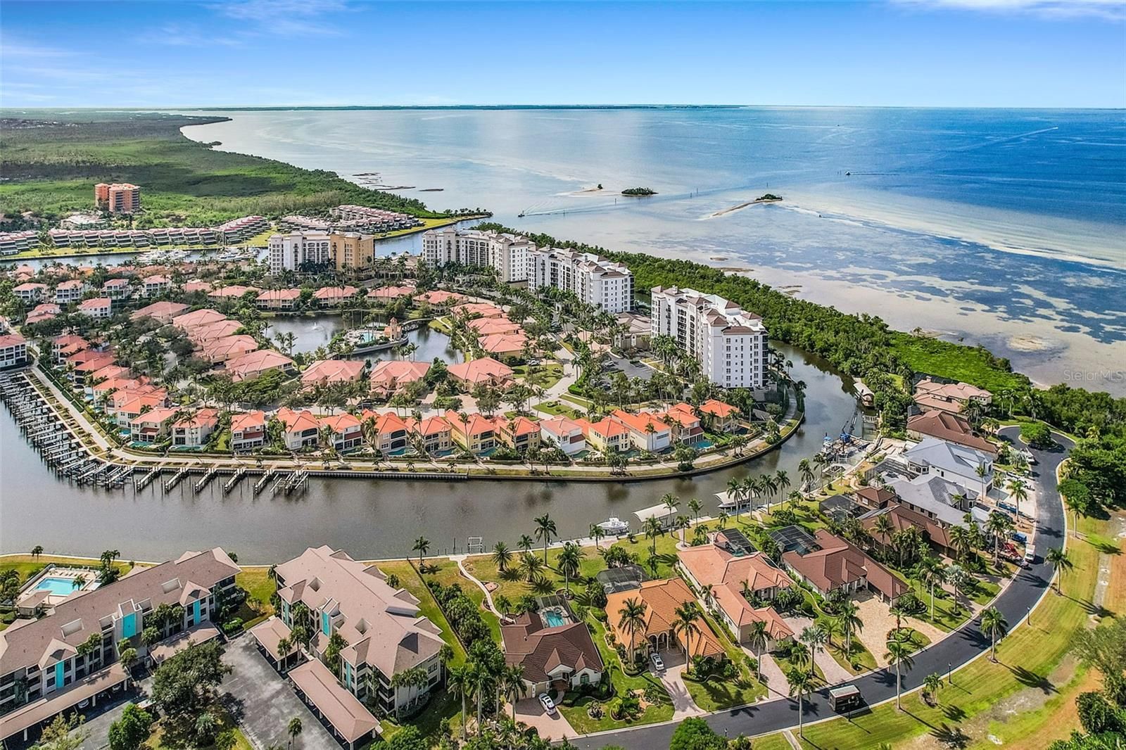 Welcome to Grande Isle Towers at Burnt Store Marina—where luxurious coastal living meets breathtaking harbor views, vibrant sunsets, and the allure of an exclusive waterfront lifestyle. This beautifully maintained third-level residence offers sweeping views across Charlotte Harbor and the tranquil channel, creating a front-row seat to unforgettable sunsets and passing sailboats. A tray-ceiling foyer introduces the expansive great room, where 9’4” ceilings and floor-to-ceiling glass sliders fill the space with natural light and open to a 20' × 9' screened lanai—the perfect setting for alfresco dining or sunset cocktails. The kitchen blends style and function with warm wood cabinetry, granite countertops, and a casual breakfast bar ideal for entertaining. A wet bar with refrigerator adds a touch of elegance, serving equally well as a morning coffee or evening cocktail center. The primary suite opens directly to the lanai—perfect for savoring the coastal breeze at sunrise. Its spa-inspired bath features a soaking tub, glass shower, dual vanities, plus walk-in and linen closets for abundant storage. Two additional bedrooms offer flexible space for guests or a home office, with a glass door entry into the third bedroom adding architectural charm and versatility. Residents of Grande Isle enjoy a collection of private amenities designed for relaxation and connection, including a resort-style pool and spa, elegant club room with catering kitchen, intimate theater, and a 24-hour fitness center with sauna and steam. Outdoor grilling areas, covered parking, and climate-controlled storage add to the ease of life within this secure, gated enclave. Beyond the gates of Prosperity Pointe, Burnt Store Marina & Country Club offers world-class amenities such as a 27-hole executive golf course, tennis and pickleball courts, a state-of-the-art fitness center, and Freedom Boat Club access. Savor waterfront dining at Cass Cay, or unwind on the Ship’s Store deck, where gentle harbor breezes and playful dolphins and manatees bring the waterfront to life. Discover the Grande Isle lifestyle—where every day feels like a waterfront retreat.