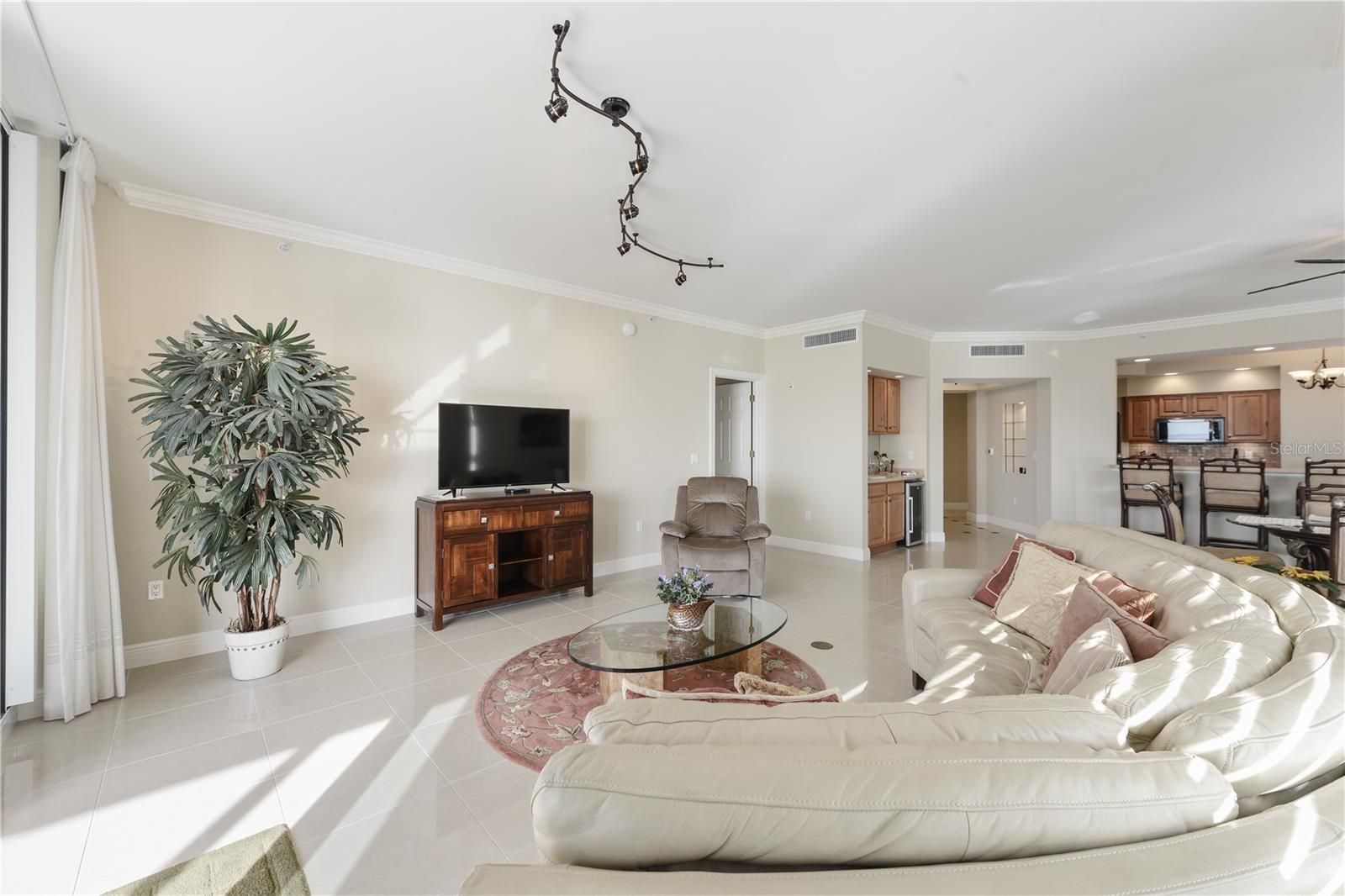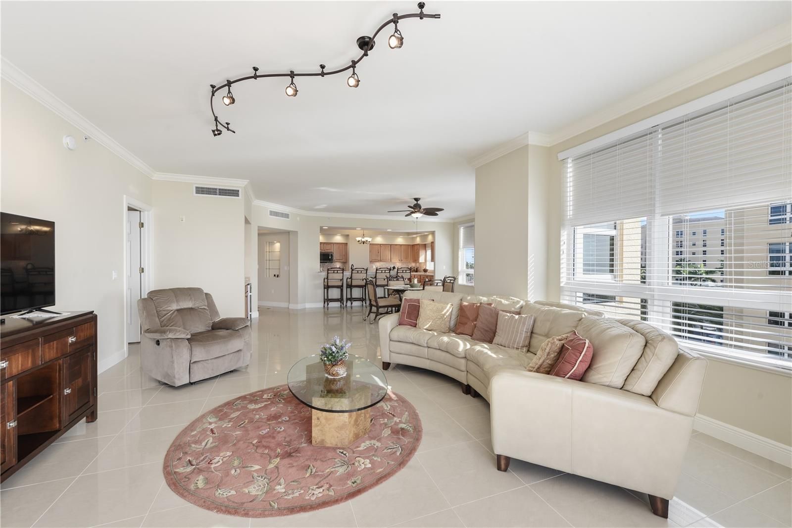 TREMENDOUS VALUE AT NEW PRICE! Enjoy endless views of Charlotte Harbor and SPECTACULAR sunsets from this 5th level end unit in building 3! It's TURNKEY FURNISHED AND MOVE-IN READY! You'll spend hours on the large lanai watching boats on the Harbor and on the Marina channel below and enjoy the most amazing sunsets in the evening! Beautiful from the moment you walk in, this light and bright condo lives like a single family home and features the best of Grande Isles living with a large inviting floorplan, room for you and your guests and plenty of windows to bring in the light and views from almost every side. The porcelain tile floors glimmer in the mirrored entry and throughout the home and the attractive neutral color palette and crown molding create a crisp clean look. These end units have a split floorplan of 3 full bedrooms plus a 4th office/den/bedroom and 3 full bathrooms. Both the owner’s bedroom and one guest bedroom feature ensuite baths. A central kitchen with newer black stainless appliances and engineered wood flooring features loads of prep space on surrounding counters making entertaining a breeze! With an expansive and open counter facing the water even the chef can enjoy the stunning views of the water beyond. A separate wet bar with new wine cooler is ready for parties. New French doors add privacy to the office making it an optional 4th sleeping area when family comes. Updates were incorporated throughout this gracious residence including newer carpet in bedrooms and den, remodeled owner’s bath with frameless shower doors, 2nd showerhead, TV mount, and new lighting and fixtures. New ceiling fans in each room, lights, 2 new AC systems that are MANAGED AND REPLACED BY THE ASSOCIATION, new water heater, extra roll-down blinds in living room and owner’s bedroom, plantation shutters, custom closet shelving in all bedroom closets - all add to the appeal of this gorgeous home. Both Direct TV and Internet are included along with a secure parking spot and air-conditioned storage closet in an amenity-rich clubhouse. A spacious Grand Salon, huge heated pool and spa, well-equipped fitness room, steam room, dry sauna and private home theater are yours to enjoy. All within the largest private Marina on the west coast with 27 holes of golf, tennis, pickleball, a yacht club and 3 restaurants onsite! Make this your permanent or second home and start living in the carefree luxury of Grande Isles! Be sure to see the Aerial video and 3D Virtual Tour! To learn more about the Marina community check out BSM22.org. Ask Agent for details about ATTRACTIVE SELLER FINANCING TERMS!