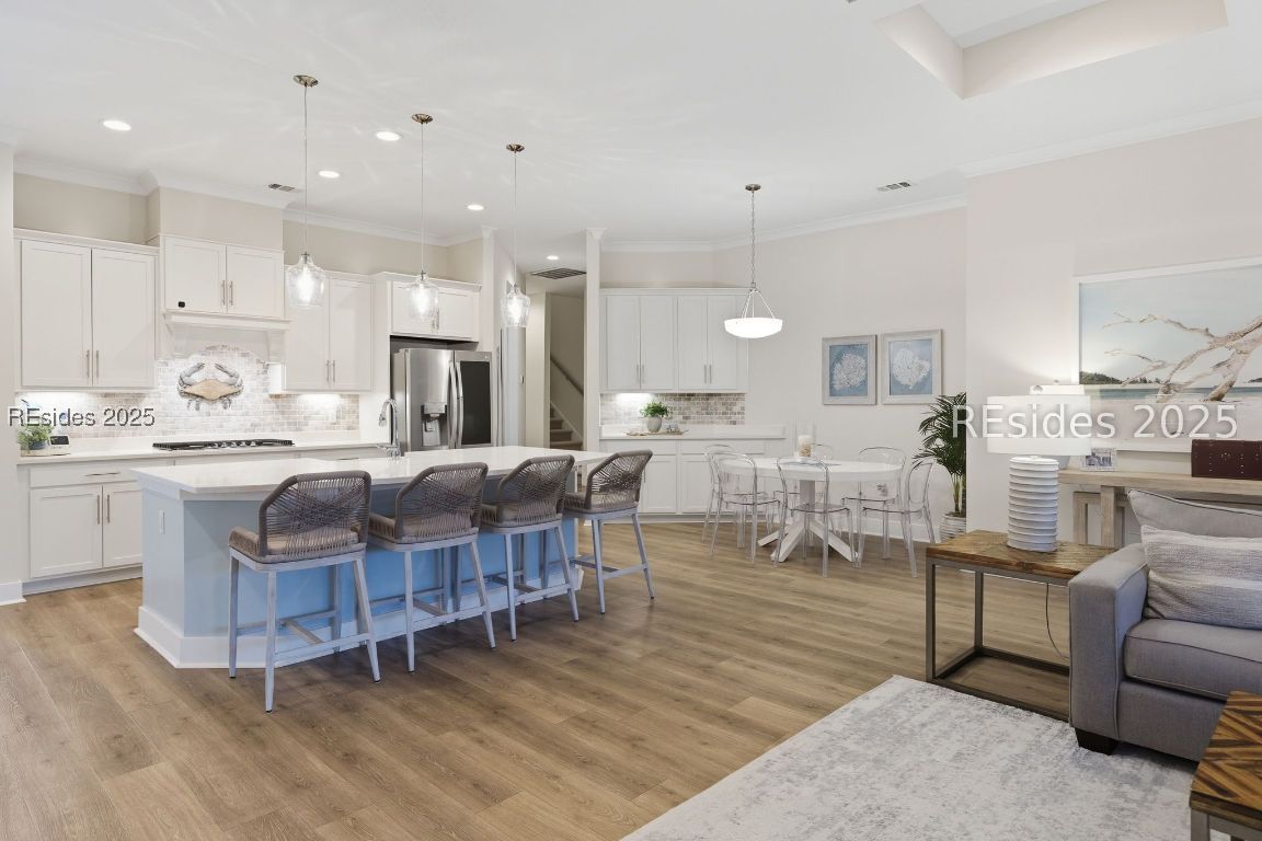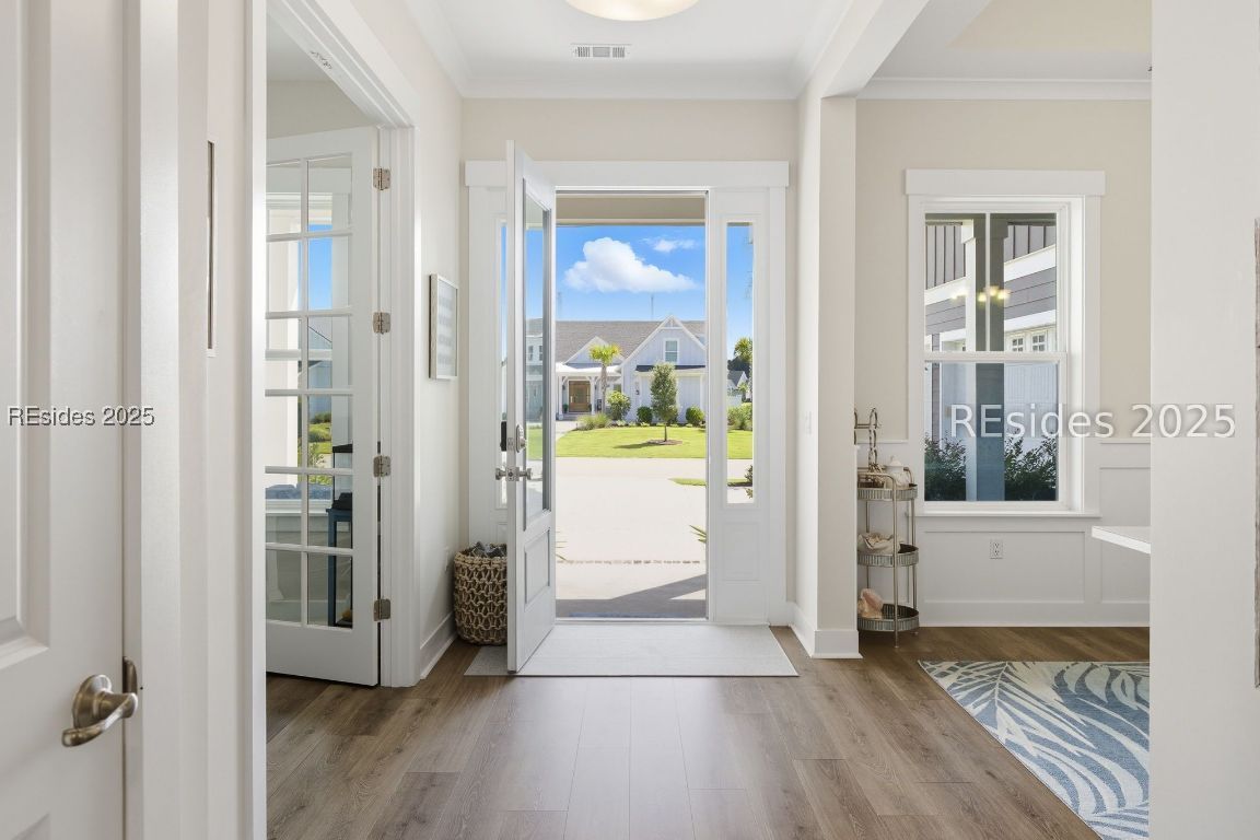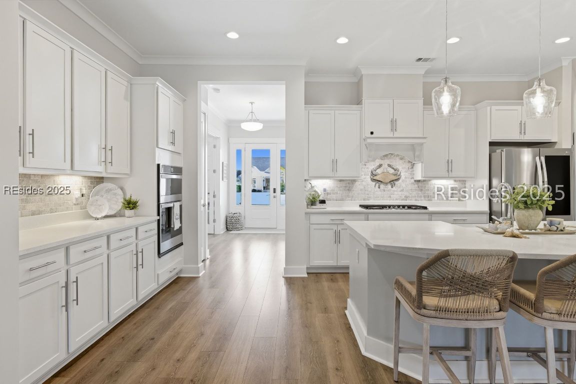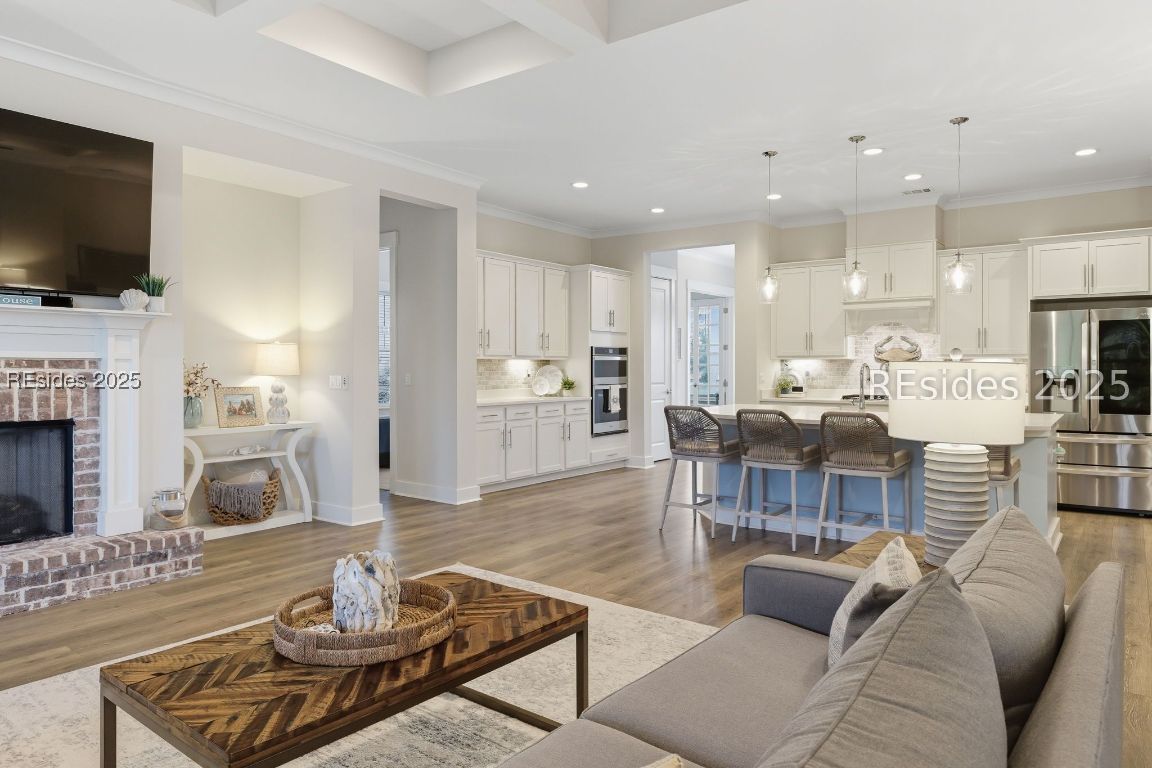 Discover this exceptional, like-new 5-bedroom, 4-bathroom, 3,406 sq. ft. home in the prestigious, award-winning Hampton Lake community where luxury design, serene privacy, and resort-style living blend seamlessly. From the moment you arrive, the homes large front patio and timeless curb appeal set the tone. Step inside to an open, light-filled layout framed by tray ceilings, coffered ceilings, custom millwork, and designer lighting. The main living area features luxury vinyl plank flooring and walls of windows framing protected water-to-wooded views that promise privacy and tranquility. At the heart of the home, the upgraded gourmet kitchen is a chefs dream boasting quartz countertops, custom cabinetry, stainless steel appliances, a gas cooktop, and a large island perfect for entertaining. The owners suite is a true retreat with a spa-inspired bath featuring a soaking tub, oversized tile shower, and dual vanities. Upstairs, a generous oversized bonus room and additional bedrooms offer flexible space for guests, a home office, or recreation. Every inch of this home is loaded with upgrades from wainscoting and crown molding to enhanced storage and smart-home features and includes a full 3-car garage. Outdoor living is unmatched. A huge, private screened lanai overlooks the water-to-wooded setting, creating the perfect backdrop for morning coffee, evening cocktails, or year-round entertaining. Living in Hampton Lake means enjoying world-class amenities: a stunning lake with boating and fishing, multiple resort-style pools, a fitness center, tennis and pickleball courts, a full-service spa, walking trails, and the lakeside Backwater Bills restaurant all just steps from your door. 333 Flatwater Drive isn't just a home its a Lowcountry lifestyle defined by luxury, privacy, and community.