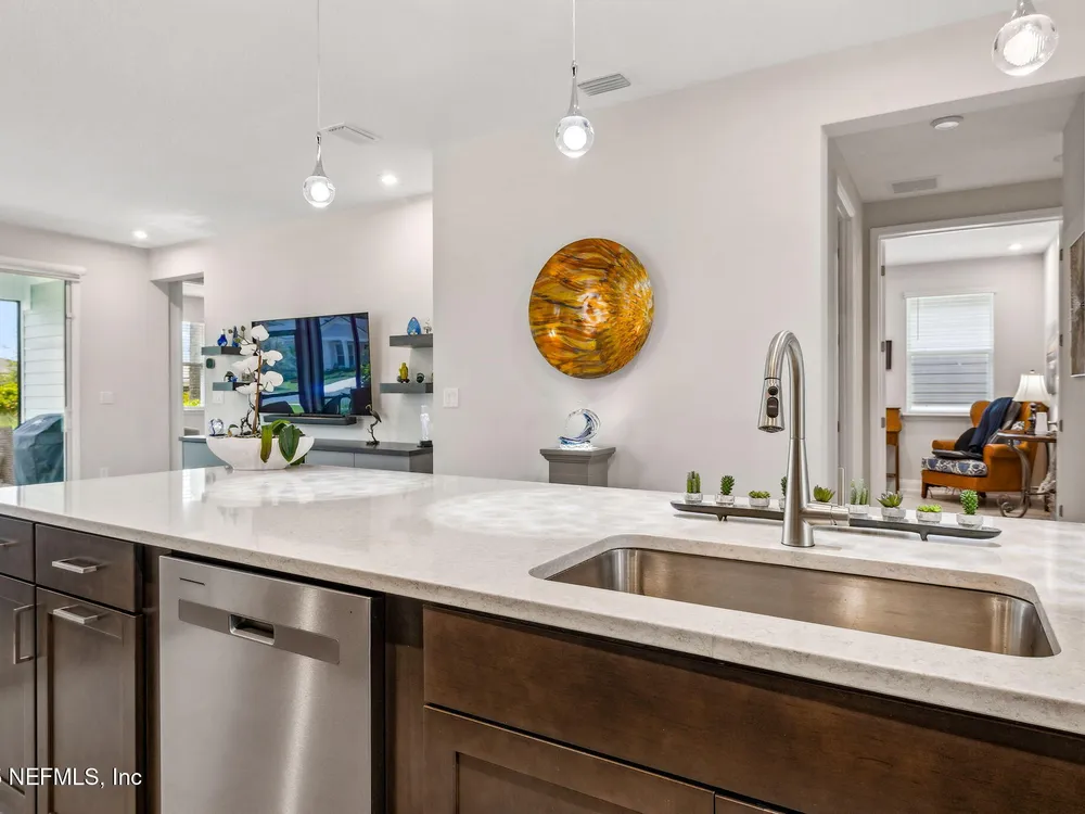 Beautiful 2-year-old Craftsman home in the sought-after Watersong 55+ community. This light-filled, open-concept home features a chef's kitchen with quartz countertops, 42'' cabinets, tile backsplash, gas cooktop, 14' island, large pantry and spacious dining area. The large family room has a 4-panel sliding door leads out to a screened-in back porch with pavers, ceiling fan, and gas grill hookup. The spacious primary suite has a large walk-in closet and a luxurious ensuite with dual vanities, quartz countertop, oversized shower with niche, bench and window. French doors open to a private office. Additional highlights include oversized 2-car garage plus golf cart bay, 9' ceilings, 8' doors, tile throughout main areas, spacious carpeted guest room with a spacious closet, laundry room with cabinets and folding station, and well-appointed hall bath. Enjoy stylish, low-maintenance living with nice upgrades in one of the area's most desirable active adult communities with amazing amenities