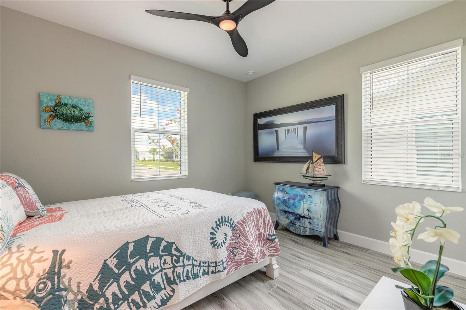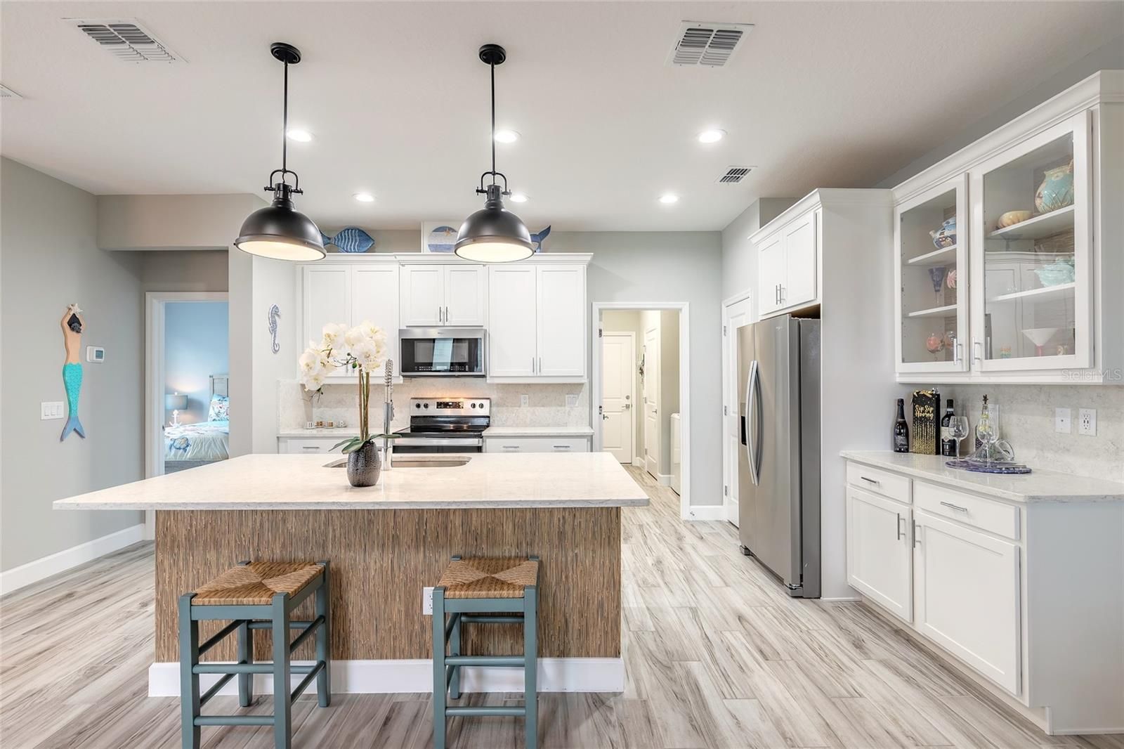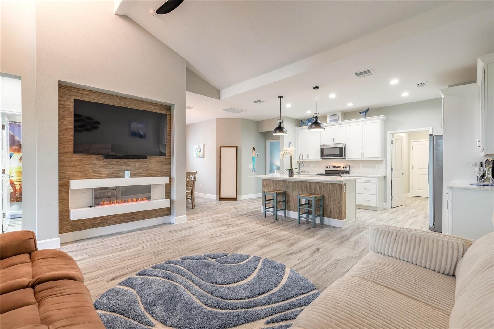 Huge price improvement! Don't miss this almost new Camellia model with tasteful upgrades throughout the home. Discover effortless living in this beautiful 2-bedroom, 2-bathroom cottage, ideally located in a vibrant and golf cart-friendly 55+ community. Packed with upgrades and thoughtful touches—including a cozy electric fireplace—this home offers both comfort and style in a low-maintenance setting. Step inside to a bright, open layout featuring plank tile flooring, quartz countertops, stainless steel appliances, and tasteful finishes throughout. The spacious living area is anchored by a stylish electric fireplace, perfect for adding warmth and ambiance year-round. The primary suite features a large walk-in closet and a private en-suite bathroom with dual vanities and a walk-in shower with tile from floor to ceiling. A second bedroom and full guest bath offers flexible space for visitors, a home office, or hobbies. The guest shower also has floor to ceiling tile. Outside, enjoy your morning coffee on the covered patio with 20/20 mesh screen with fan or take a quick ride in your golf cart to the nearby Town Center, the heart of this active community. Or take a short walk to the Blue Guitar Park. Additional highlights include a finished garage with an epoxy-coated floor—durable, clean, and ready for your golf cart or extra storage needs. Resort-style amenities include, Multiple pools and relaxing spas, Pickleball and tennis courts, On-site restaurants and cafés, Fitness center and scenic walking paths, Active calendar of clubs, classes, and events golf cart-accessible streets throughout the community Whether you're seeking a seasonal getaway or a full-time residence, this move-in-ready cottage delivers exceptional value and vibrant community living. Located at the end of the street with lush preserve steps outside your door. Schedule your private tour today and start living your best life! All information is intended to be accurate, but is not guaranteed.