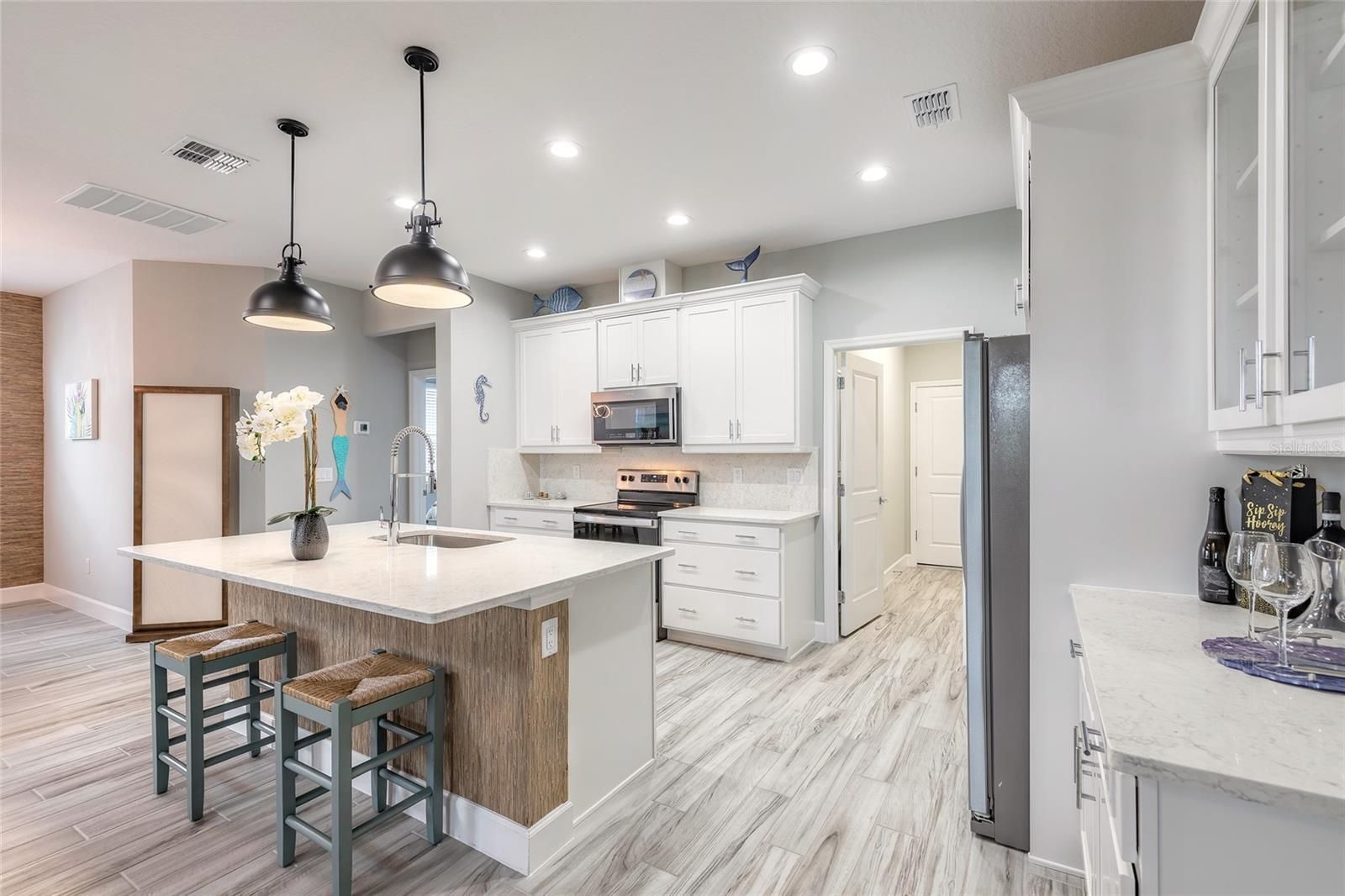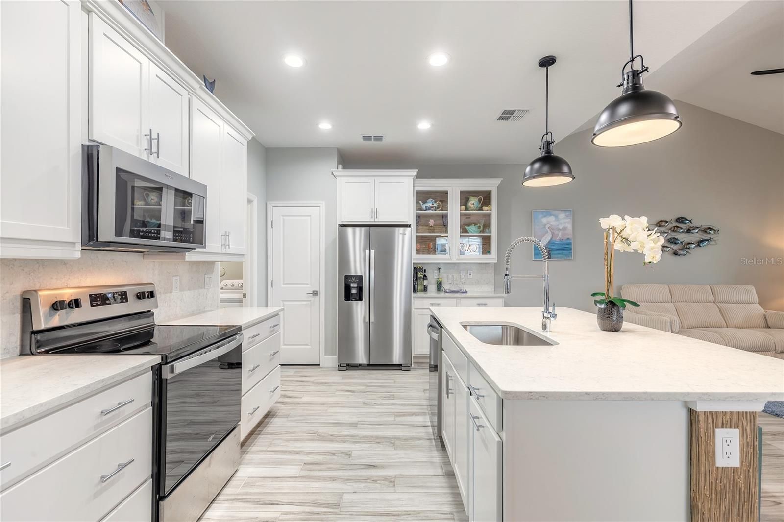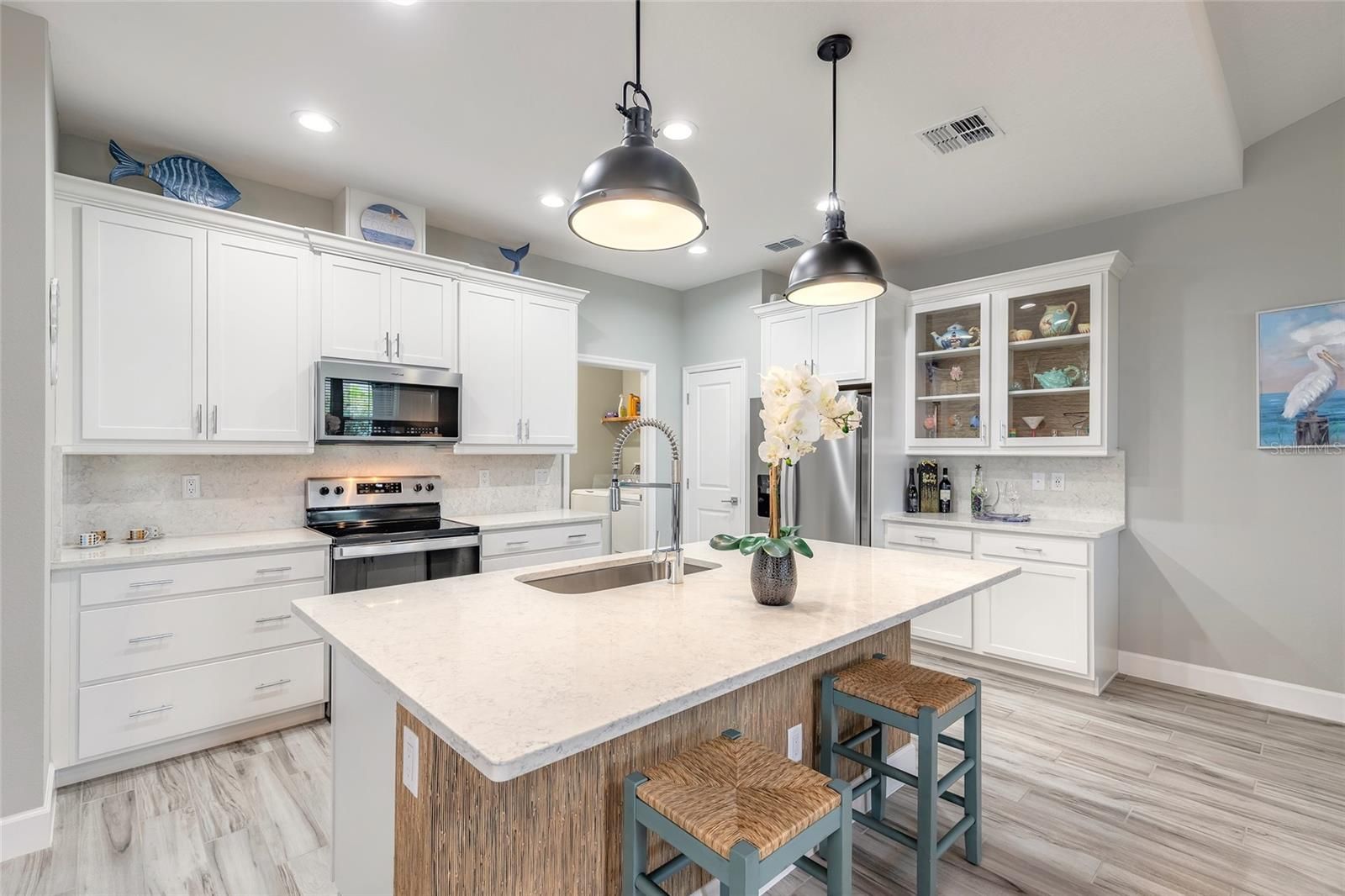 Huge price improvement! Don't miss this almost new Camellia model with tasteful upgrades throughout the home. Discover effortless living in this beautiful 2-bedroom, 2-bathroom cottage, ideally located in a vibrant and golf cart-friendly 55+ community. Packed with upgrades and thoughtful touches—including a cozy electric fireplace—this home offers both comfort and style in a low-maintenance setting. Step inside to a bright, open layout featuring plank tile flooring, quartz countertops, stainless steel appliances, and tasteful finishes throughout. The spacious living area is anchored by a stylish electric fireplace, perfect for adding warmth and ambiance year-round. The primary suite features a large walk-in closet and a private en-suite bathroom with dual vanities and a walk-in shower with tile from floor to ceiling. A second bedroom and full guest bath offers flexible space for visitors, a home office, or hobbies. The guest shower also has floor to ceiling tile. Outside, enjoy your morning coffee on the covered patio with 20/20 mesh screen with fan or take a quick ride in your golf cart to the nearby Town Center, the heart of this active community. Or take a short walk to the Blue Guitar Park. Additional highlights include a finished garage with an epoxy-coated floor—durable, clean, and ready for your golf cart or extra storage needs. Resort-style amenities include, Multiple pools and relaxing spas, Pickleball and tennis courts, On-site restaurants and cafés, Fitness center and scenic walking paths, Active calendar of clubs, classes, and events golf cart-accessible streets throughout the community Whether you're seeking a seasonal getaway or a full-time residence, this move-in-ready cottage delivers exceptional value and vibrant community living. Located at the end of the street with lush preserve steps outside your door. Schedule your private tour today and start living your best life! All information is intended to be accurate, but is not guaranteed.