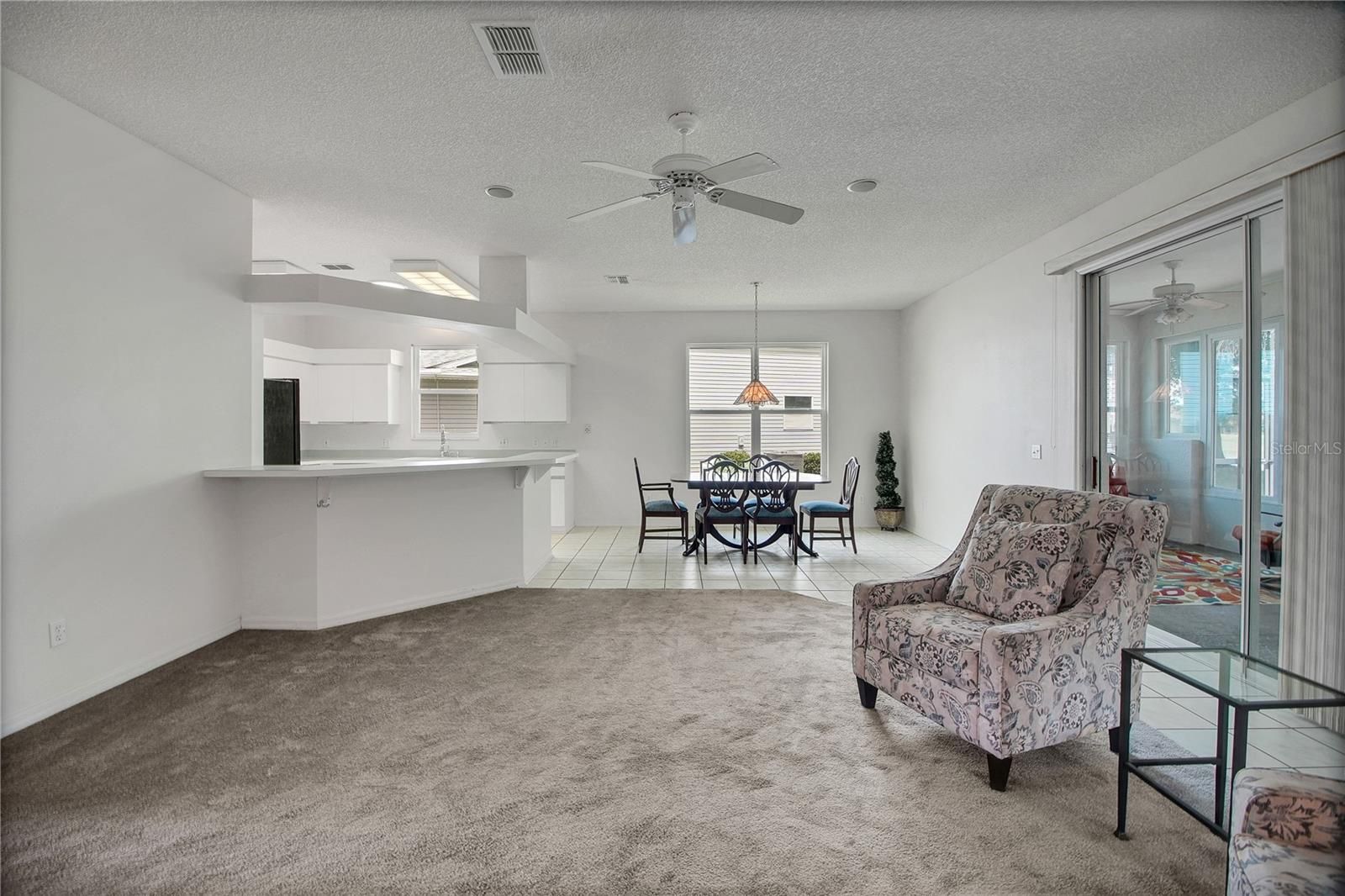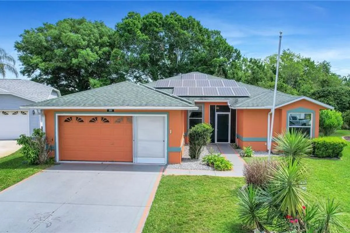 Welcome to this beautiful 3-bedroom, 2-bath pond view pool home located in the desirable Pennbrooke Fairways community. Step inside to discover freshly painted walls, brand-new carpet, and neutral tile flooring, creating a bright and inviting atmosphere. The spacious kitchen offers plenty of room to cook and gather, featuring white cabinetry, a convenient breakfast bar, and a closet pantry for added storage. The primary suite is a relaxing retreat with tile flooring, a walk-in closet, and an ensuite bathroom complete with a jetted tub and separate walk-in shower. The second bedroom is generously sized and filled with natural light, while the third bedroom offers flexibility as a guest room, office, or hobby space. An indoor laundry room with a utility sink provides additional storage and functionality. The roof and HVAC were replaced in 2017, while in 2019 the water heater was replaced and solar panels were installed. Also, the home has newer glass sliding doors to the lanai. The low monthly HOA fee of $265 includes lawn care, high-speed internet, cable, and access to an impressive array of amenities. Pennbrooke Fairways is a gated golf community featuring 27 holes of golf, a pro shop, and an on-site restaurant. Residents also enjoy two recreation centers, swimming pools, a fitness center, and a variety of outdoor activities including shuffleboard, pickleball, tennis, softball, horseshoes, water volleyball, and cornhole. Conveniently located near shopping and dining, and just 6 miles east of The Villages’ Brownwood Paddock Square, this home truly has it all.