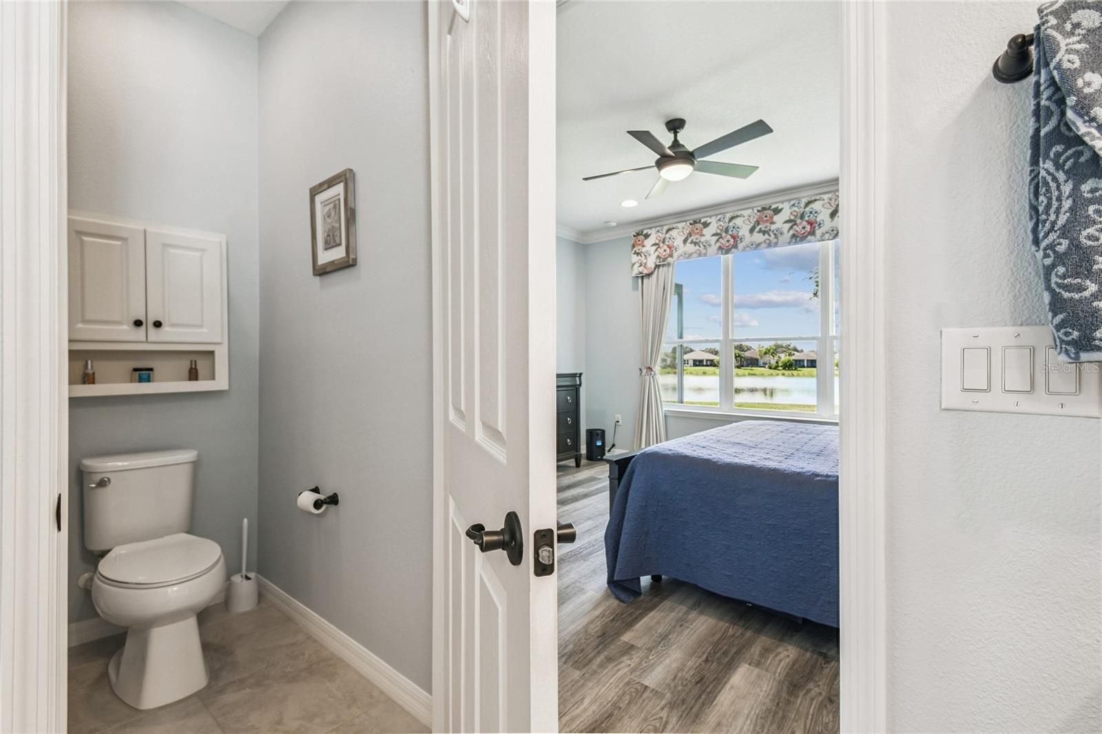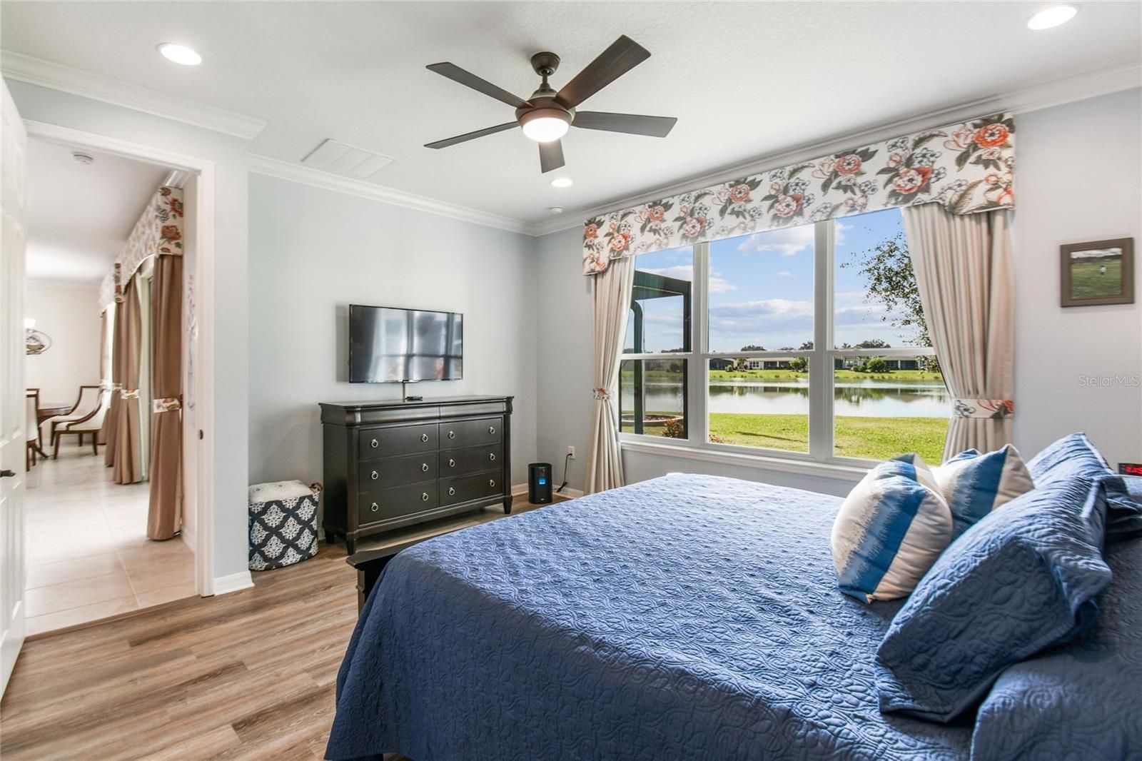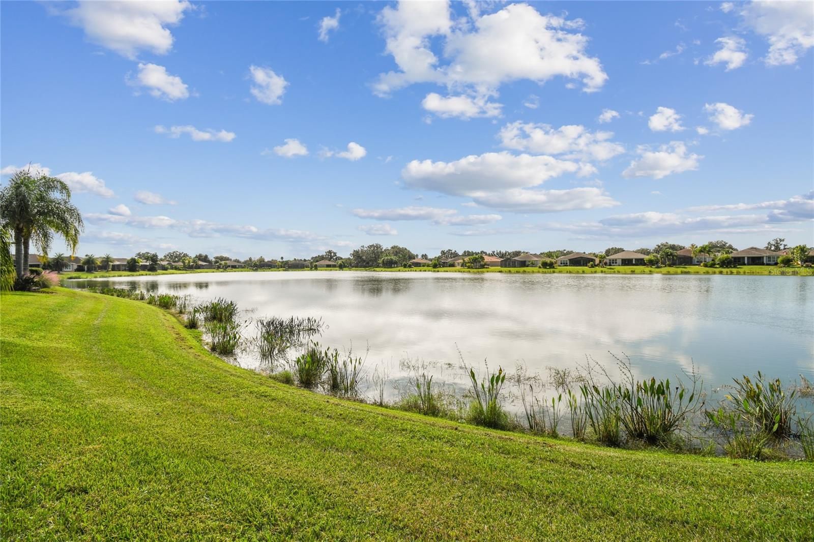 STUNNING CABELLA MODEL WITH BREATHTAKING WATER VIEWS! **See the FULL LENGTH 3D MATTERPORT VIDEO on Tour Link 1. ** Located in the desirable Treviso neighborhood of Solivita, this beautifully appointed home features 2 bedrooms, 2 baths, and a versatile DEN. Elegant CROWN MOLDING and TRAY CEILINGS add a touch of sophistication and style to the open, inviting floor plan. Step into the living room and take in the direct sight lines to the gorgeous water views from your EXTENDED, COVERED, and screened lanai with WIDE SCREEN ENCLOSURES....the perfect place to relax and unwind. The space features 18" CERAMIC TILE flooring, providing easy maintenance throughout. The kitchen is a chef’s delight, showcasing EXTENDED countertops with QUARTZ surfaces, a glass mosaic backsplash, and 42-inch cabinets with light rails and the convenience of DRAWERS for easy access. Stainless steel appliances and an extended island with BREAKFAST BAR make this space both functional and inviting, while a closet pantry provides plenty of additional storage.The PRIMARY SUITE features luxury vinyl plank flooring, an ENSUITE BATH with a walk-in shower, DAUL SINKS, and a large DRESSING ROOM/WALK-IN CLOSET offering ample space and organization. The second bedroom, located at the front of the home, includes an adjacent full bath with a ROLLING GLASS SHOWER ENCLOSURE, providing comfort and convenience for guests. The den features PLANTATION SHUTTERS and can easily serve as a media room, home office, or hobby space, adding flexibility to suit your lifestyle. The extended lanai can be accessed through triple sliding doors and offers PANORAMIC WATER VIEWS with a tree-lined landscape on one side, creating the perfect spot to relax with friends while enjoying the gentle breezes. Additional upgrades include rounded corners, LEADED GLASS entry door, DUAL-PANE windows, and a CENTRAL VACUUM system. The two-car garage features EPOXY FLOORING, pull-down attic stairs, an overhead storage rack, and has been pre-plumbed for a water filtration system. The laundry room includes a washer and dryer, upper cabinets for added storage, and a convenient UTILITY SINK. This home has it all — beautifully move-in ready and located in an award-winning, active adult community offering the resort-style lifestyle you’ve been waiting for! Not to mention its convenient location near the Village Center, where you can easily enjoy dining, entertainment, and all the wonderful amenities Solivita has to offer. The HOA: - maintains the LANDSCAPING & IRRIGATION systems in the common areas as well as at individual homesites - maintains the roads throughout the community - PROVIDES SECURITY with gate guards and mobile patrols including the Polk County Sheriff - allows AUTOMATED GATE ACCESS for residents via license plate readers - provides residents with Fiber Optic Internet & TV service.***Poinciana Lakes Plaza is a MAJOR NEW SHOPPING CENTER that opened directly across from the Solivita Main Gate in Summer of 2024. It features Sprouts Grocery, TJ MAXX, Ross, Burlington, Rack Room Shoes, 5 Below, Ulta, Outback, First Watch, 5 Guys, Urgent Care, Dentist, TD Bank, Petco & Hair Cuttery PLUS MORE TO COME.***