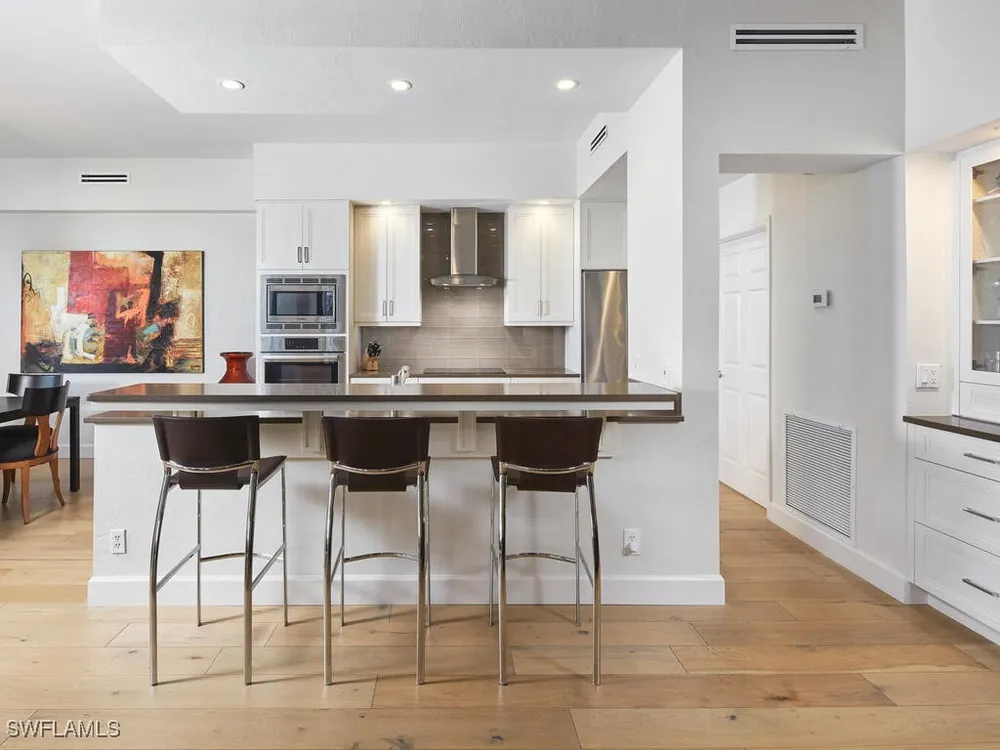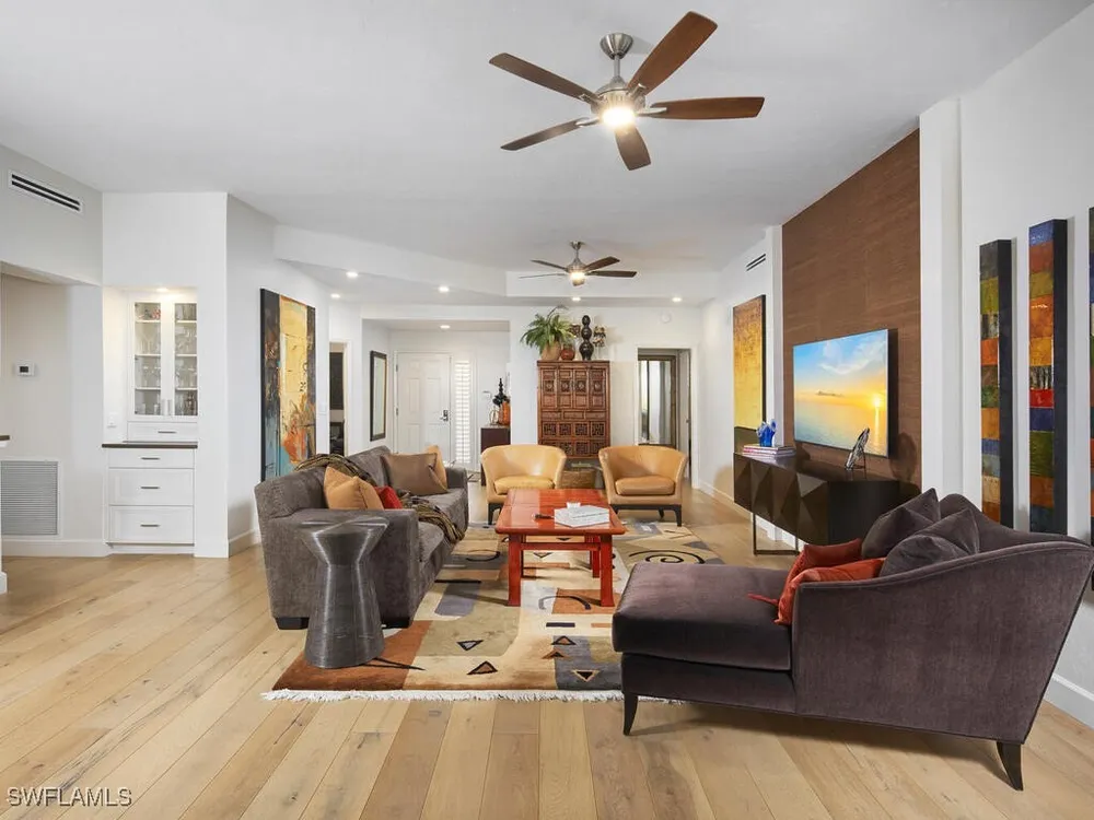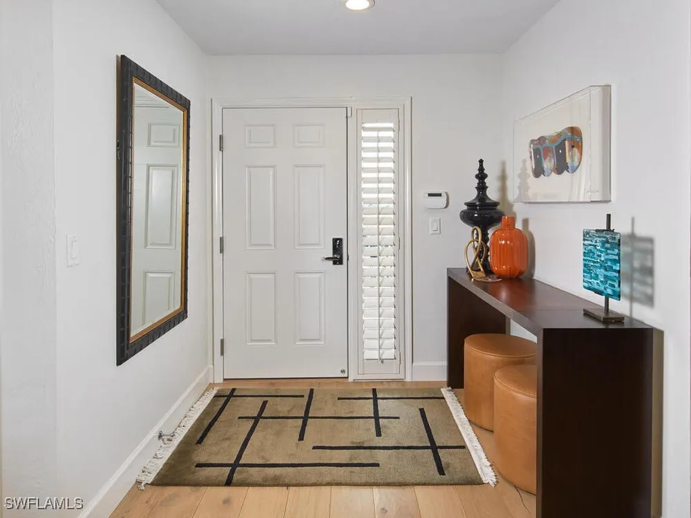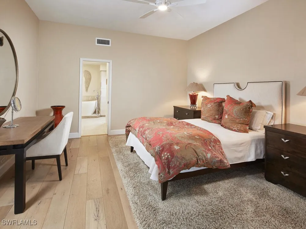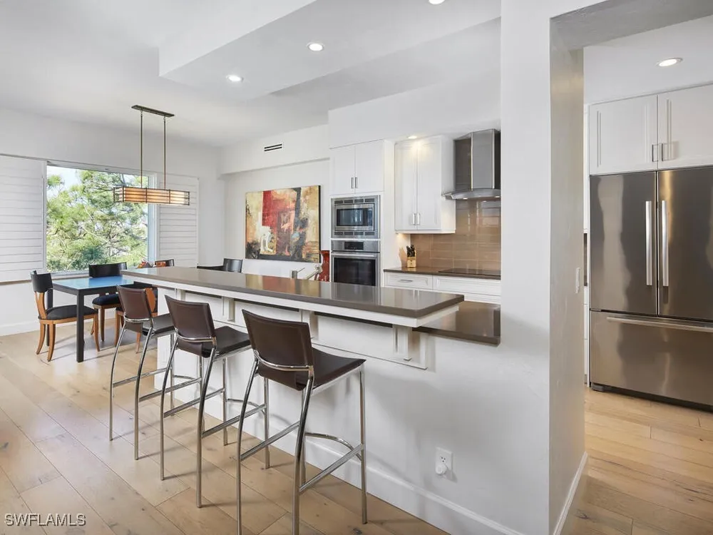 Located in the desirable Crossings at Bonita Bay, this beautifully RENOVATED 3-bedroom, 3-bathroom condo offers breathtaking views of the lush and tropical grounds of Bonita Bay. With volume ceilings and an open-concept layout, the space is bright and inviting, seamlessly connecting to a spacious lanai with sliding glass doors and custom drapes. This home is the definition of indoor/outdoor living! The reconfigured kitchen features quartz countertops, a glass tile backsplash, white self-close cabinetry, and high-end Bosch stainless steel appliances, including a Wolf induction cooktop and a counter-depth French refrigerator. Hardwood oak floors flow throughout, complemented by custom-painted shutters, modern lighting, and sleek cabinetry. The primary bathroom boasts a freestanding resin tub, a barn-style glass shower door, quartz countertops, LED-lit mirrors, and a Grohe thermostatic shower valve, while the guest bath offers a privacy pocket door, a walk-in shower, and quartz finishes. Additional highlights include a Sonos sound system, a security system (with additional fee), deeded under-building parking, and a newly replaced front door. This condo building has always remained dry during hurricanes. The building’s roof replacement is almost complete with the assessment already paid by the seller. A beautifully planned lobby remodel has been approved, with no special assessment. Request a feature sheet as there are too many upgrades and exceptional touches to mention! This exceptional condo provides a move-in-ready opportunity to experience the luxury and convenience of Bonita Bay living. Bonita Bay offers its residents an array of exceptional amenities, including a private beach club, kayaking, canoeing, pickleball, tennis, and multiple community parks. Explore over 12 miles of walking and biking paths, or take advantage of the full-service marina and restaurant. Golf enthusiasts will appreciate the THREE on-site courses, complemented by several dining options, a state-of-the-art fitness center, and more--all available with club membership (additional fees apply). Located just a short drive from world-class dining, shopping, beaches, and nature preserves, you'll also enjoy easy access to the burgeoning downtown Bonita Springs and downtown Naples. RSW International Airport is conveniently nearby!