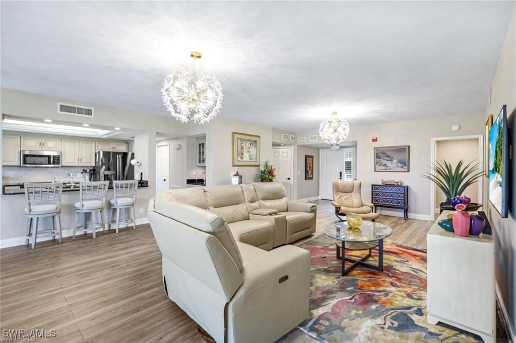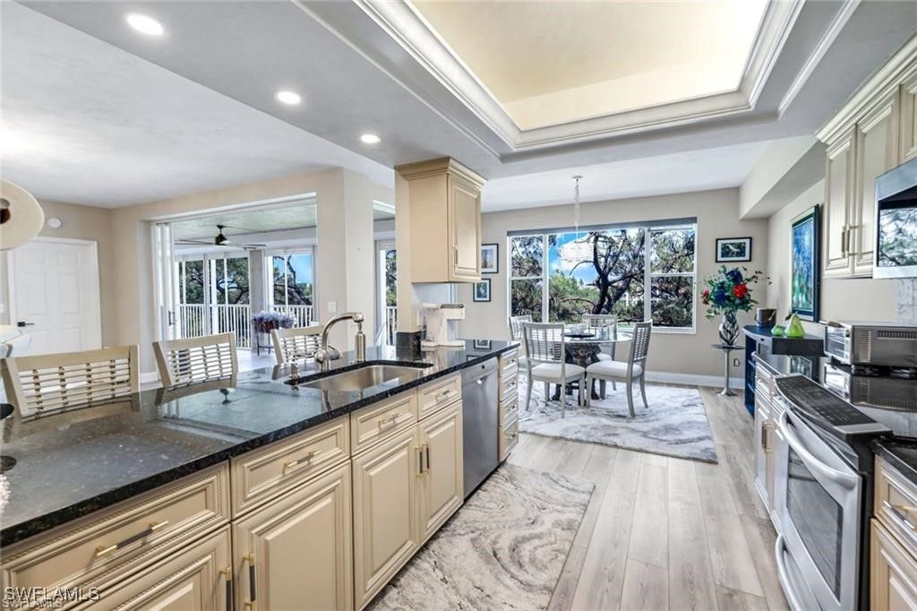 Rarely Available Fifth-Floor Gem with Water and Golf Views! This exceptional residence offers a coveted combination of lake and golf course vistas from its elevated fifth-floor perch. Designed with an open-concept layout, the home features three spacious bedrooms and three full baths—perfect for hosting guests or enjoying relaxed, elegant living. The expansive west-facing lanai is enclosed with glass, (protected by electric shutters), creating a sunlit extension of the living space ideal for year-round enjoyment. Beautifully furnished and offered turnkey, this condo is move-in ready for immediate use. Residents of The Crossings enjoy access to a lushly landscaped tropical pool and spa area, outdoor grills, and a vibrant recreation space. The parking space for your car is under the building protected and adds convenience to the building access. The optional membership to the Bonita Bay Club’s main clubhouse, located just 500 yards away, you’ll have easy access to world-class amenities including championship golf, tennis, pickleball, fine dining, a state-of-the-art Lifestyle Fitness Center, and a full-service marina. The Private Beach Club is also available to all residents, along with bocce courts, canoe launches, three beautifully maintained parks, and over 12 miles of scenic biking and walking trails. Discover why Bonita Bay consistently ranks among Southwest Florida’s most prestigious communities. This is more than a home—it’s a lifestyle.