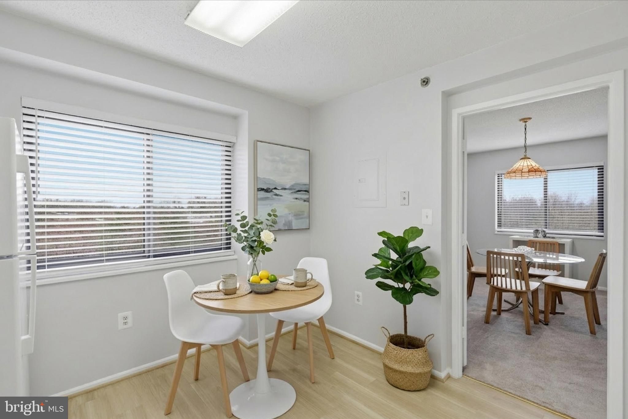 Maximize your lifestyle in this oversized 1BR/1.5BA corner residence. Flooded with natural light from two sides, this 930 sq. ft. home feels open and airy. A standout feature is the large dining room, which offers ample wall space for a full-sized hutch or sideboard—perfect for entertaining. . Unlike most condos, this unit offers a separate laundry space with extra storage. Relax in the sunroom offering serene views of the community pond and its illuminated evening fountain. Best of all, the condo fee covers water, cable TV, and high-speed internet! The larger community of Leisure World itself is a haven of leisure and security, with 24-hour security gates providing peace of mind. It offers a plethora of amenities, including two clubhouses, both indoor and outdoor pools, a state-of-the-art fitness center, wood shop, art studio, auditorium, ceramics studio, a billiards room, plus an optional golf course membership for enthusiasts. Immerse yourself in community life with over 85 clubs to join, fostering vibrant connections with like-minded neighbors. This is more than a home; it is a lifestyle for those over age 55.