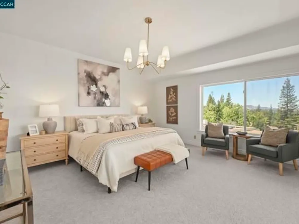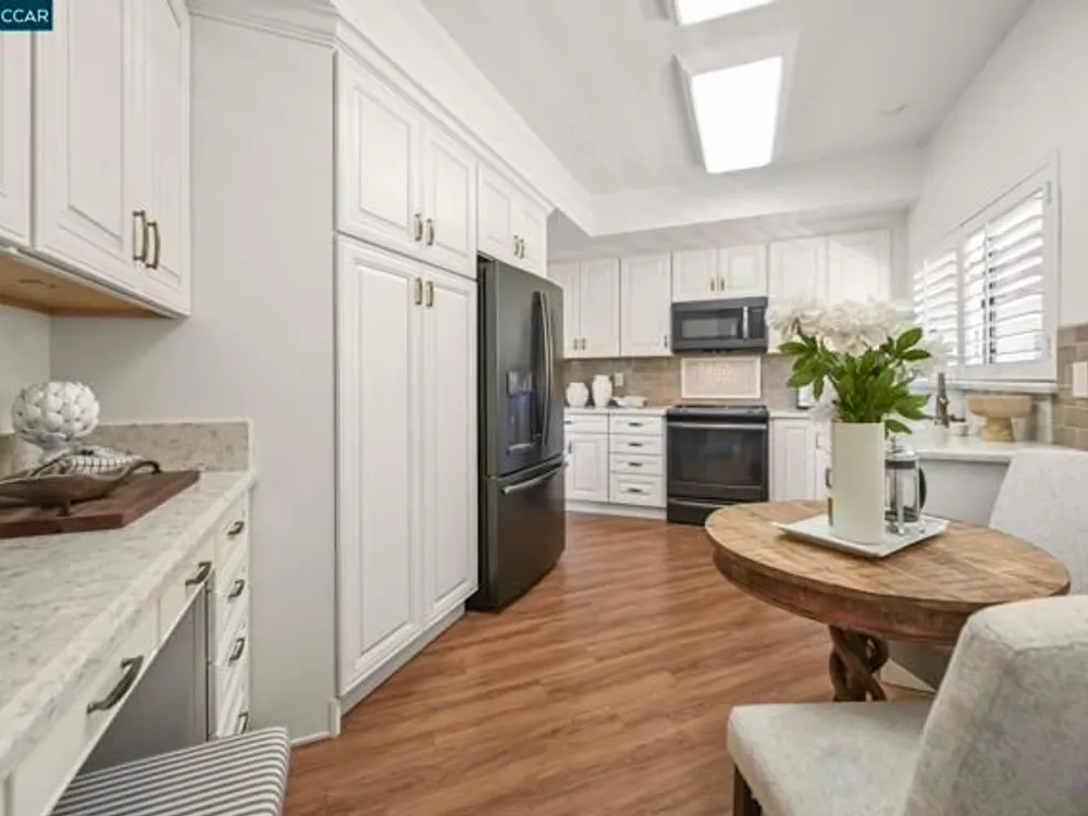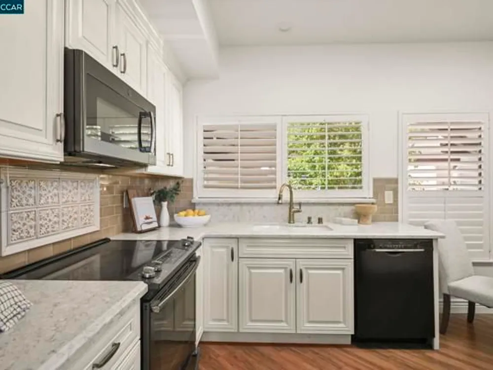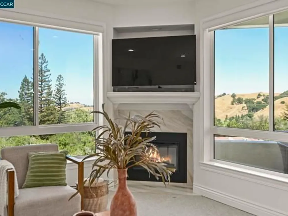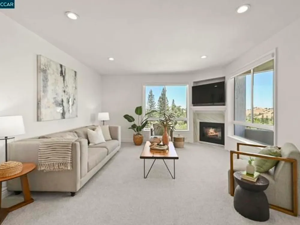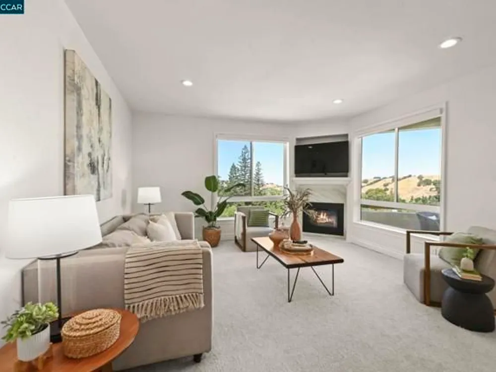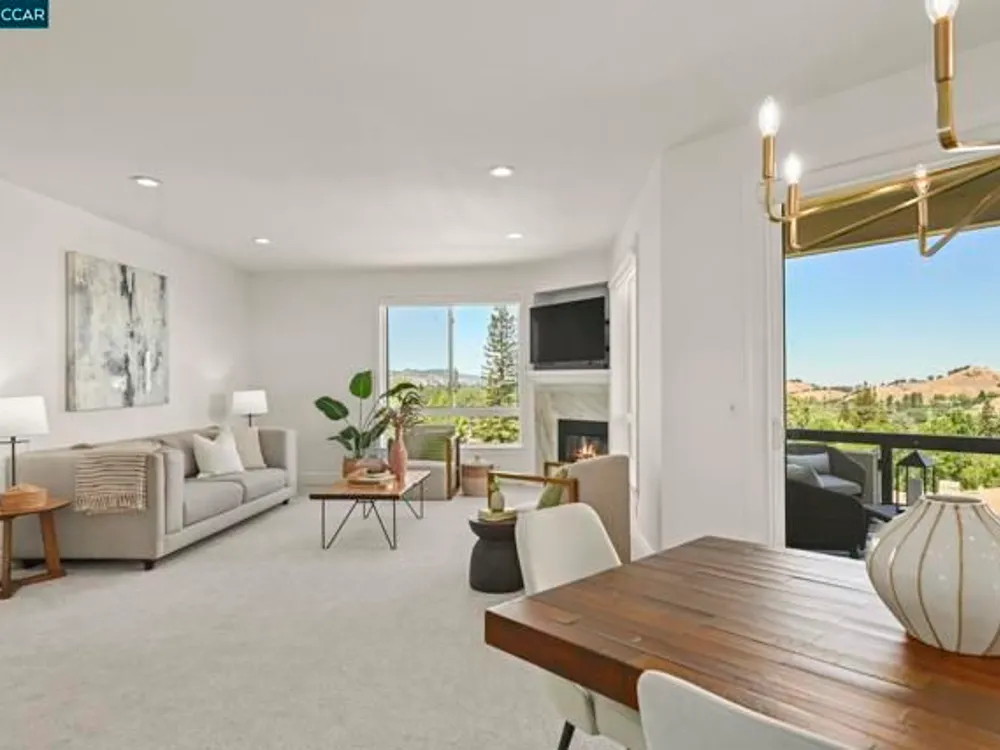 50K Price Reduction! Spectacular Villa Nuevo condo with panoramic Mt. Diablo and hillside views from every window! Elevator leads to this spacious 3-bedroom, 2-bath, 1661sf home in Rossmoor. Home has been beautifully updated, featuring a remodeled kitchen with quartz countertops and Bosch & GE Profile appliances. Family room and formal dining area features a cozy fireplace and patio with views. Newer windows, sliding doors and window coverings. New carpet, luxury vinyl flooring, paint, and new modern lighting add to the move-in appeal. The serene primary suite boasts a private patio with stunning Mt. Diablo views, perfect for morning coffee. Primary remodeled bathroom includes new dual vanity and luxury vinyl flooring. Additional highlights include dedicated laundry with washer/dryer, elevator or one flight of stairs access, one-car detached garage, and covered carport. Enjoy the elevated Rossmoor active lifestyle in this amazing home!