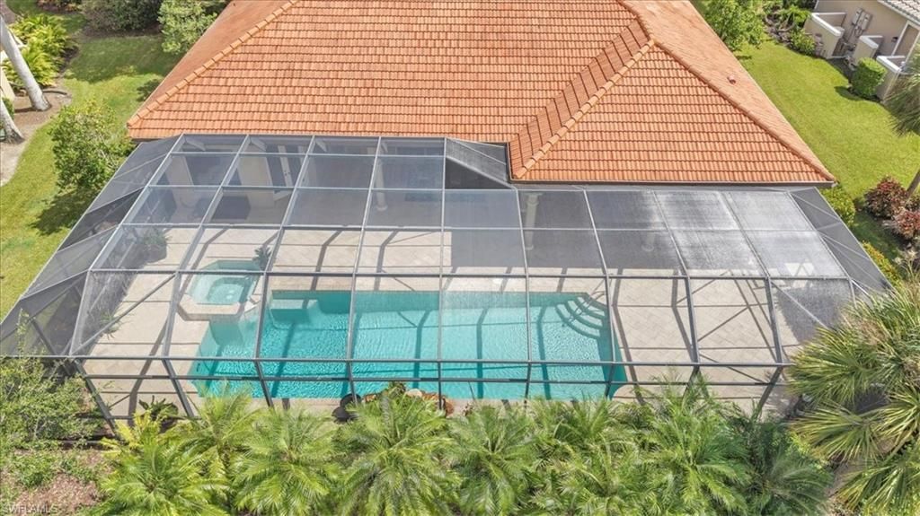 PLEASE click on the virtual tour link to see the full gallery of photos, dimensions and ‘walk through’ the Matterport 3D Virtual Tour to fully appreciate everything this Old Florida Style home has to offer. It’s called ‘Sanctuary Point’ for a reason - it’s a very quiet cul de sac and this home is tucked away at the end. It’s quiet, it’s private. A unique design in Verandah, the home is spacious and custom built by Patrick Keevan, a local builder with an exceptional reputation for quality and designs fitting a Florida lifestyle. With large rooms overall, a separate den/office, two guest en suites in a split plan, the primary suite opens to the pool deck with a great view. That hard to find entertainment area? It’s right here! Relax or entertain under the HUGE 61’X18’ outdoor lanai area or around the 71’X33’ pool deck. The outdoor space is big enough for several seating and eating areas. It’s impressive! And it overlooks Old Orange par-4 hole #1 and the lake beyond. This all solid-surface flooring home has been professionally deep cleaned from top to bottom, the tile and LVP cleaned and the grout acrylic sealed. The driveway, porch and pool deck pavers were just pressure washed. The roof has been cleaned every 6 months and is in great shape. The HVAC is only 2 years old, the gas pool heater and two pumps (pool and fountain) were replaced in 2025 along with the spa light fixture. There’s even a bonus 13’X5’ utility room IN the garage complete with electric for storage, a freezer or crafts. This home has never had any flooding or hurricane damage. If that isn’t enough, Verandah Members enjoy two 18-hole championship golf courses (Old Orange and Whispering Oak), pickle ball, tennis, bocce, an attended fitness center overlooking a resort-style pool and free kayaking at our own Orange River launch. Our own Blossoms offers lively, but casual, outdoor riverfront dining while the River House dining is smart casual with a perfect after-sports bar. Bingo night, club dinners and live entertainment are frequent. Because Verandah was built around two golf courses, it has the green space for 9.3 miles of walking, biking and jogging paths, 2 bark parks and a large wooded playground area with a tree house. The ‘natural’ ambience here is quite different from most communities. You’ll notice as soon as you come through the main gate. Join our casual, friendly Verandah community. There truly is something for everyone here! Be sure to click on the virtual tour link to ‘walk’ through the home and see the floor plan.