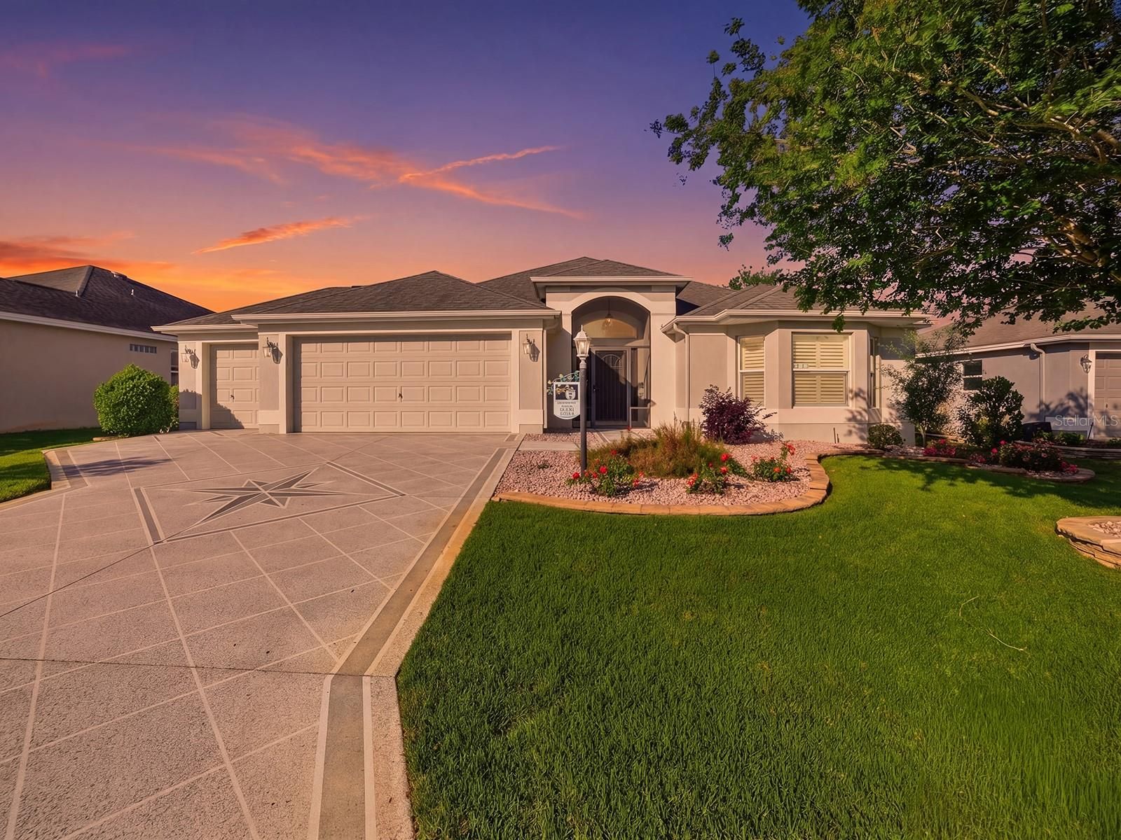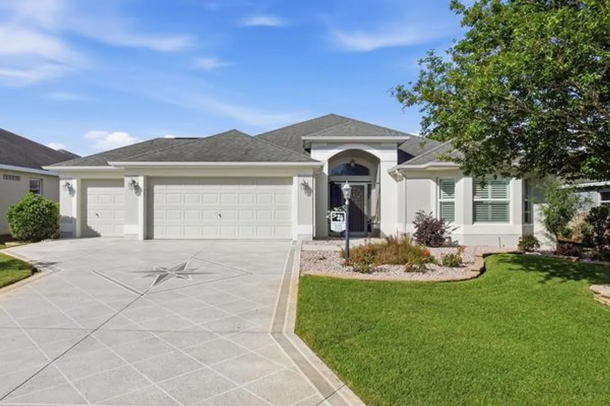 ~•Built in 2012•~ Imagine arriving at your own beautiful block and STUCCO Designer IRIS home with GOLF CART GARAGE in the Village of CHARLOTTE, where every day feels like a getaway. This 3-bedroom, 2-bath TURNKEY home offers style, space, and an unbeatable location in The Villages. A painted driveway welcomes you home, while the bright tiled entry with lead glass sidelights and transom window creates an elegant first impression. Inside, the home is filled with desirable upgrades including PLANTATION SHUTTERS, CROWN MOLDING, and smooth HAND-FINISHED volume ceilings (no popcorn). The heart of the home is the inviting kitchen featuring GRANITE countertops, rich MAPLE cabinets with crown detail, STAINLESS STEEL appliances, decorative pendant lights, and breakfast bar seating—perfect for casual mornings or entertaining friends after a day on the golf course. The private primary suite is a retreat of its own with laminate floors, tray ceiling, spacious walk-in closet, and luxurious bath with dual sinks, vanity, private toilet room, and ROMAN SHOWER accented with GLASS BLOCK. At the opposite end of the home, a POCKET DOOR creates privacy for the guest rooms and bath. The front guest room shines with BAY windows and TRAY ceiling, making it ideal for visitors or a home office. Step outside to the screened rear lanai, a wonderful extension of the living space, complete with roll-down shades for added comfort and privacy. It’s the perfect place to enjoy your morning coffee, unwind in the evening, or relax year-round while enjoying the Florida breeze. With an INDOOR LAUNRY room featuring extra MAPLE cabinets and built-in utility sink, included furnishings, and move-in ready condition, this home makes it easy to begin your next chapter. If you’ve been dreaming of a golf cart garage home in a prime location in The Villages, this one is ready to welcome you. The village of Charlotte is conveniently located between Lake Sumter Landing and Brownwood Paddock Square; Close to Charlotte Neighborhood Pool, Captiva Rec Center, Bonifay Country Club, Sarasota Driving Range, Roosevelt Executive Golf Course, Sandhill Executive Golf Course, and Palmetto Executive Golf Course; three community pools, golf, and pickleball; and Colony Shopping Plaza with an abundance of shopping, restaurants, banks, and medical. Tax line reflects property taxes only, and is estimated. Bond Assessment is $1,212/year. (Bond payoff is $14,298.) Current Maintenance Assessment is $504/year. Current Fire Dept. $321/year. Note: Square footage information is taken from the Public Record and is deemed reliable, but not guaranteed. Room and garage dimensions are approximate and estimated: buyer to verify.