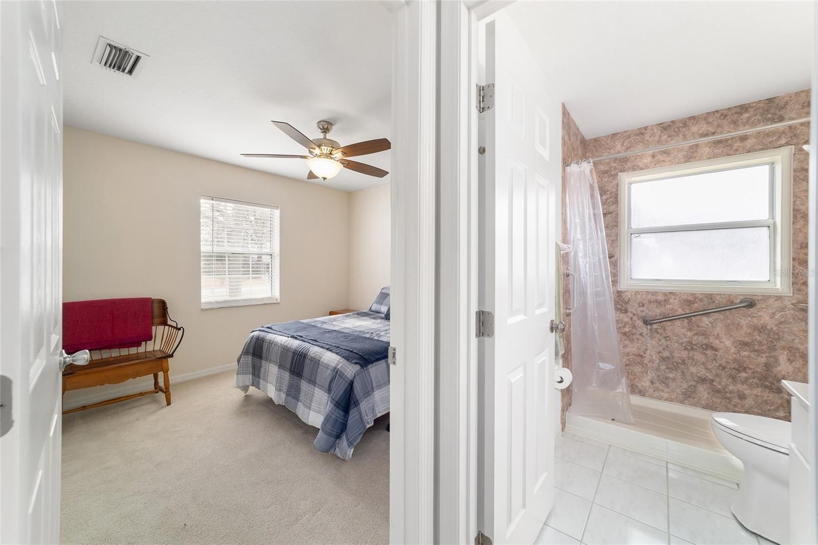 - Cathedral Ceiling(s), Ceiling Fan(s), Open Floorplan, Main Level Primary, Split Bedrooms, Thermostat