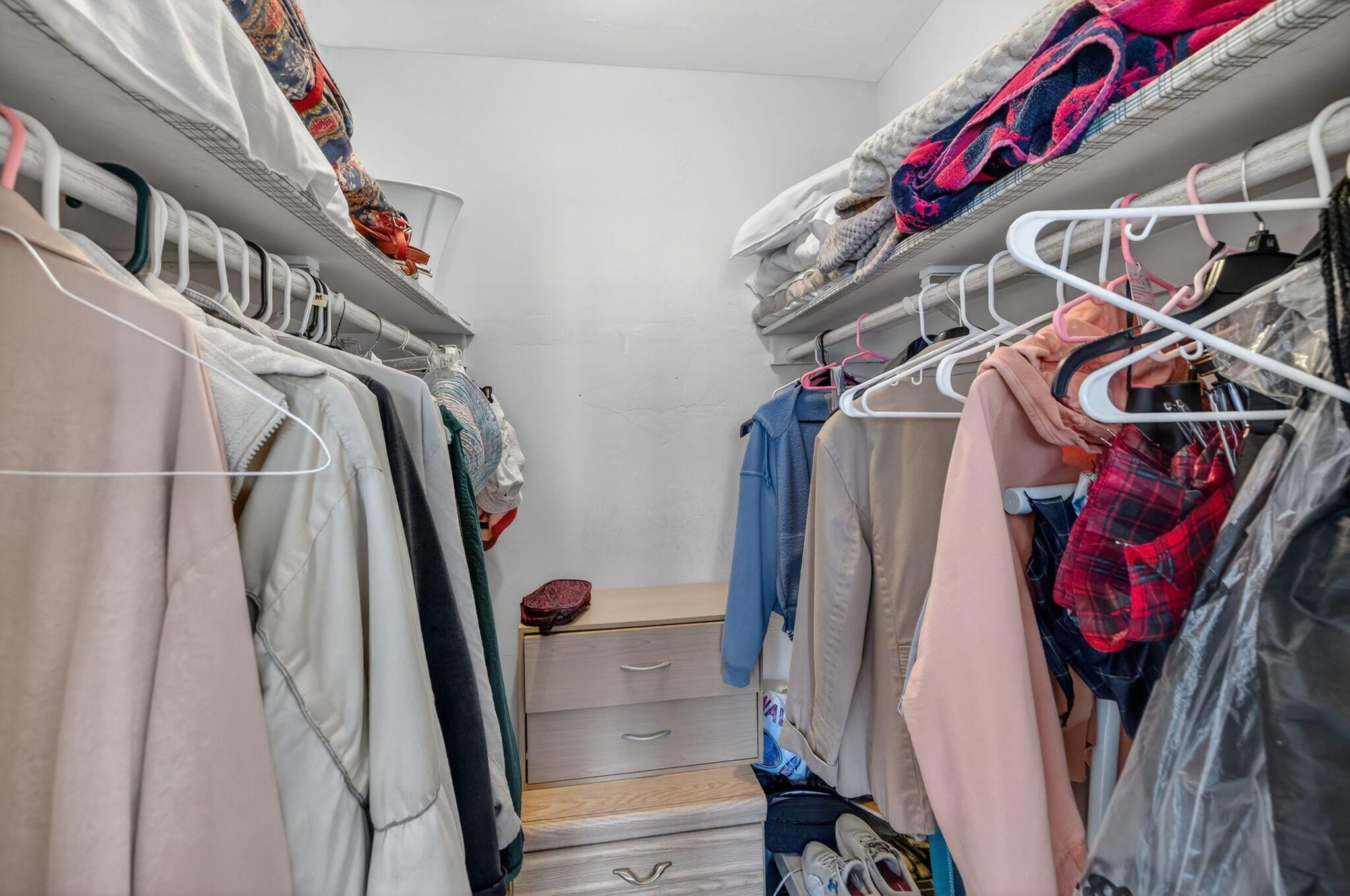 - Built-in Features, Entrance Foyer, Walk-In Closet(s), Closet Cabinetry, Impact Glass, Living/Dining Room, Eat-in Kitchen, Entry Level Living Area, Main Level Primary, Separate Shower