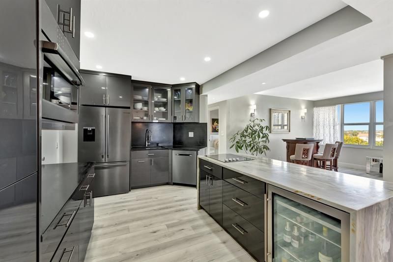 MOVE IN READY. 3 bedroom opened up to a 2 bedroom gives wide open views in this beautiful corner residence. Chef's kitchen featuring Bosch appliances, granite countertops, waterfall edge island and a built in wine refrigerator. Split bedroom floor plan provides peace and quiet for everyone. Huge walk-in California closets. A/C and Hot water heater 2019. Round the clock security in this resort style, full amenity building. Salt water pool - no harsh chemicals on your skin. Amazing location surrounded by restaurants, shopping, boating, golf, entertainment. 55+ community, Cash only.