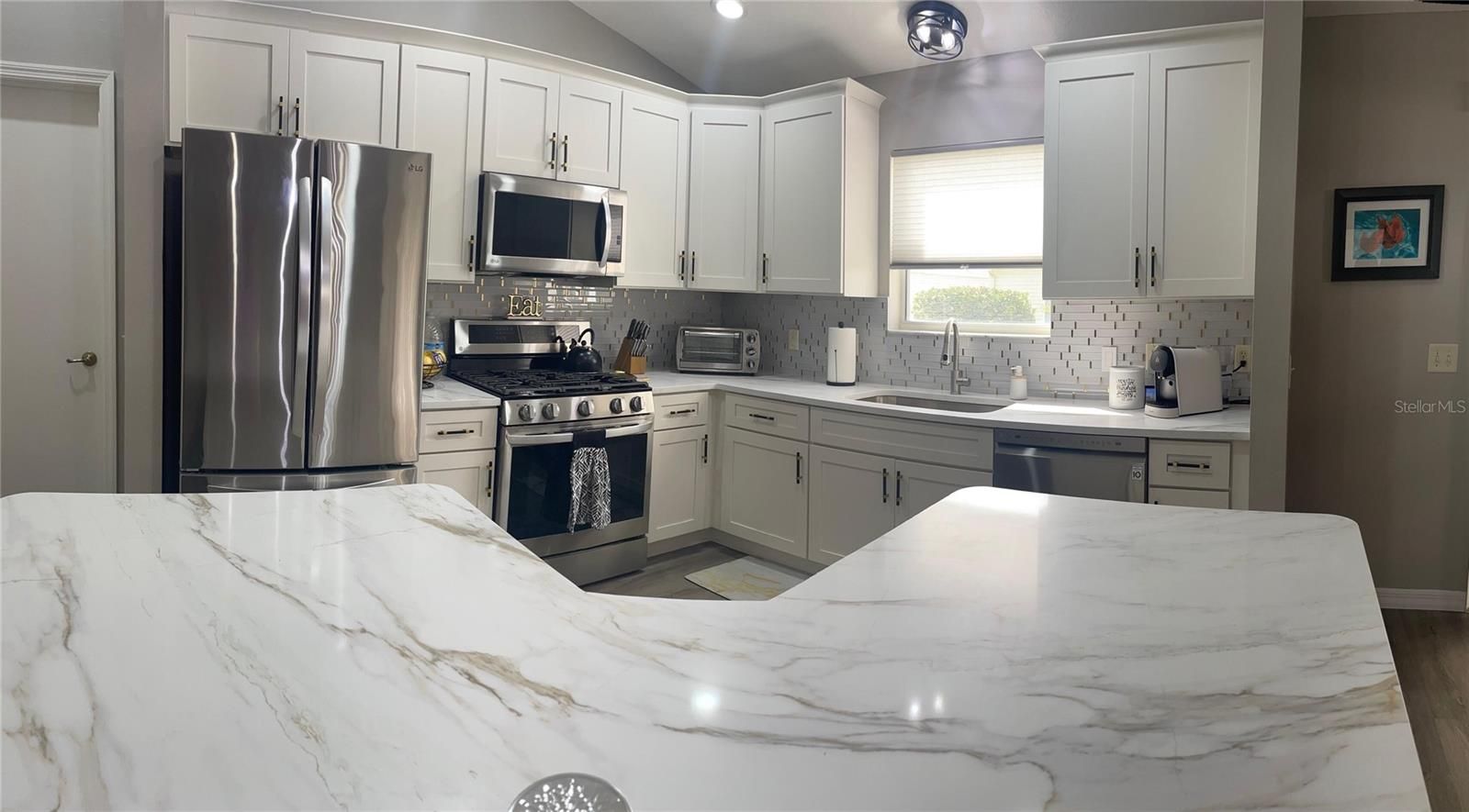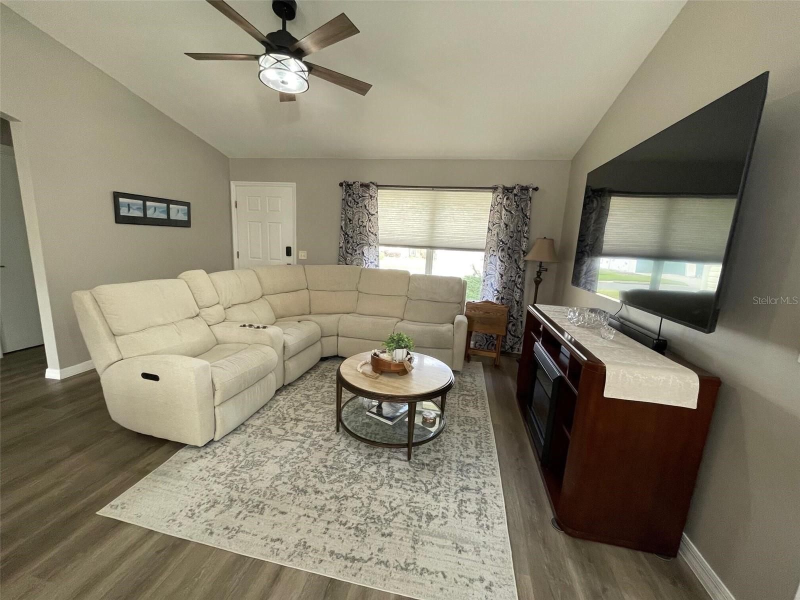 Beautifully Remodeled Home Near Glenview Country Club – Modern Upgrades, Turnkey, and No Bond This beautifully remodeled home is in a prime location near Glenview Country Club with modern finishes, turnkey comfort, and the advantage of low Sumter County taxes. The interior has been completely transformed with high-quality upgrades throughout. Step inside to a bright, open layout featuring new luxury vinyl flooring, fresh interior paint, updated recessed lighting, and a fully renovated kitchen with high-end quartz countertops, modern cabinetry, premium fixtures, and a clean, contemporary design. The kitchen is a true centerpiece, great for cooking, entertaining, and everyday living. The master suite has been fully remodeled from top to bottom with no popcorn ceiling and a bathroom with a tall glass walk-in shower, new cabinetry, quartz countertop, and recessed lighting for a sleek, spa-like feel. No Bond, new roof (2020), new on-demand hot water system (2025), and popcorn ceilings removed in the main living areas, master bedroom, and master bath.